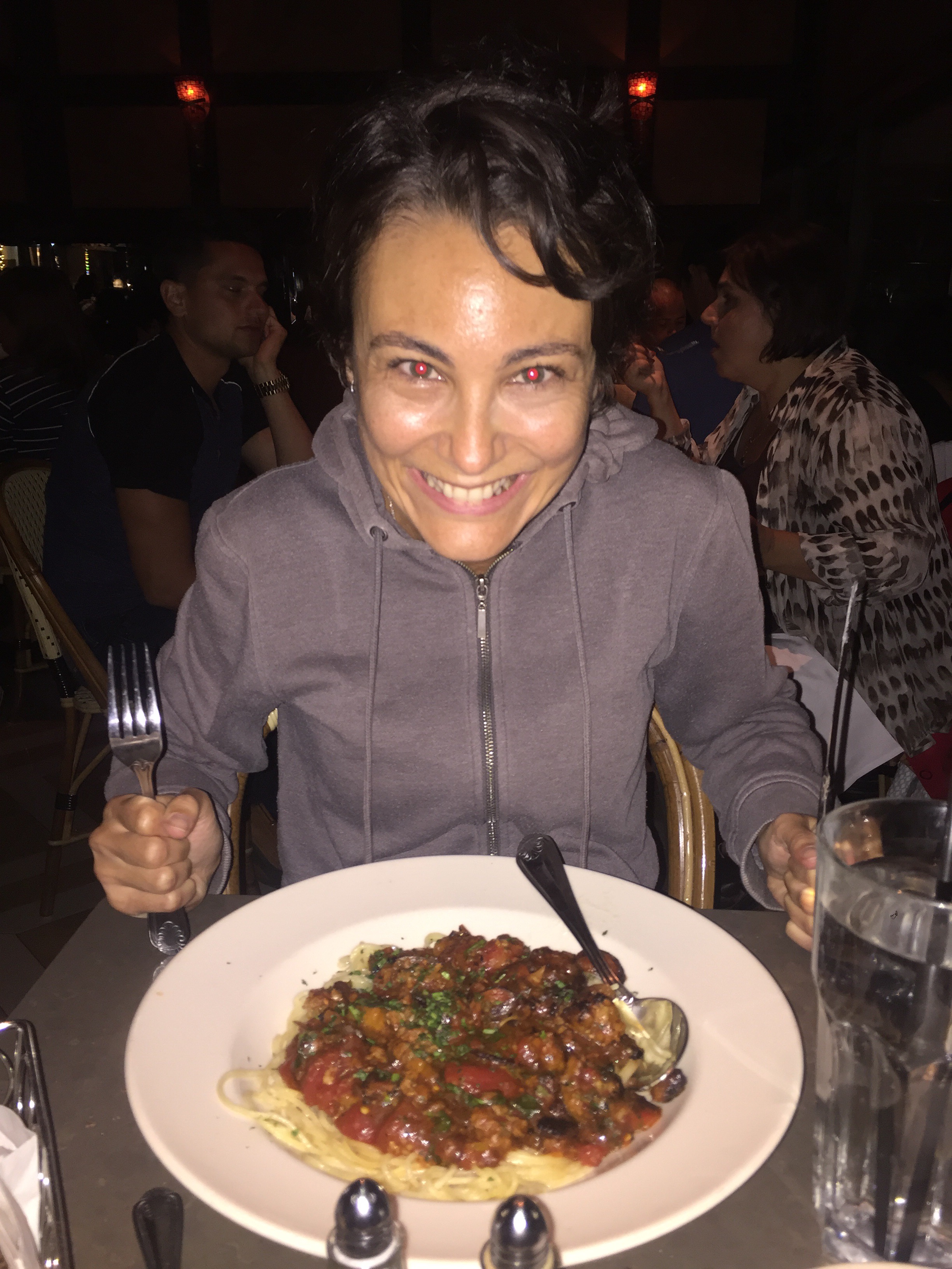 Je l’aide à monter ses affaires (mes affaires qu’elle m’avait très gentiment emmener!) , nous nous racontons nos vols respectifs et nous partons dîner au Cheesecake Factory qu’Anne C m’avait gentiment indiqué!