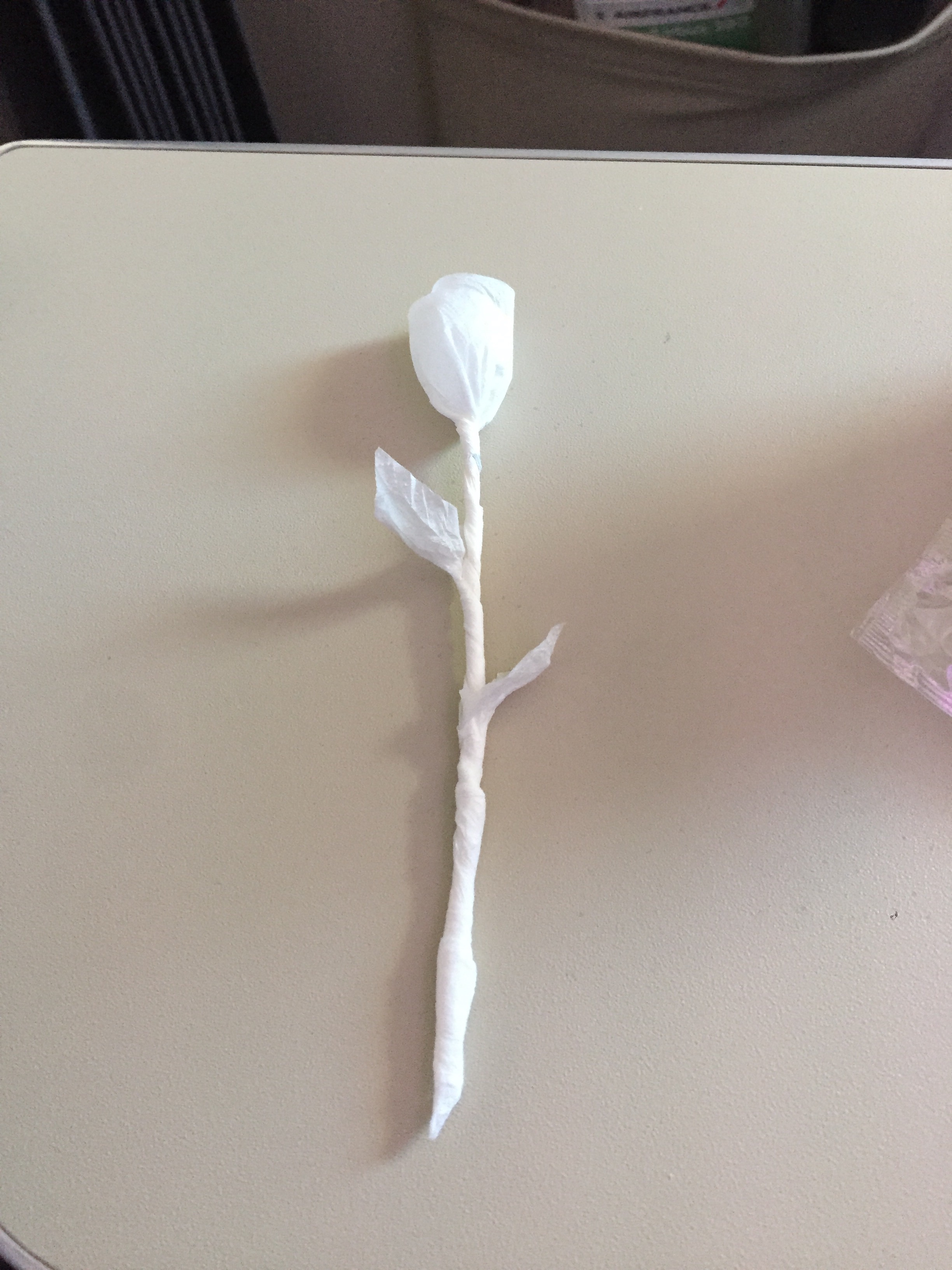 Pendant le vol, le stewart s’occupant de ma section se montre très gentil avec moi, il va même jusqu’a m’offrir une rose en papier… il s’avère qu’en fait, il a déjà voyagé avec moi sur un vol précédent et m’a reconnu. Il a été jusqu’à chercher mon prénom pour personnaliser le service au maximum. Il paraît que j’ai de très jolis yeux… Au moins on ne peut pas dire, le vol a été chouette. En plus quasi aucune perturbation.