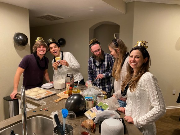 Faute de pouvoir célébrer le nouvel an en France, nous avons reçu les collègues de Guillaume à la maison! Soirée pizza et crêpe!