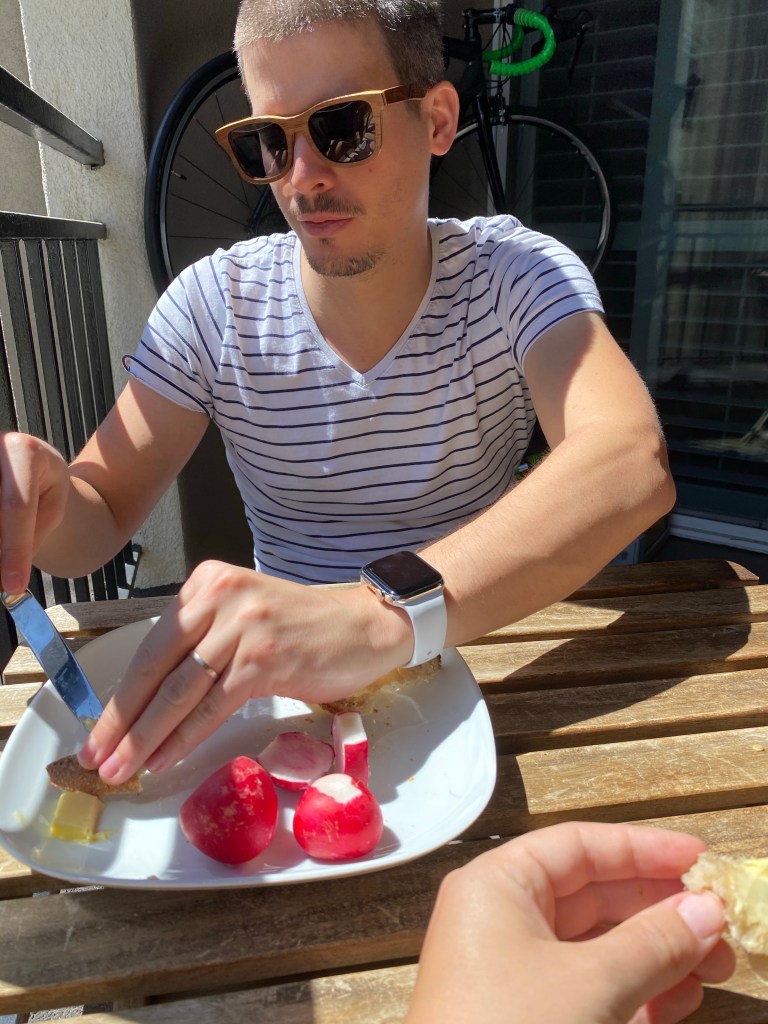 Catégories American Way of Life Déjeuner ensoleillé Post author Par Pauline Dubeaux Post date 30 mars 2020 Aucun commentaire sur Déjeuner ensoleillé Comme tous les midis nous déjeunons sur le balcon… seul accès à l’air frais en ce confinement! Le pain, le beurre et les radis… un vrai petit français! (Mais bon c’est quand même bon le pain et le beurre…) ← Nouvel achat de Guillaume → Premier cours de guitare pour bébé Gabriel Laissez un commentaire Annuler la réponse. Δ Ce site utilise Akismet pour réduire les indésirables. En savoir plus sur la façon dont les données de vos commentaires sont traitées.