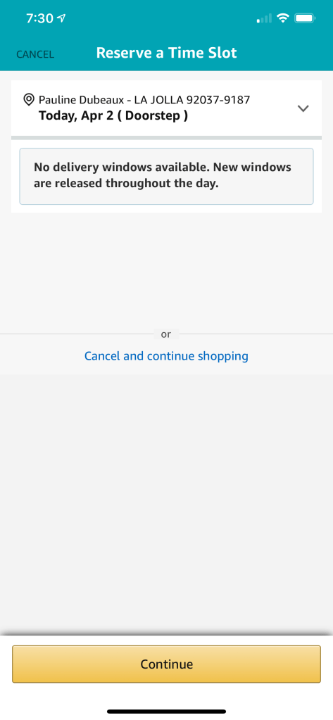 Comme nous ne souhaitons pas faire les courses, nous tentons la livraison Amazon jour après jour 10x nous at jour et la frustration de cette réponse ne diminue pas…