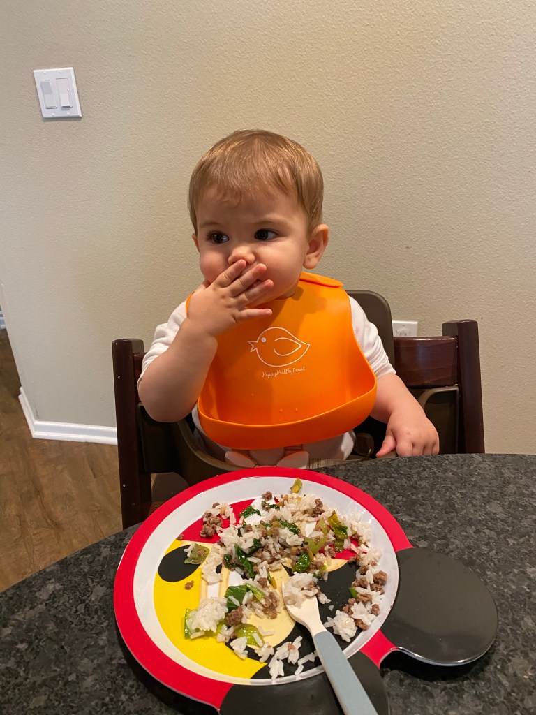 Nous sommes cependant très fiers de Gabriel qui a mangé ce midi un plat asiatique : rice bowl avec du bock choy et du gingembre!