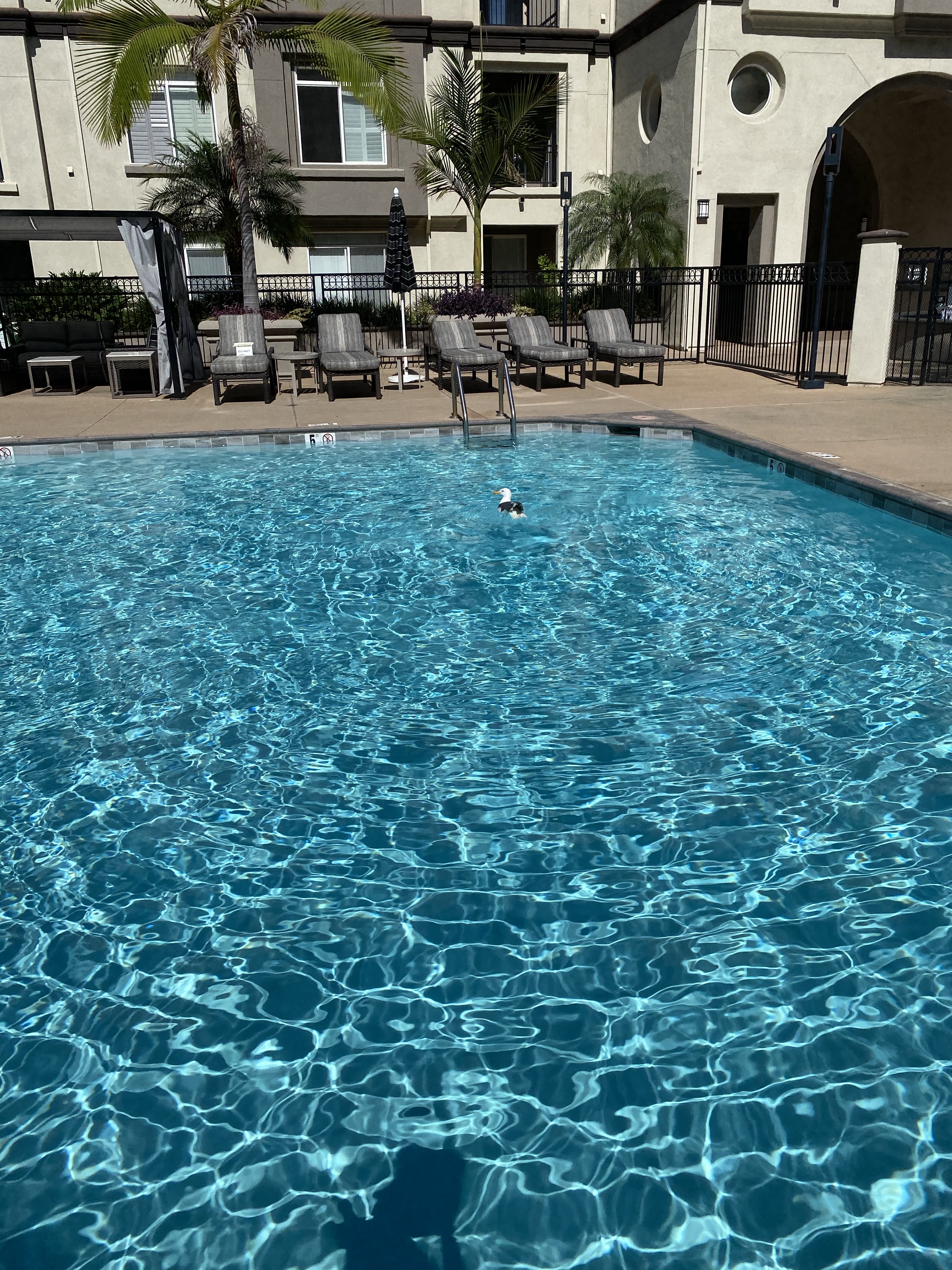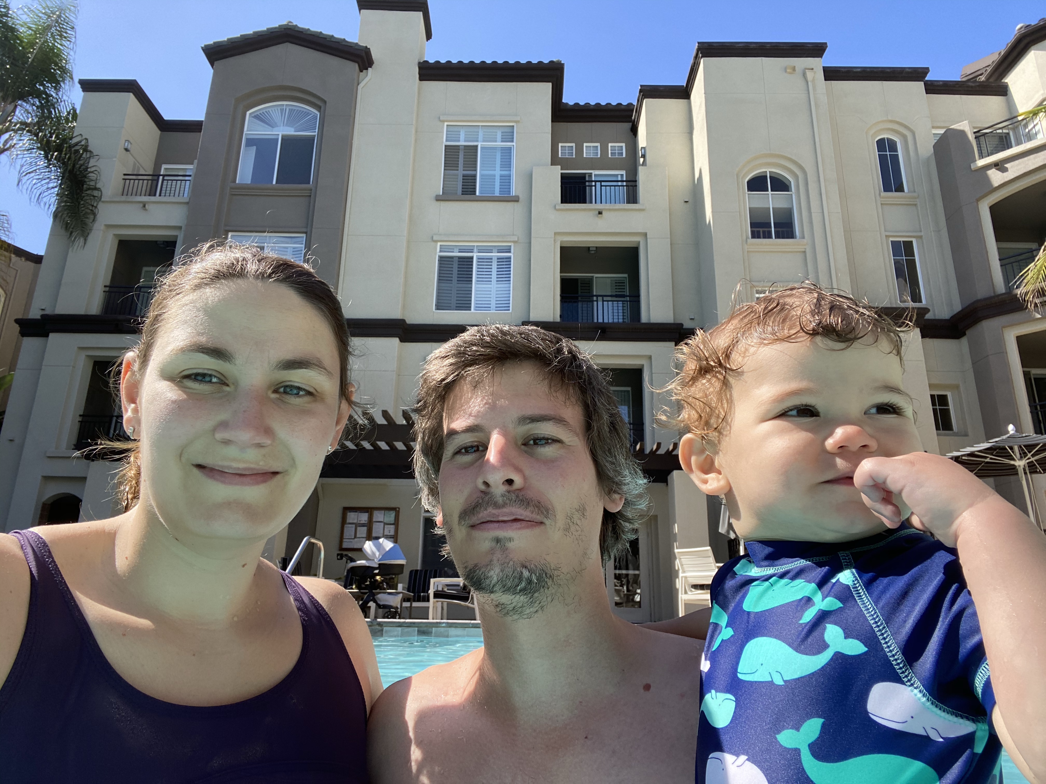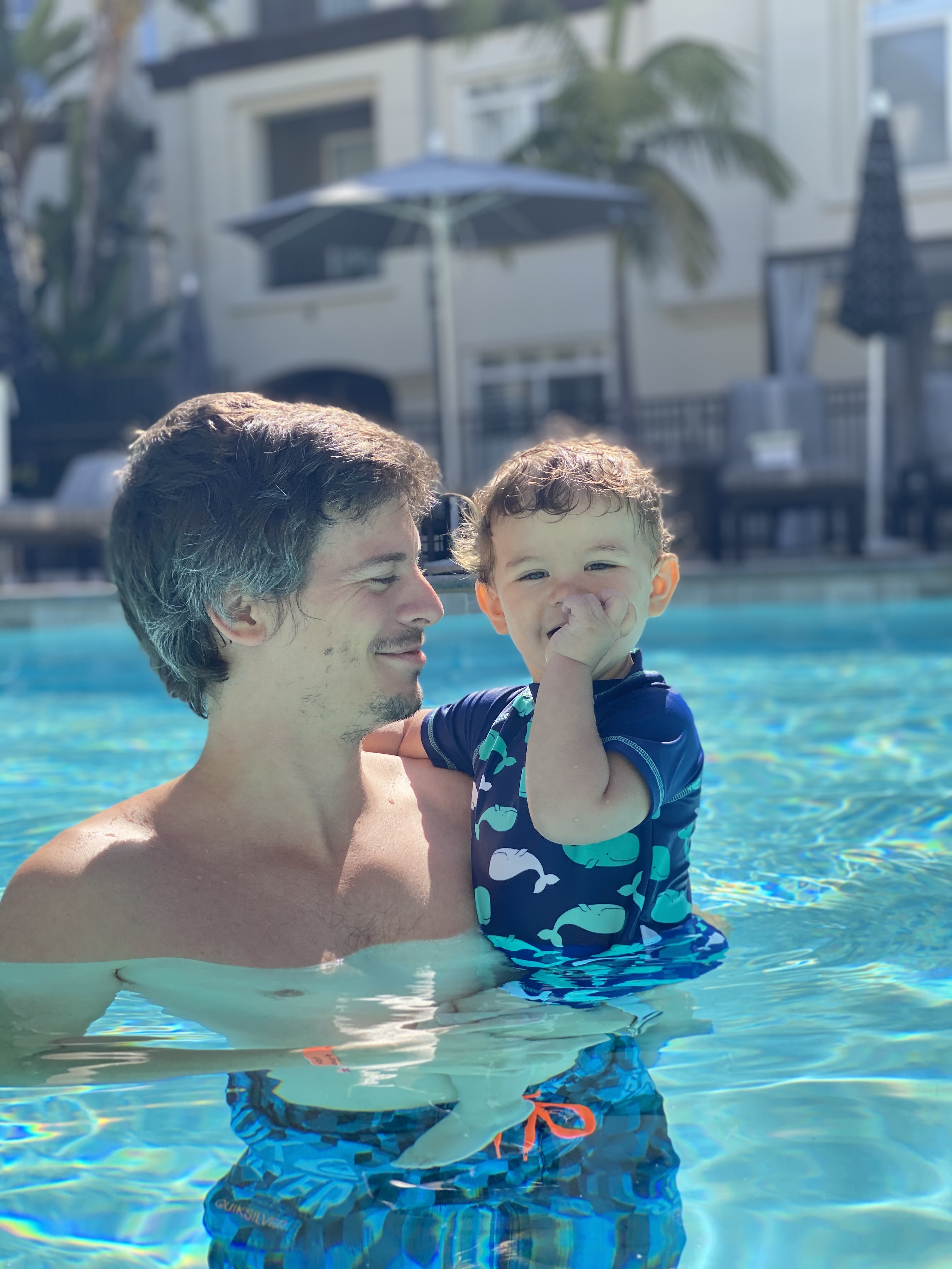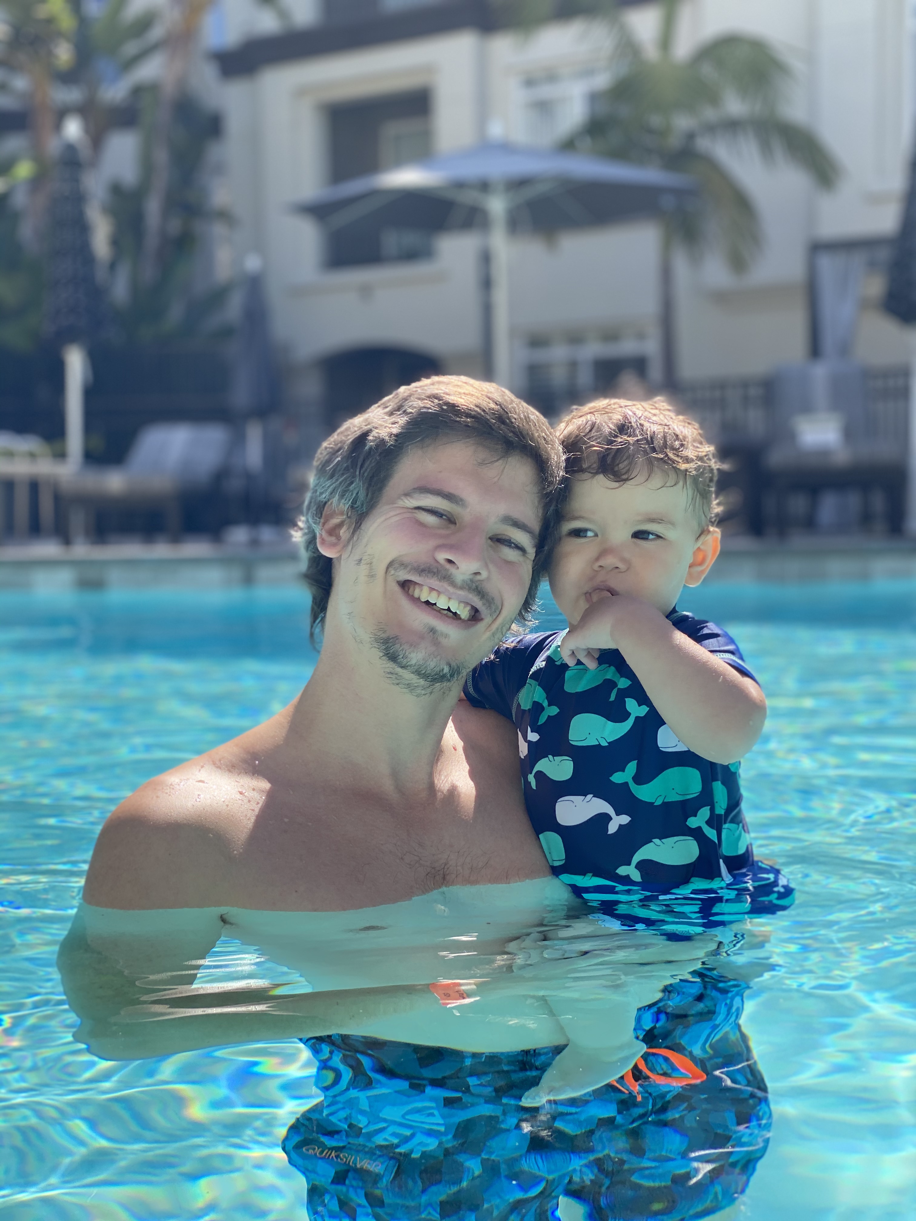 Samedi matin alors que nous nous promenons de bon matin, personne n’arrive pour la réservation de 9h00 à la piscine. Ni une ni deux, nous voilà en route pour l’accueil afin de voir si il n’y a vraiment personne et si nous pouvons réserver! Et hop nous voilà dans l’eau pour le plus grand bonheur de Gabriel (et un peu moins de Guillaume pour qui le réveil à 9h00 a été difficile 😜)