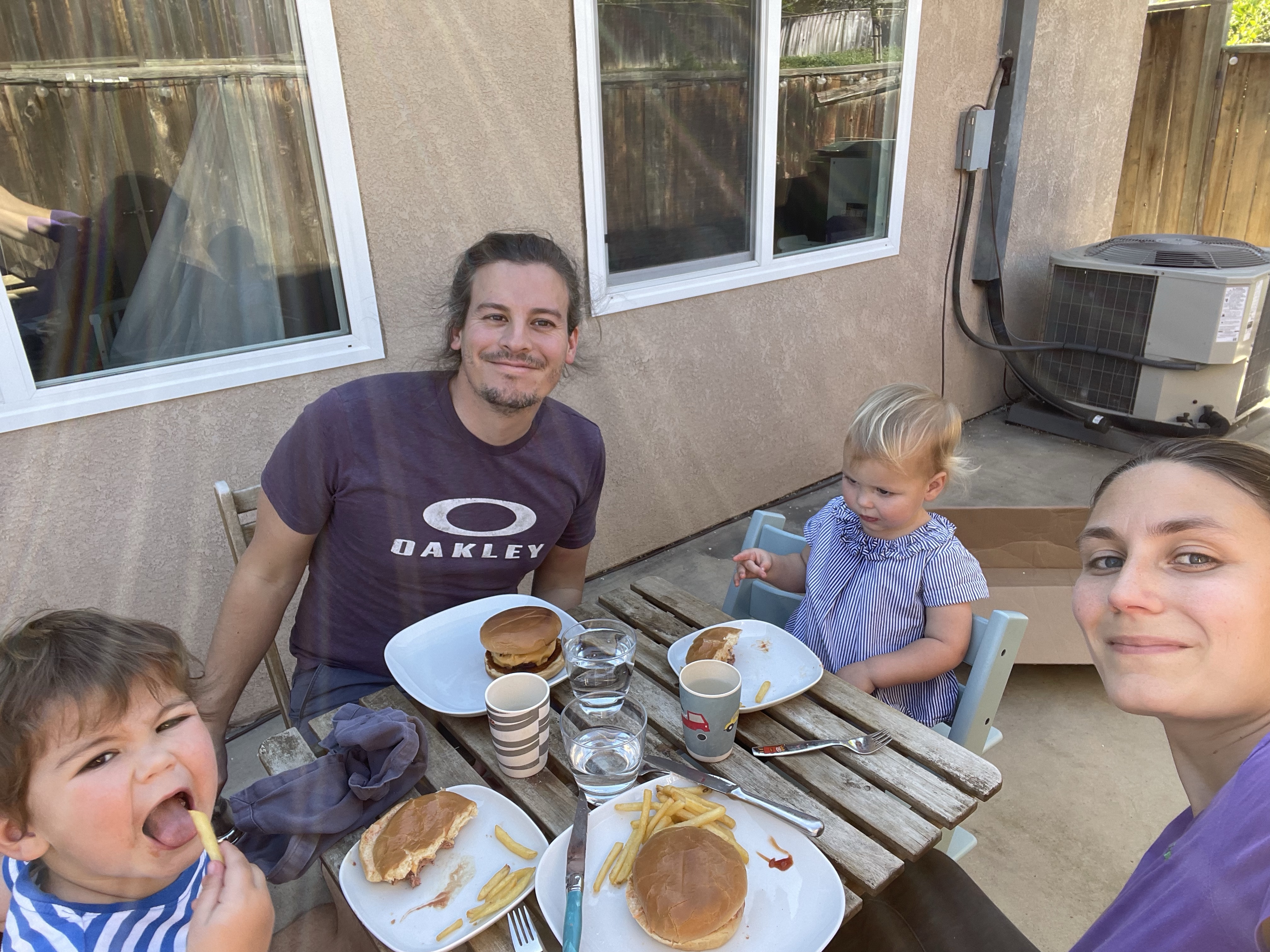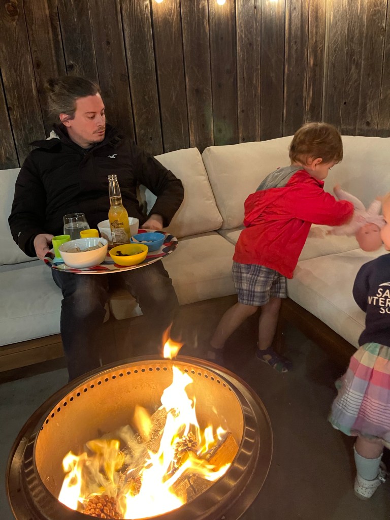 Le vendredi soir c’est tradition fire pit et apéritif! (Il ne faisait plus que 22 degrés d’où le gros manteau de Guillaume!