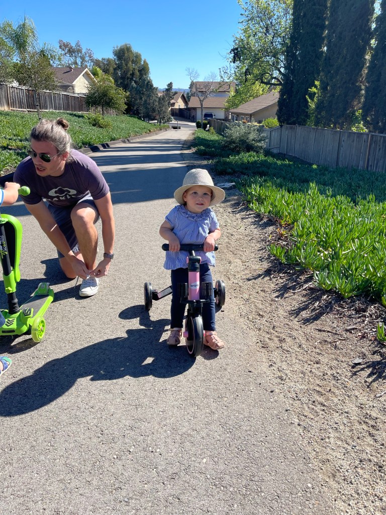 Et enfin dimanche, petite promenade sur les hiking trails (chemins de randonnée) avec vélo et trottinette et nos amis Nadine et Sebastian.