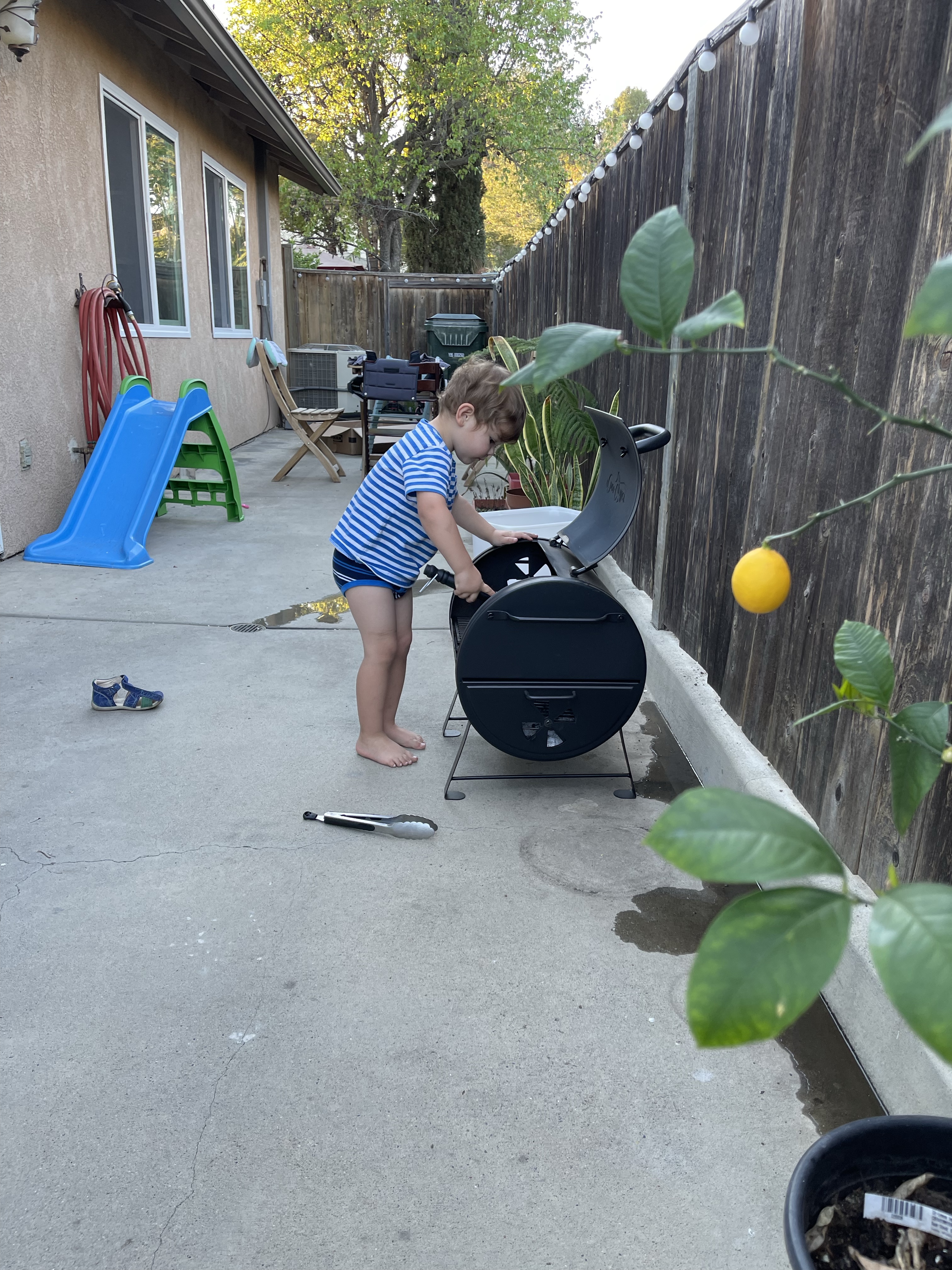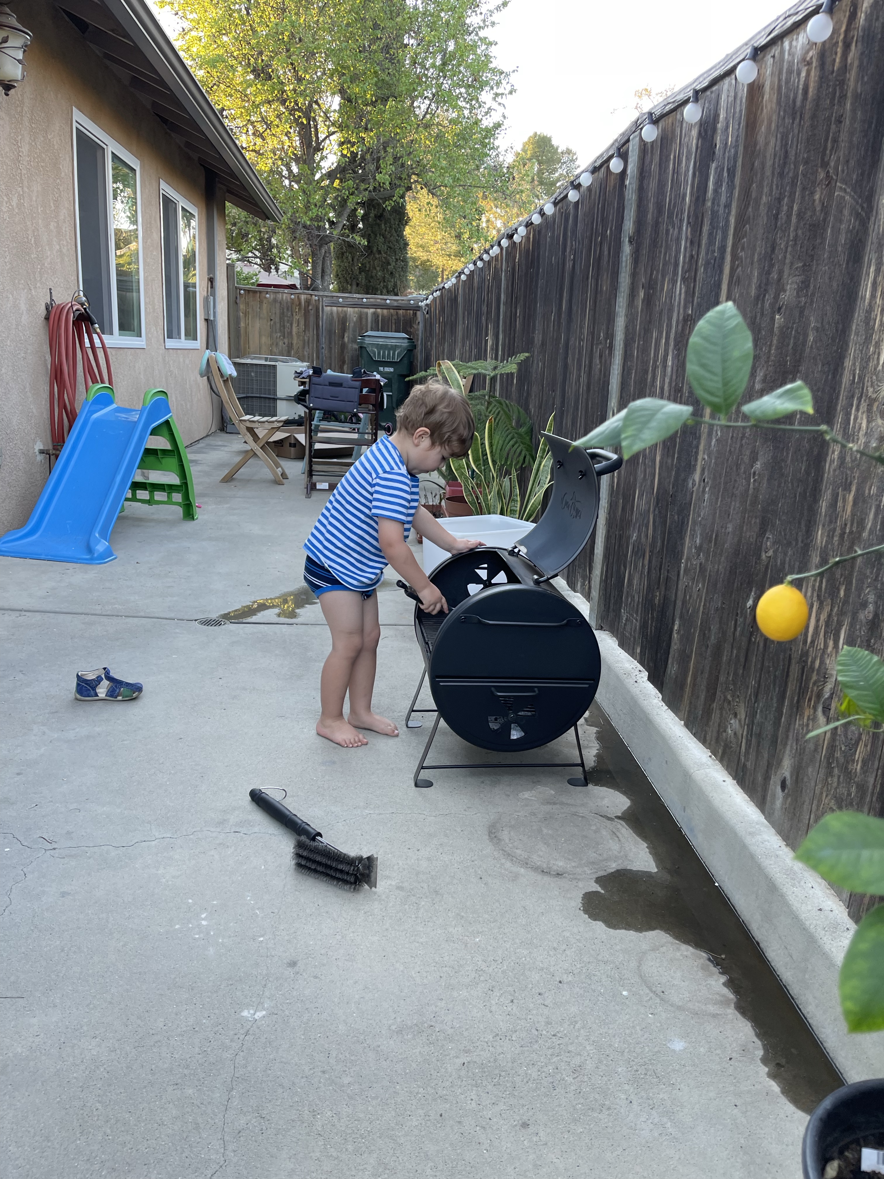 Et après la sieste nous voilà de retour dehors pour un peu de jardinage et nettoyage du barbecue!
