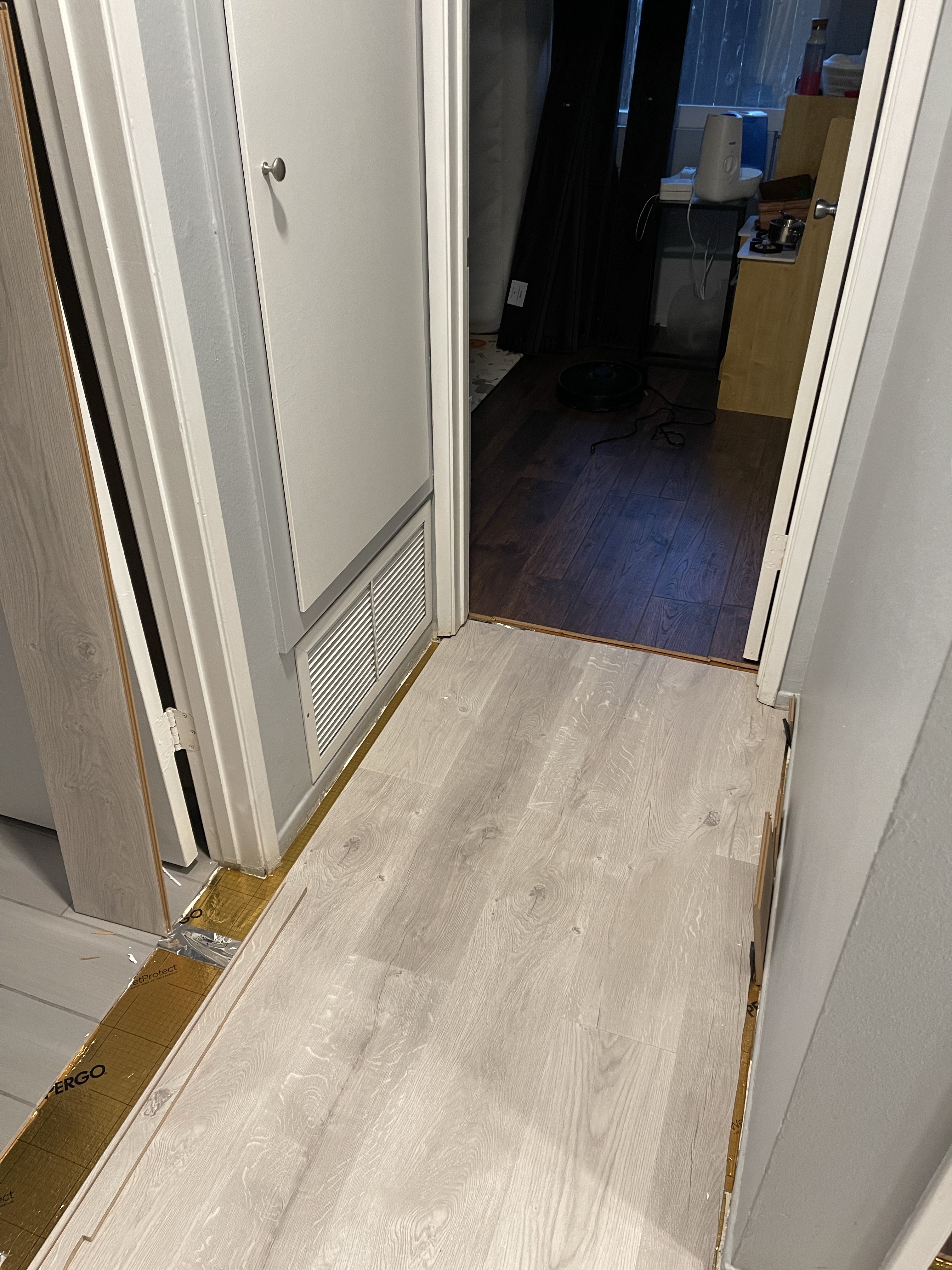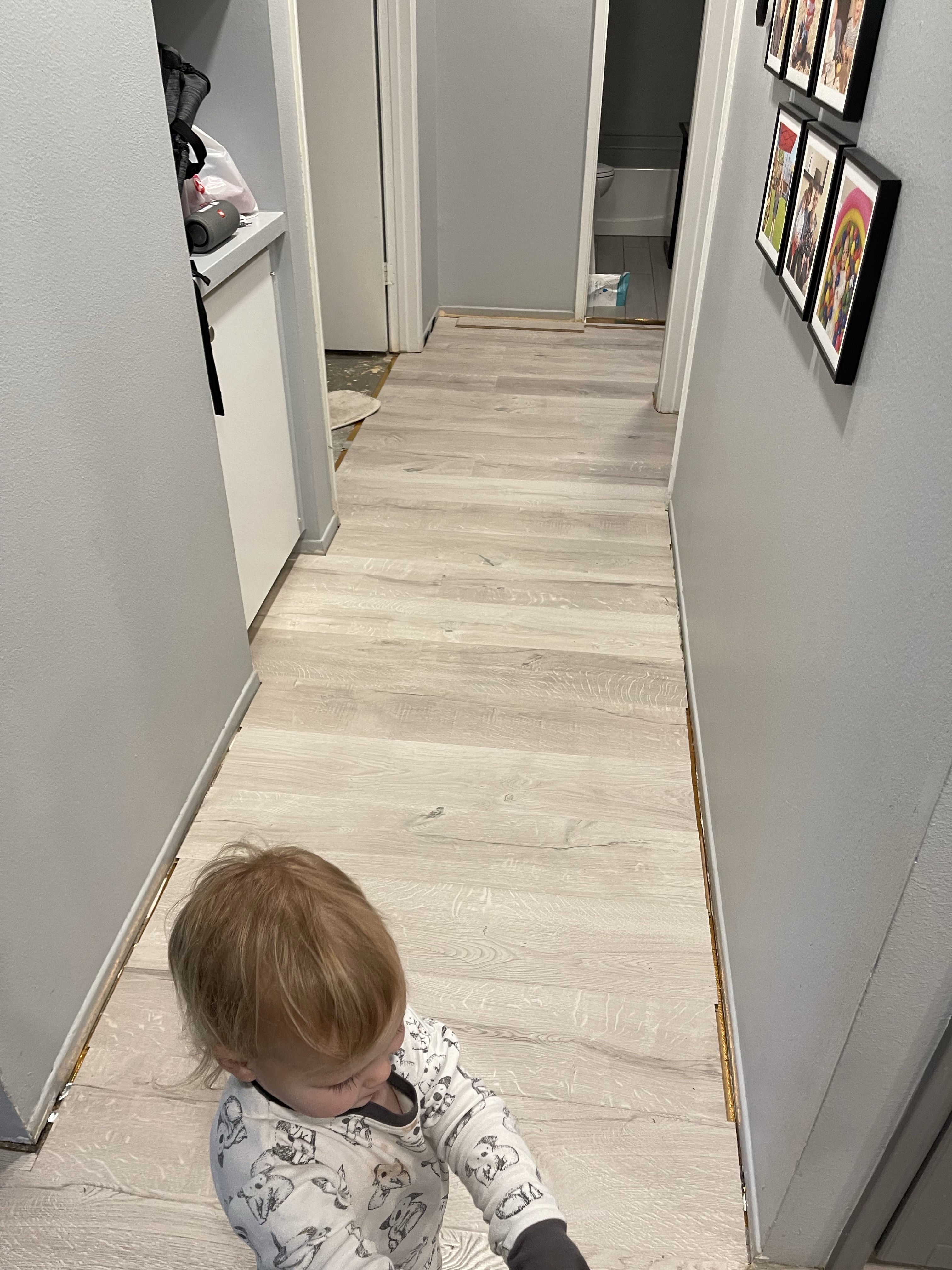 Et Guillaume a quasi fini le couloir et il a commencé la chambre! Papi Alain arrive dans 3 jours, le parquet sera-t-il fini? Les paris sont ouverts!