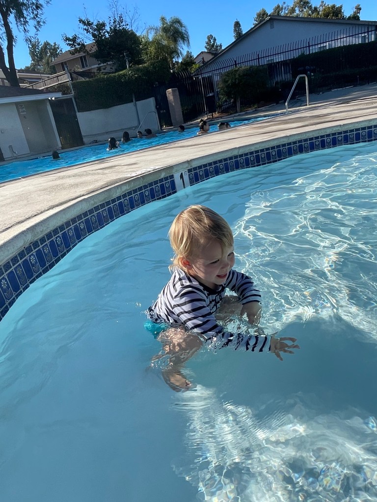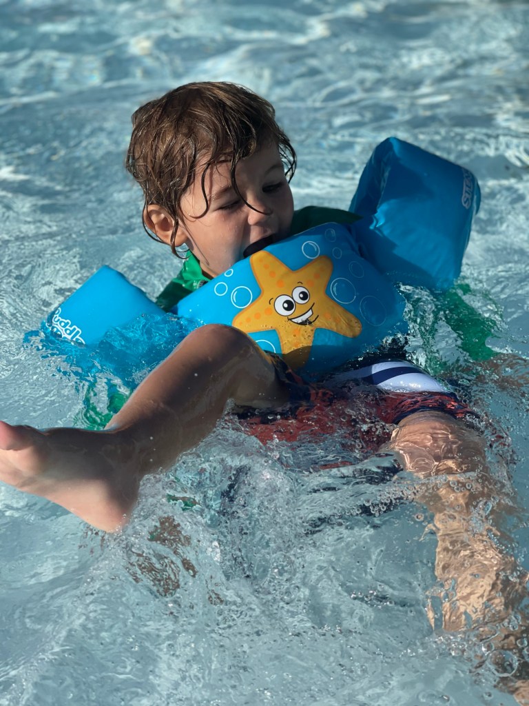 Nous assistons donc à un mélange de saut, de nage, et de rire, avec et sans brassards dans le petit bain car la piscine est pleine! Quel plaisir de voir les enfants si contents!