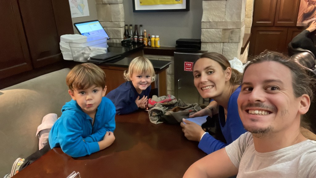 A notre arrivée, après une longue nuit blanche, nous prenons un petit déjeuner avec Margot et Marla avant de sombrer dans une sieste profonde!