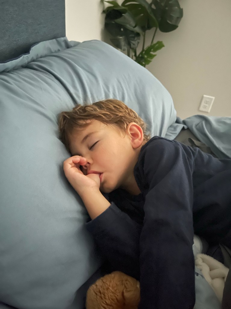 Nous passons la soirée à discuter et à jouer! C’est trop bon de se revoir! Nous jouons à un jeu trop bête : avec un fantôme, un livre, un fauteuil et une bouteille, tous d’une couleur différente et il fait repérer ce qui manque (ou le bon objet de la bonne couleur) sur la carte et l’attraper le plus vite possible : fou rire garanti! Surtout quand tu es fatigué!