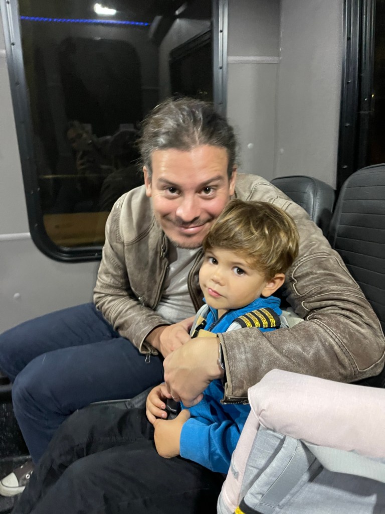 Après un grand moment de stress car l’aéroport est plein, nous voici finalement dans l’avion en direction de San Diego! À bientôt les copains!