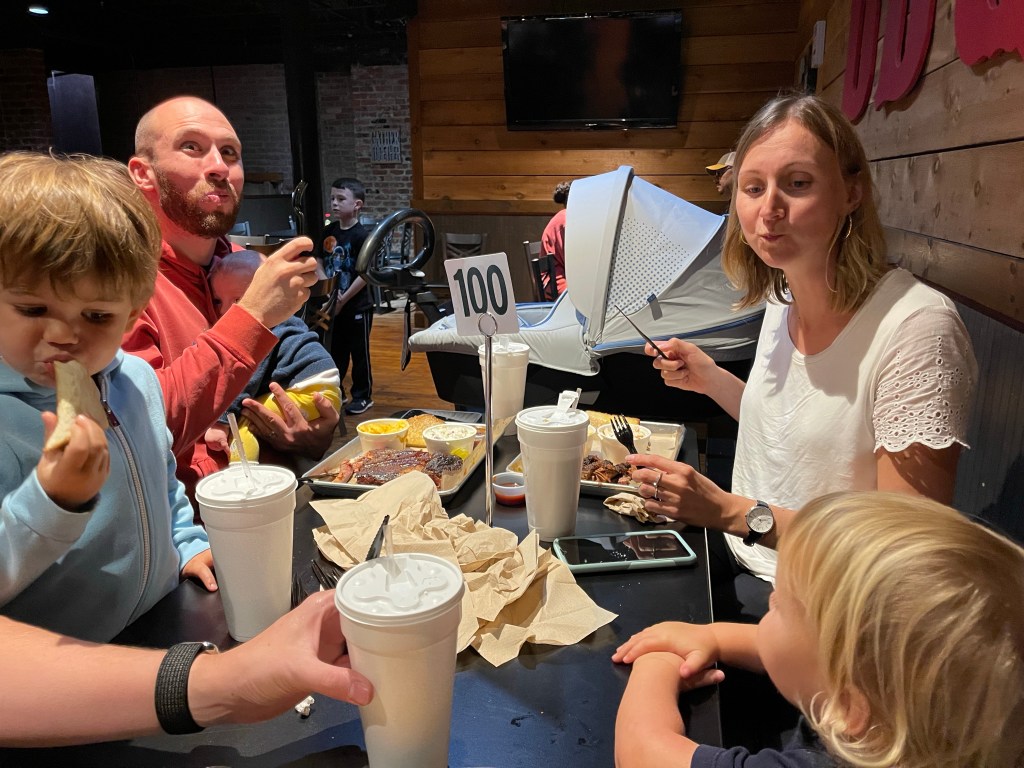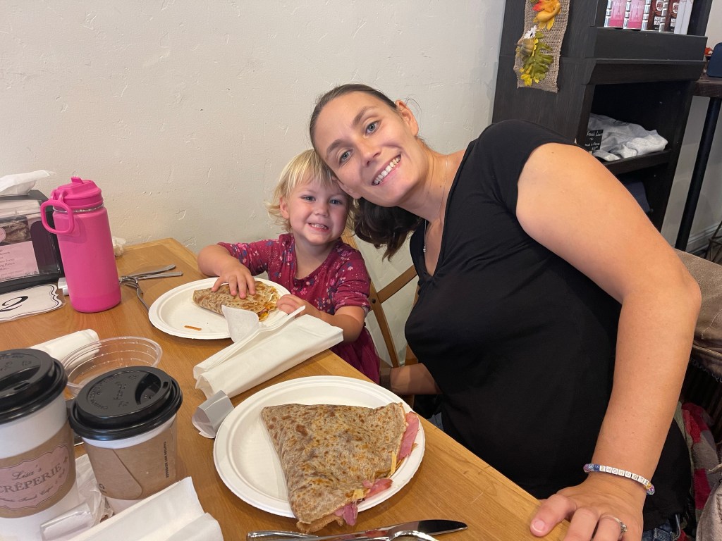 Jeudi la pluie s’est enfin arrêtée et nous nous lançons dans une excursion dans la ville d’à côté avec Margot et bébé! Nous visitons donc Senoia, un tout petit village (pour les fan de Walking dead, la série a été tournée là-bas). Nous en profitons pour manger des crêpes dans une crêperie française 😂😘😂