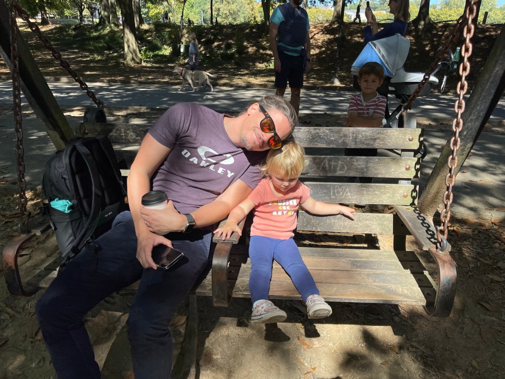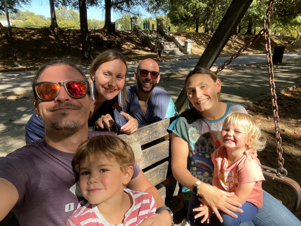 Le samedi matin nous prenons la route pour aller passer la journée à Atlanta! Nous nous garons à quelques rues d’un parc où Margot et Anthony aiment bien se promener puis nous marchons tranquillement jusque là-bas!