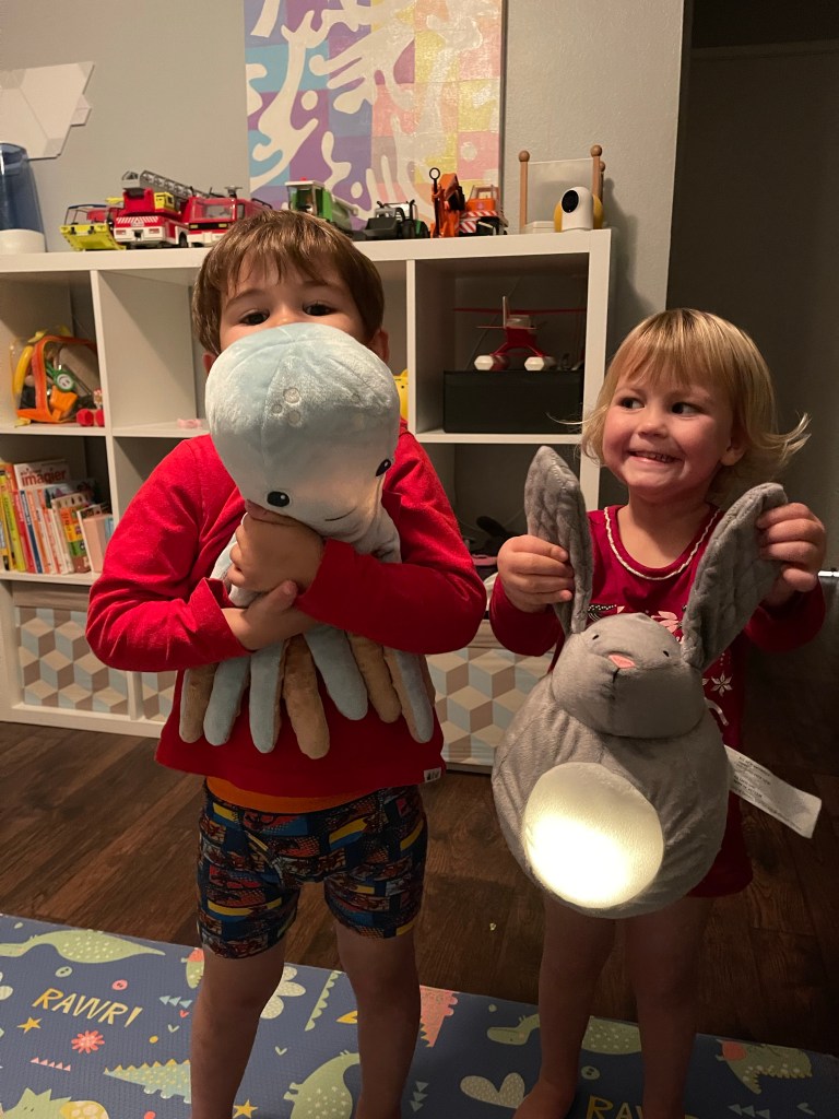 Comme les enfants (enfin surtout Gabriel) ont peur la nuit, nous avons acheté des petites peluches lumineuses!