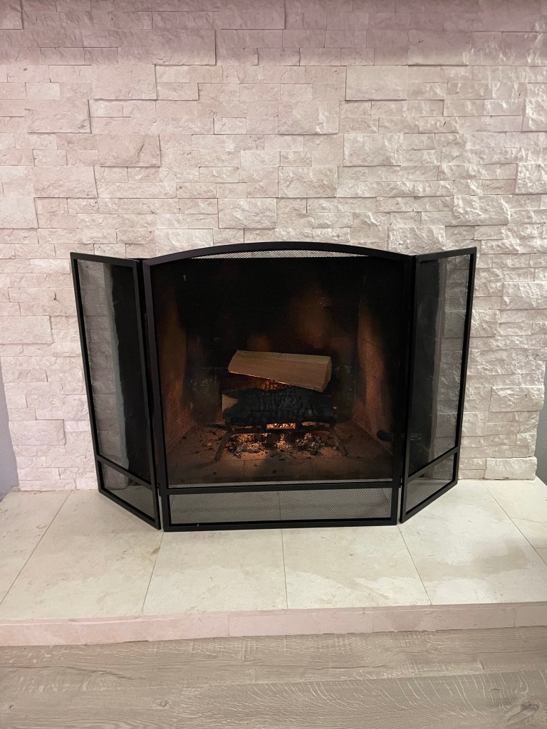 Nous en avons également profité pour acheter une grille pour sécuriser la cheminée car visiblement un des thèmes de 2023 est : feu de cheminée dans la maison!