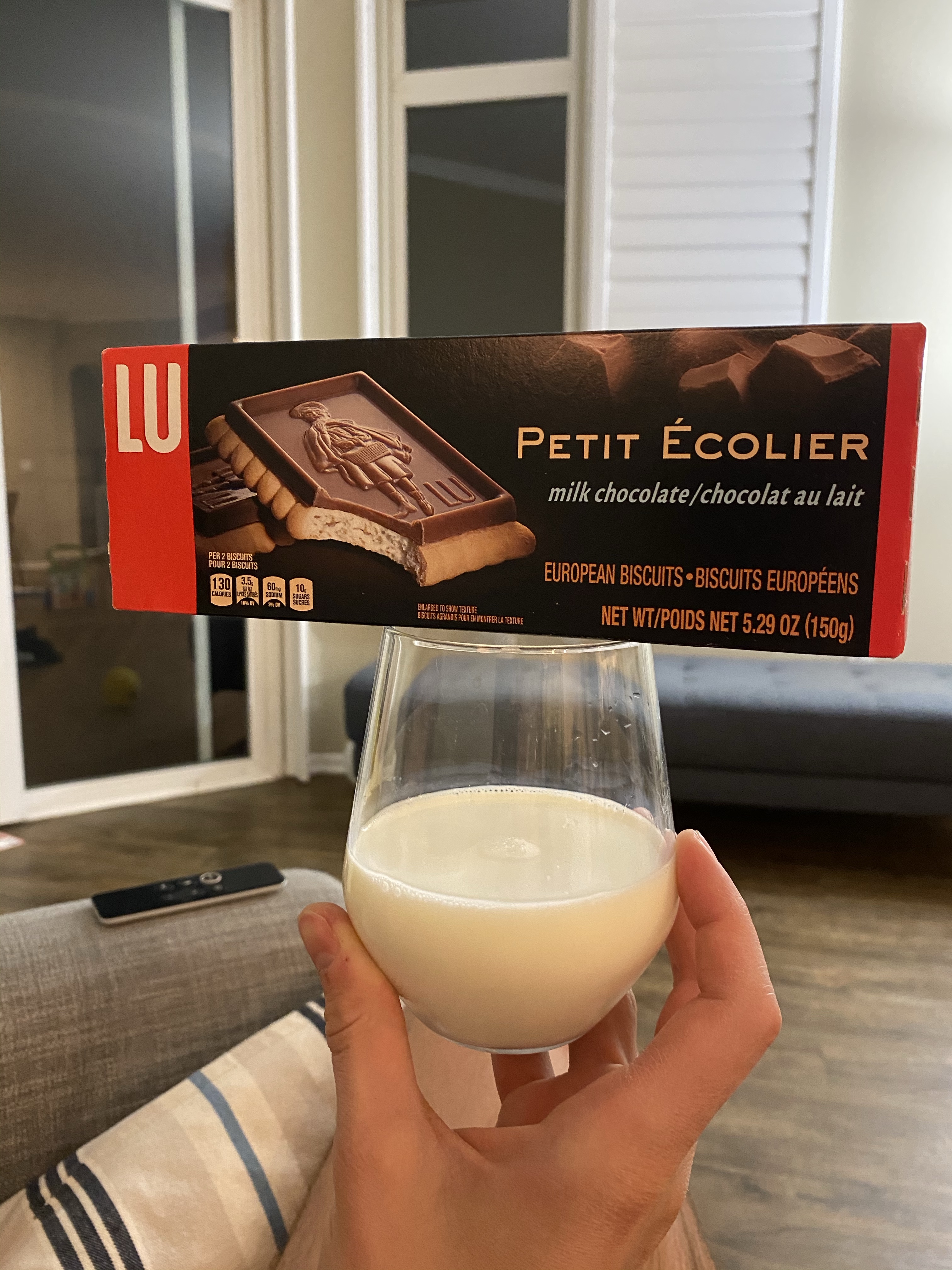 Une de mes collègues nous avait mentionnés que maintenant on trouvait des petits écoliers au chocolat au lait dans un super marché américain! Gentiment ce week-end elle nous en a acheté! Guillaume s’est régalé!