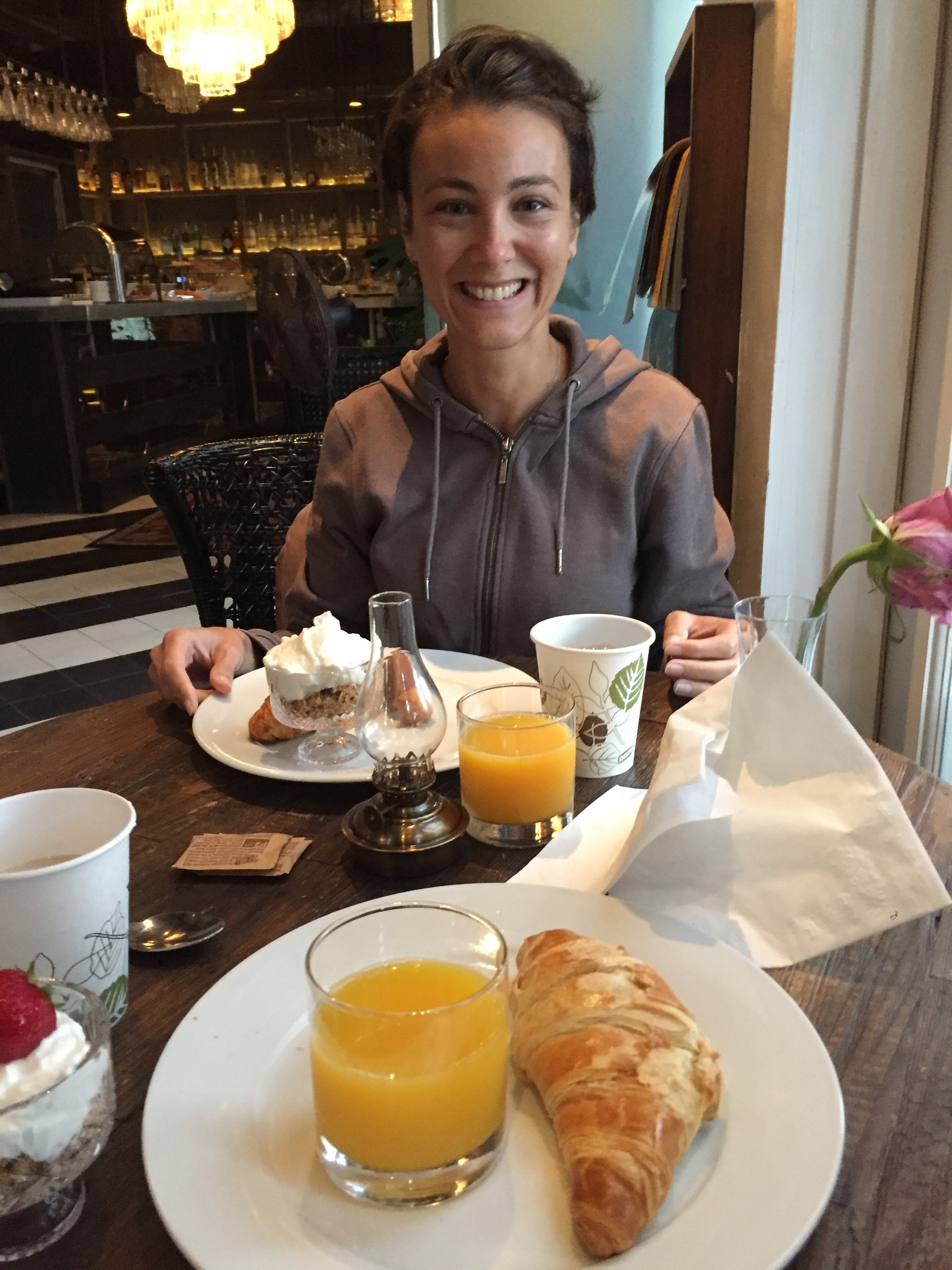 Le petit déjeuner n’étant servi qu’à partir de 7h, nous prenons notre temps pour nous préparer, ranger correctement nos affaires, câliner Berlioz et enfin nous descendons à 7h pile.