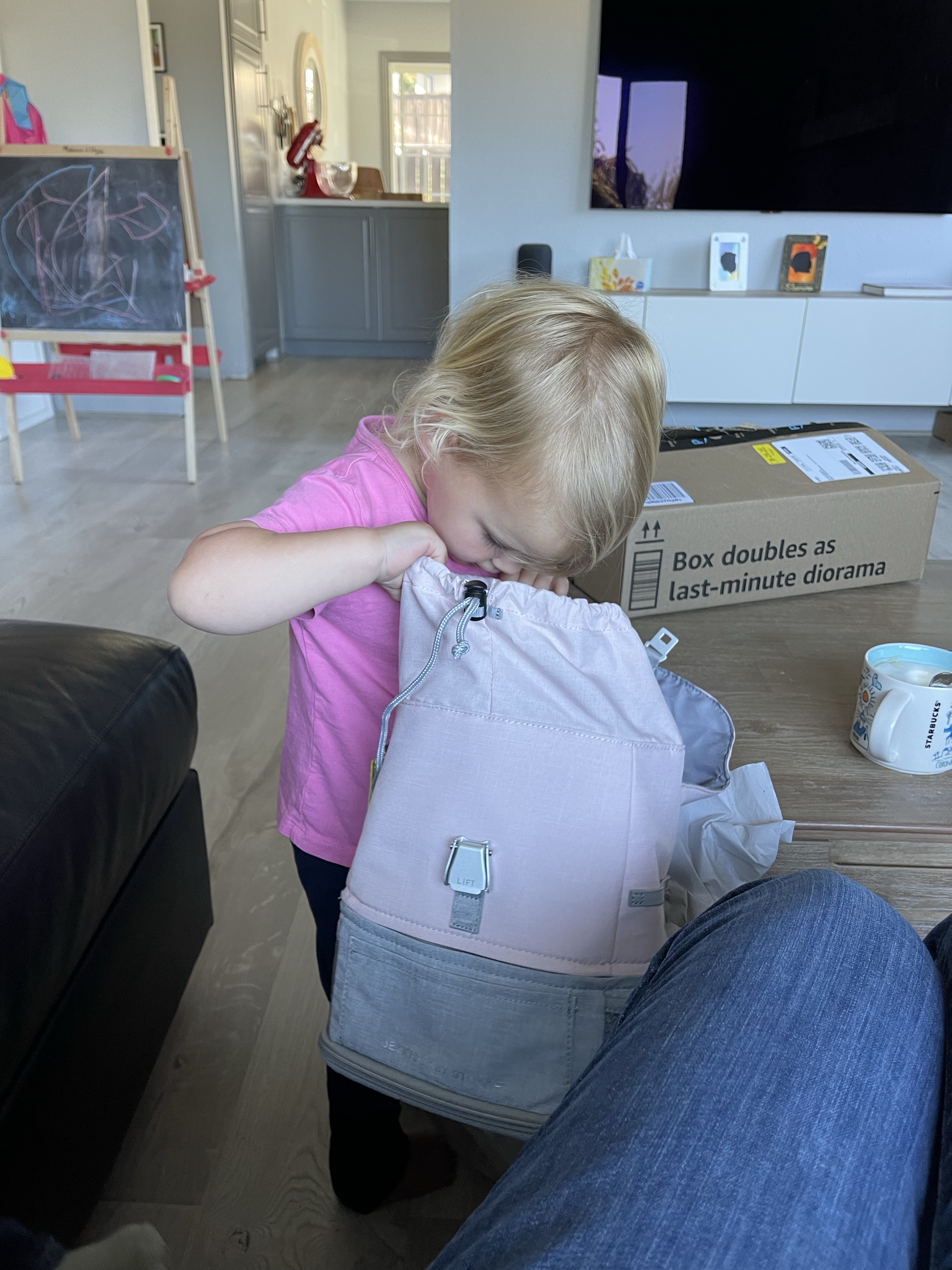 Eleonore a reçu son sac à dos! Nous attendons la valise!