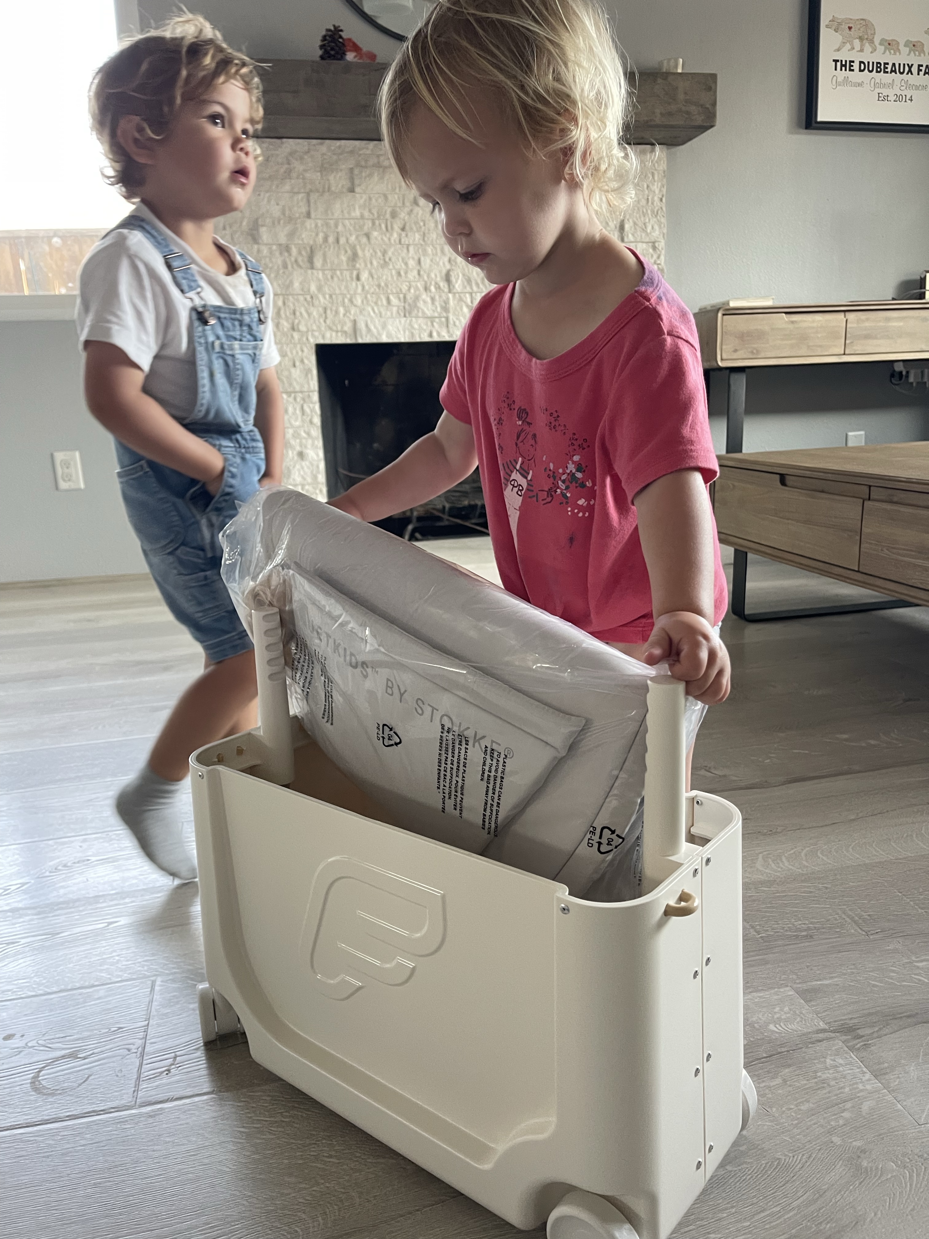 Après avoir été malade toute la journée, et passé beaucoup de temps à l’infirmerie, les enfants ont préparé leurs valises de jeux ce soir! Valise fraîchement reçue aujourd’hui pour notre petite princesse!