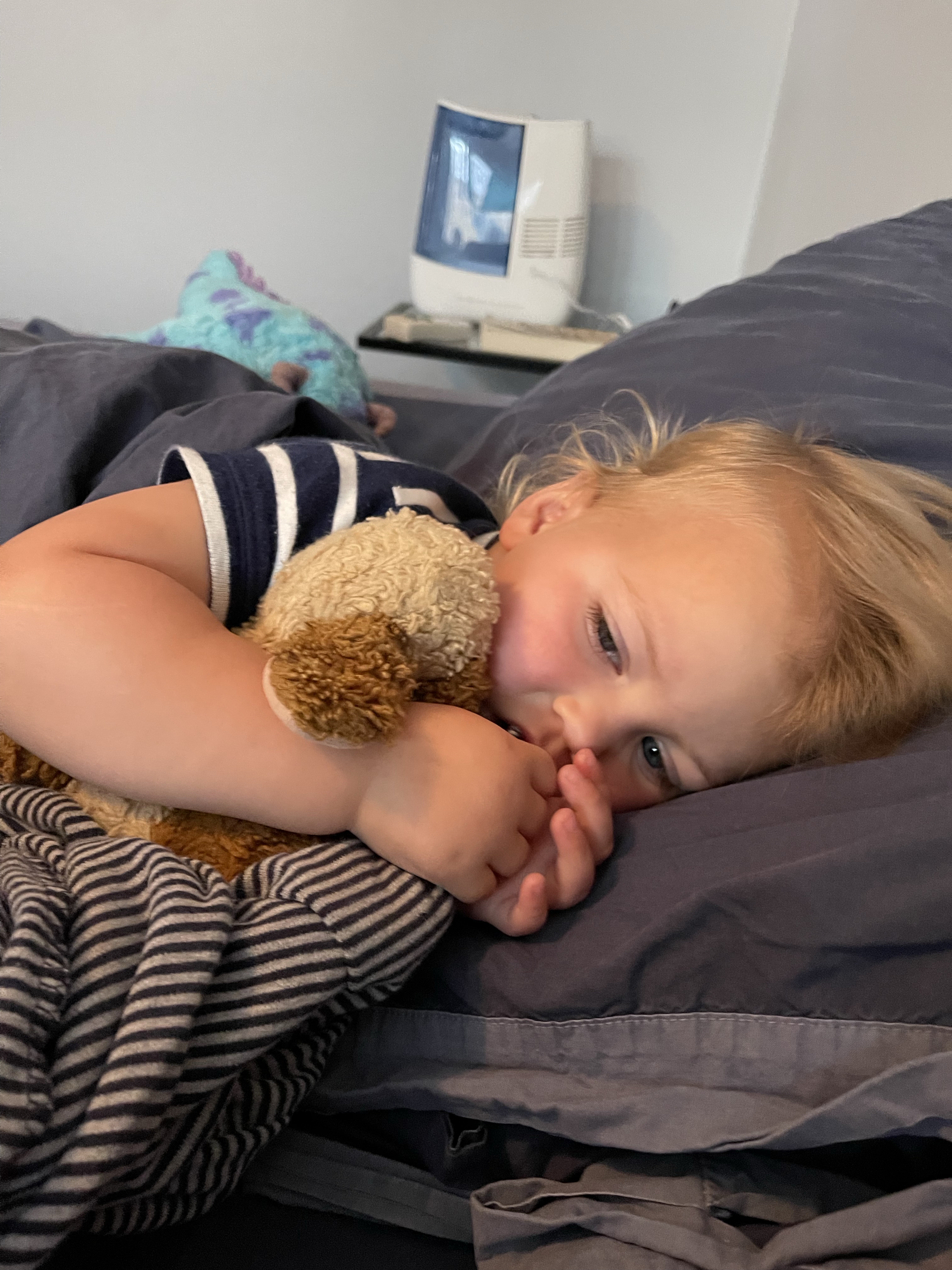 Et en ce dimanche matin la situation va mieux avec seulement 38.5 de fièvre! Yay!