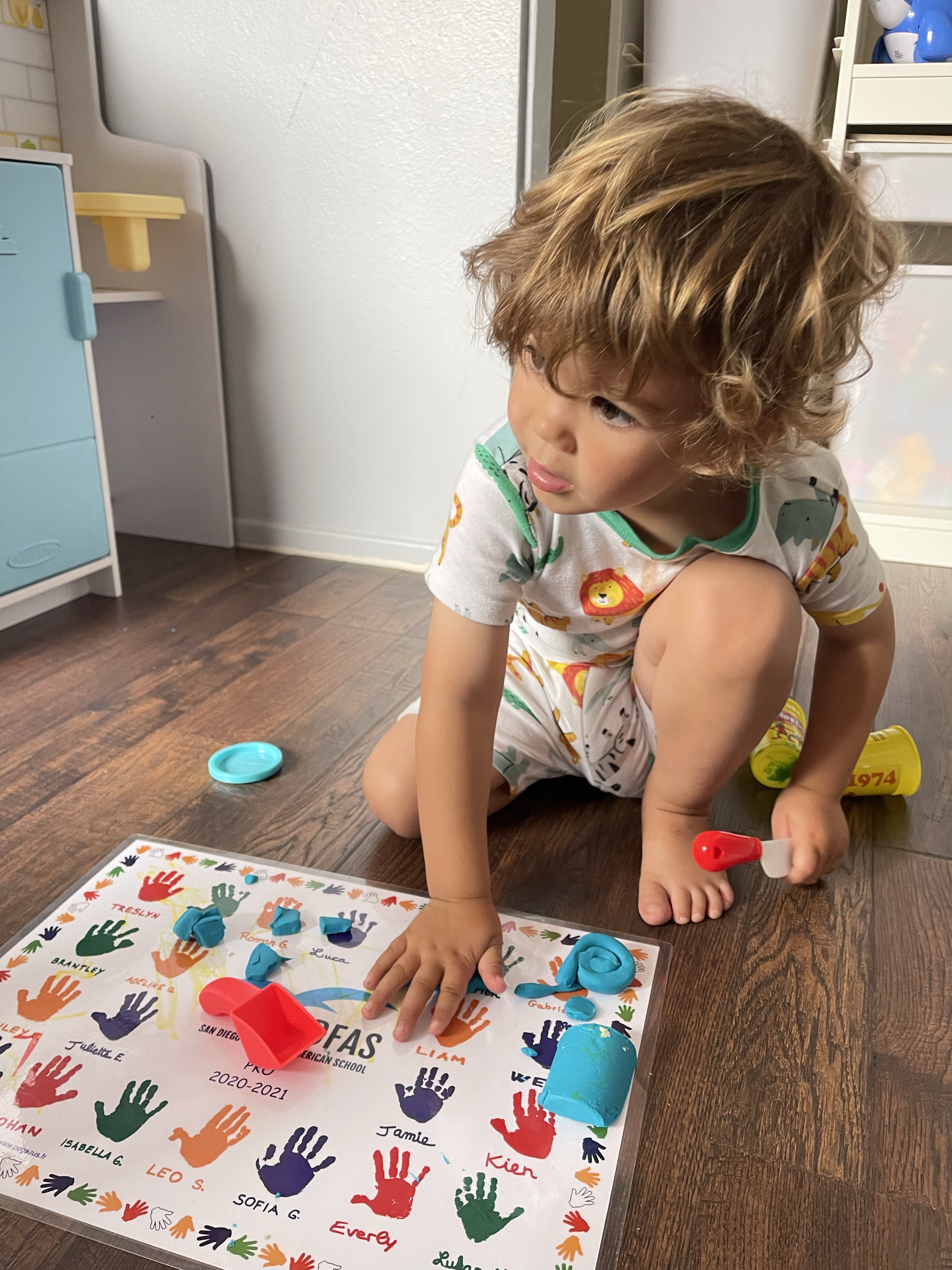 Ce matin nous avons le droit de jouer à la pâte à modeler! (sous contrôle parental)