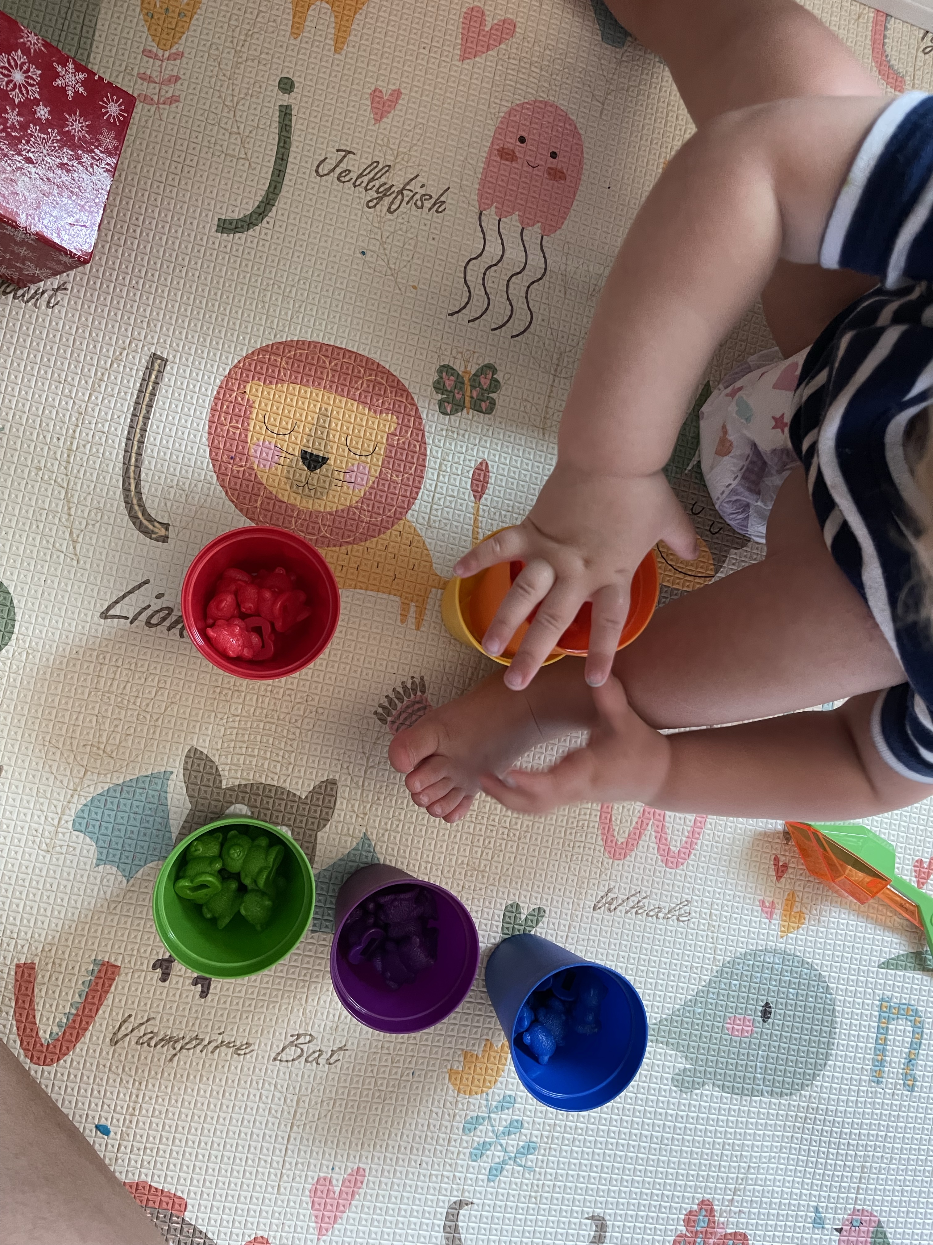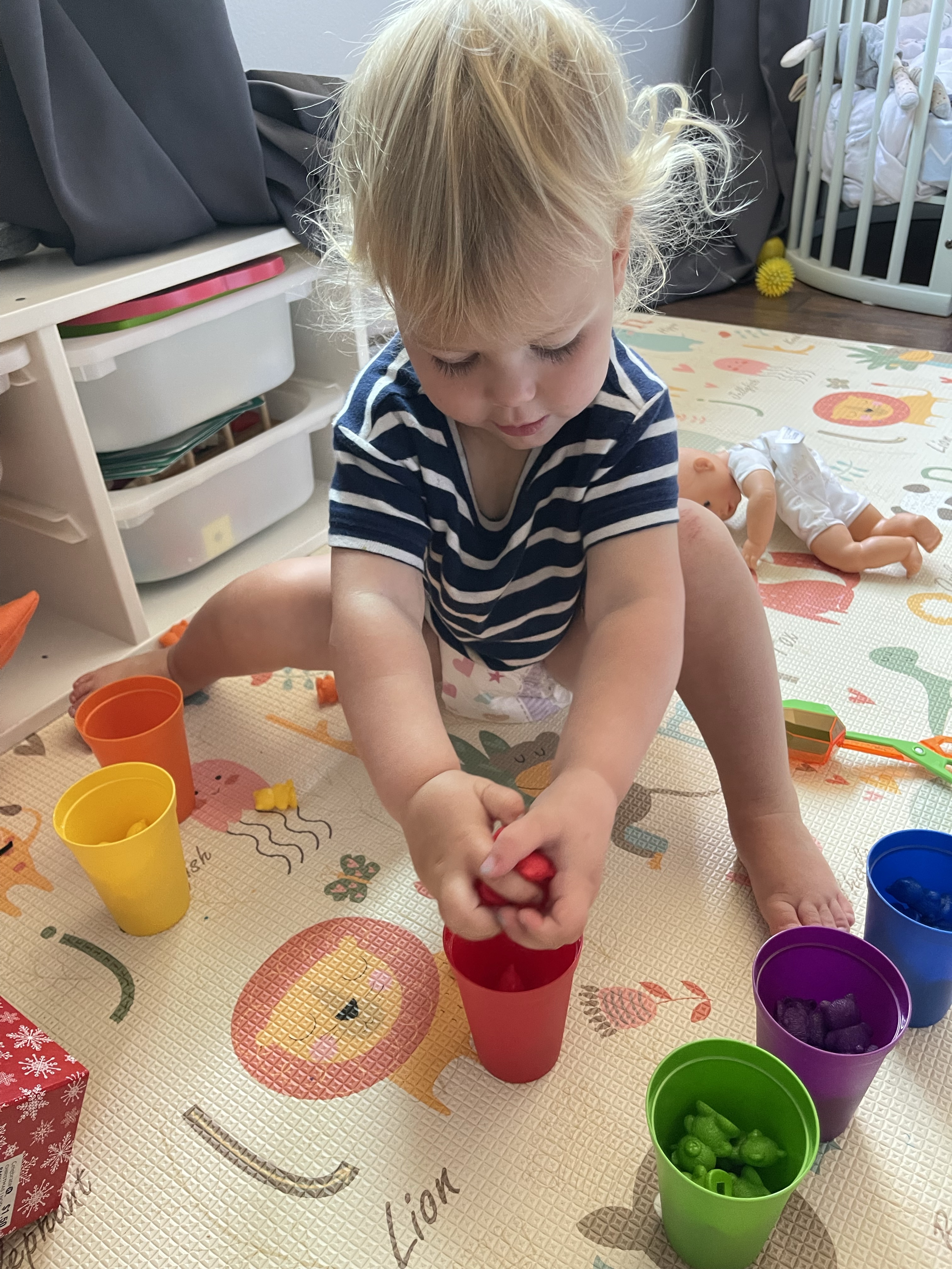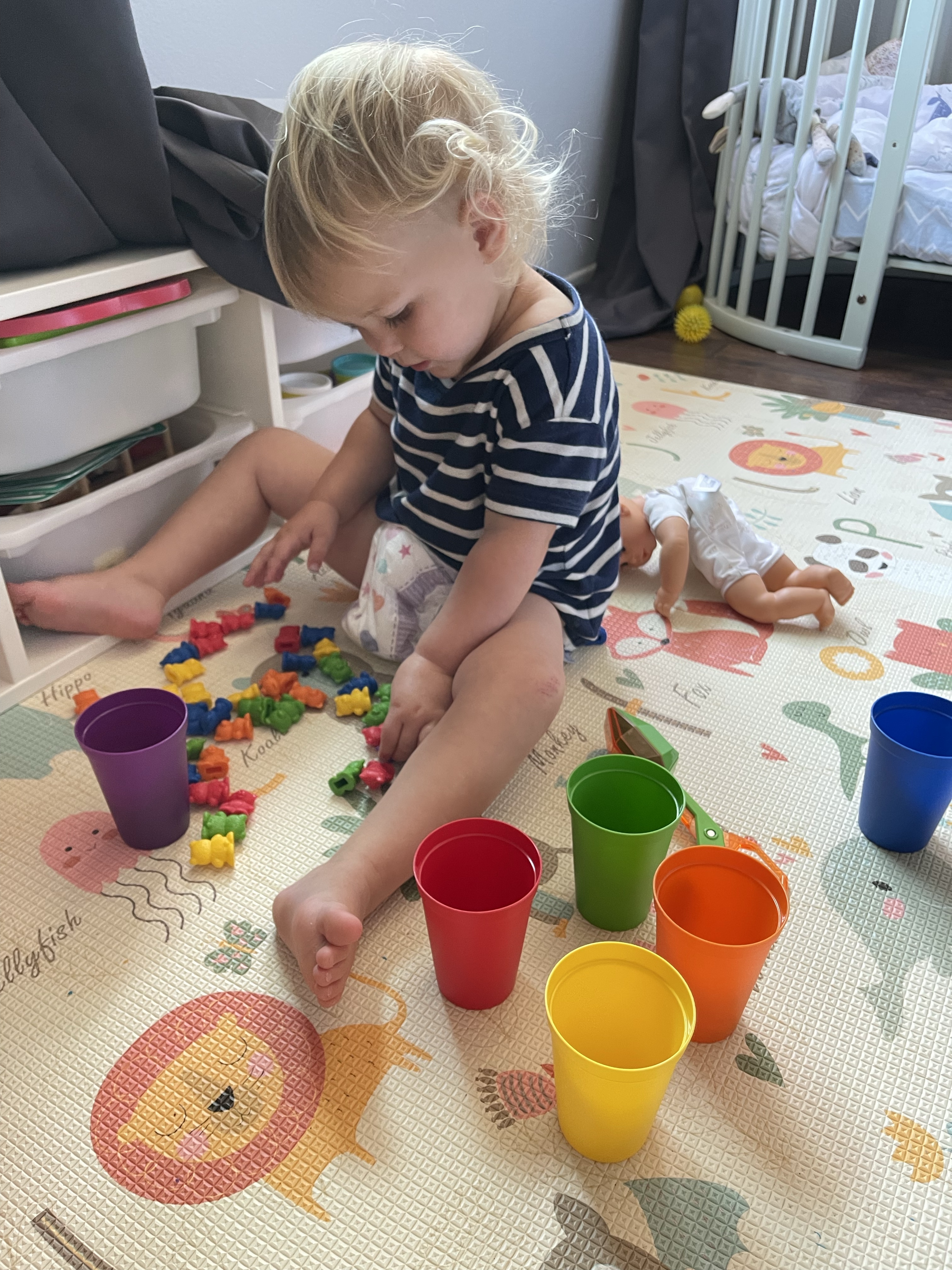 Pour une fois que j’ai un peu de temps toute seule avec Eleonore (puisque les hommes dorment encore) nous travaillons sur les couleurs!