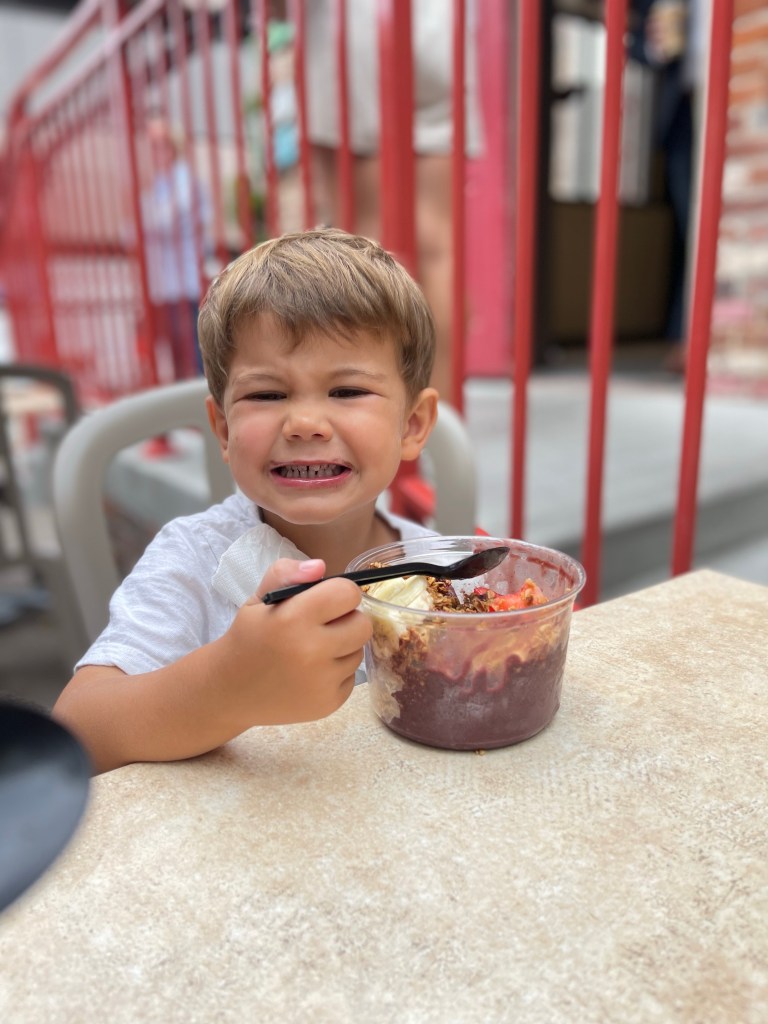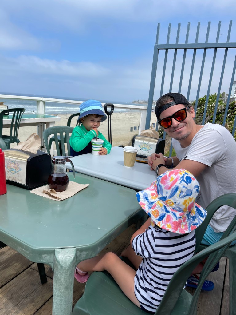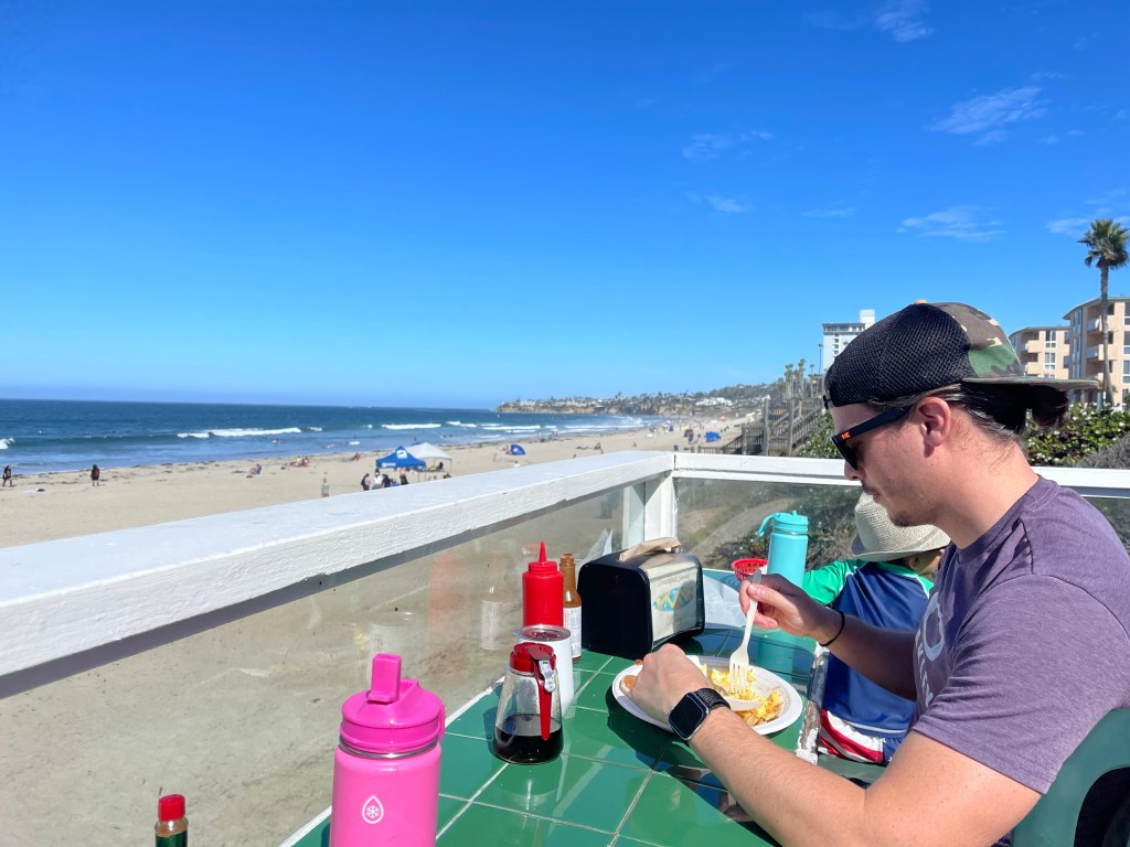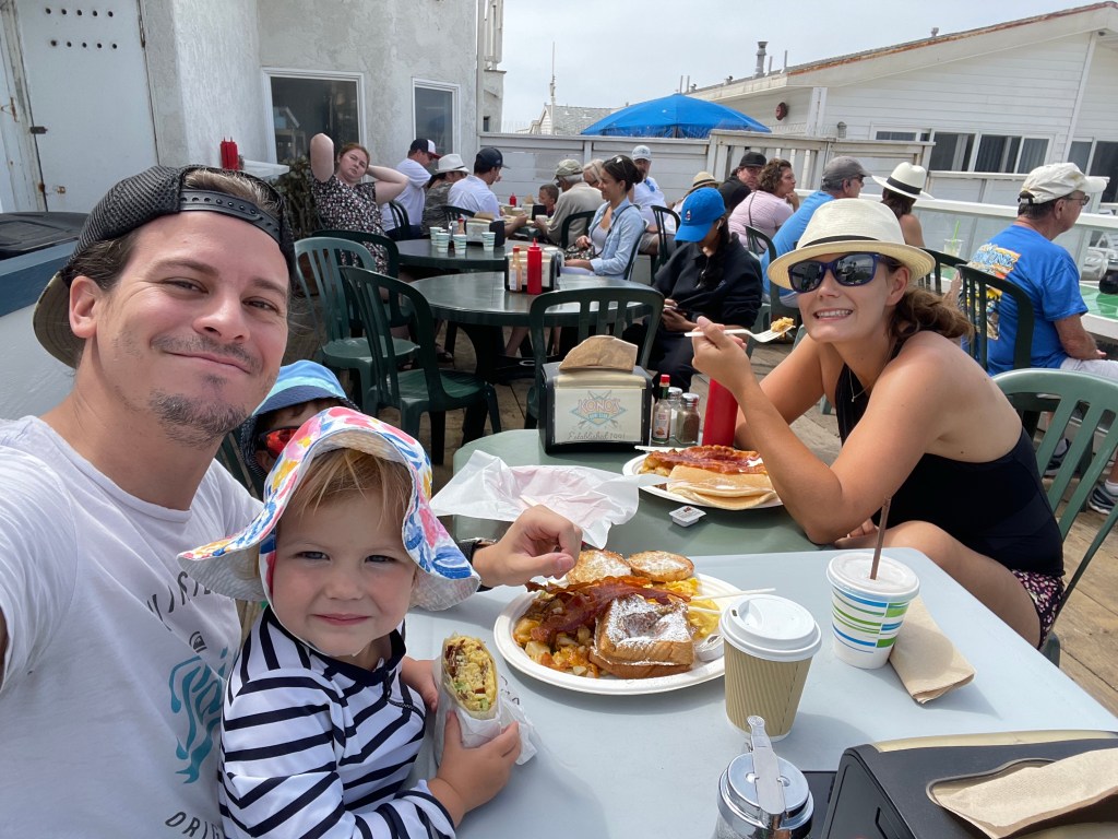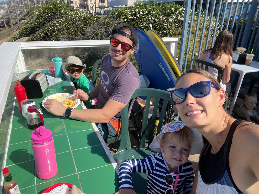Comme tout le monde est debout tôt, nous improvisons une matinée plage avec un petit déjeuner à Kono’s! Miam