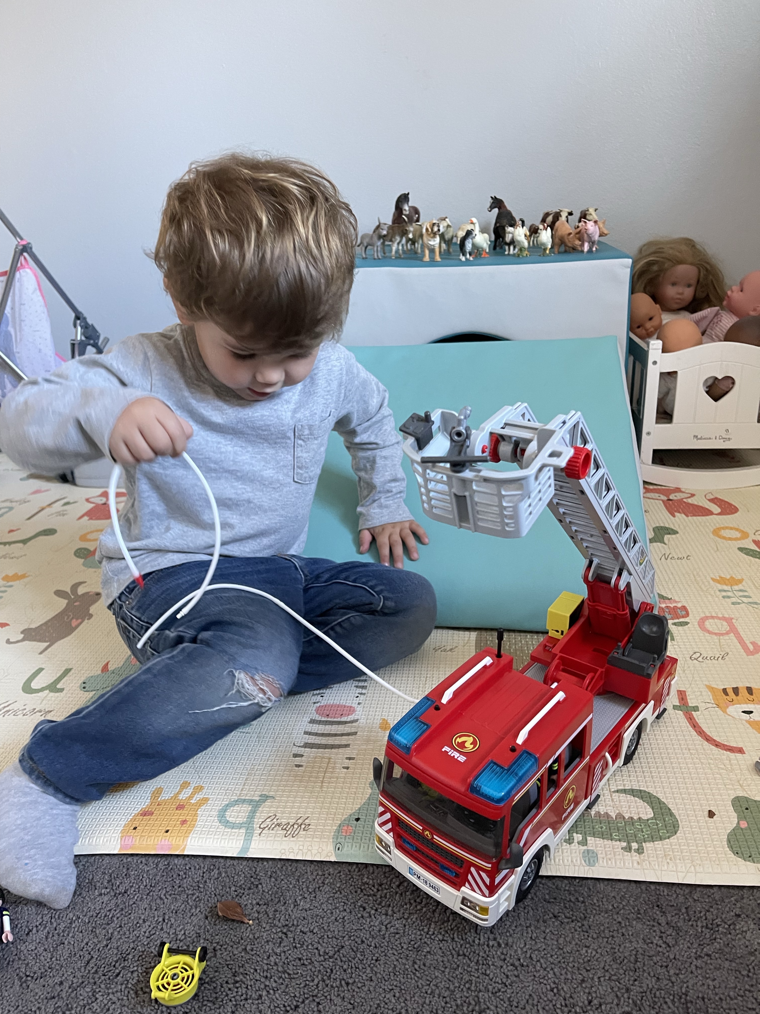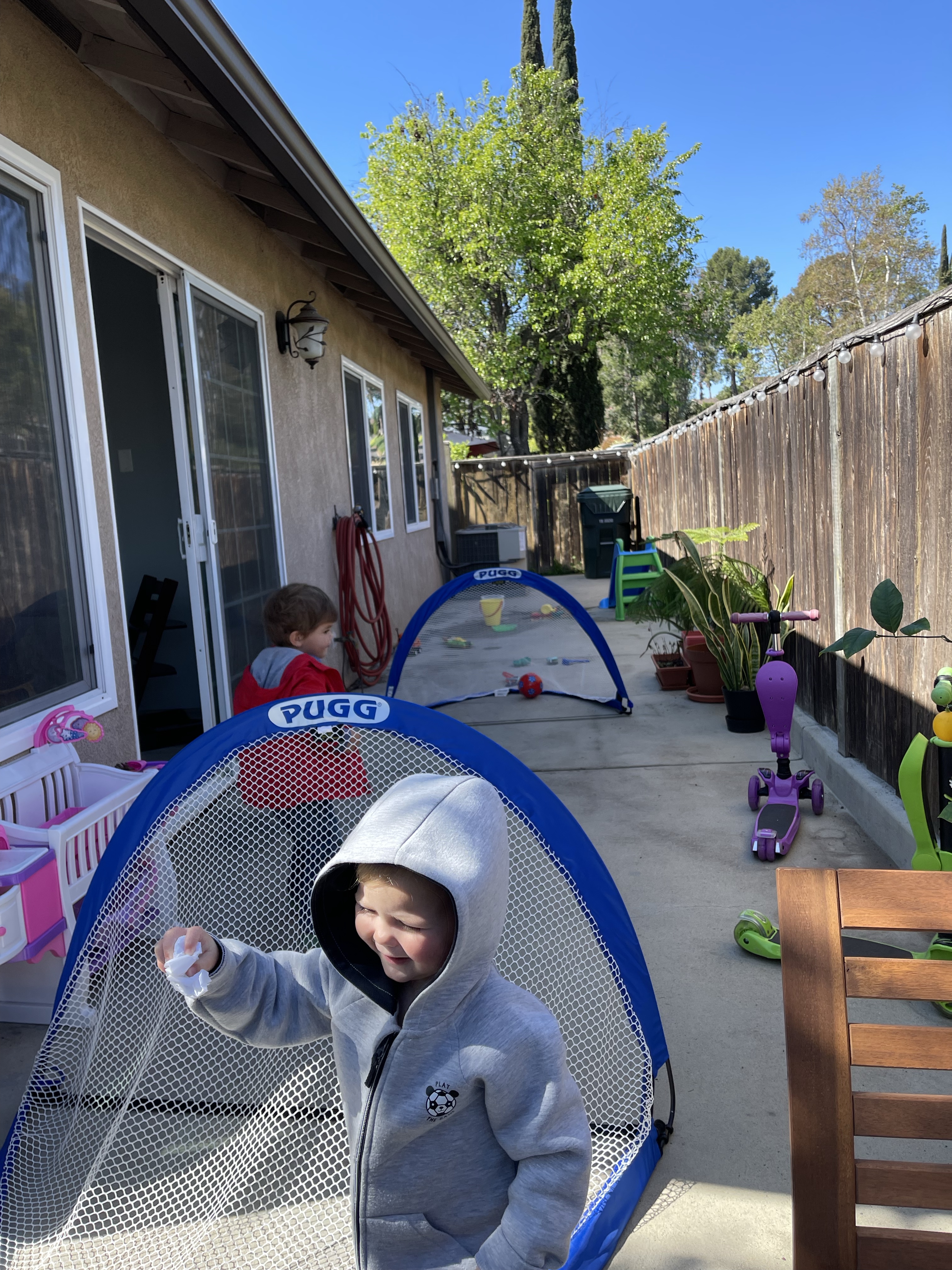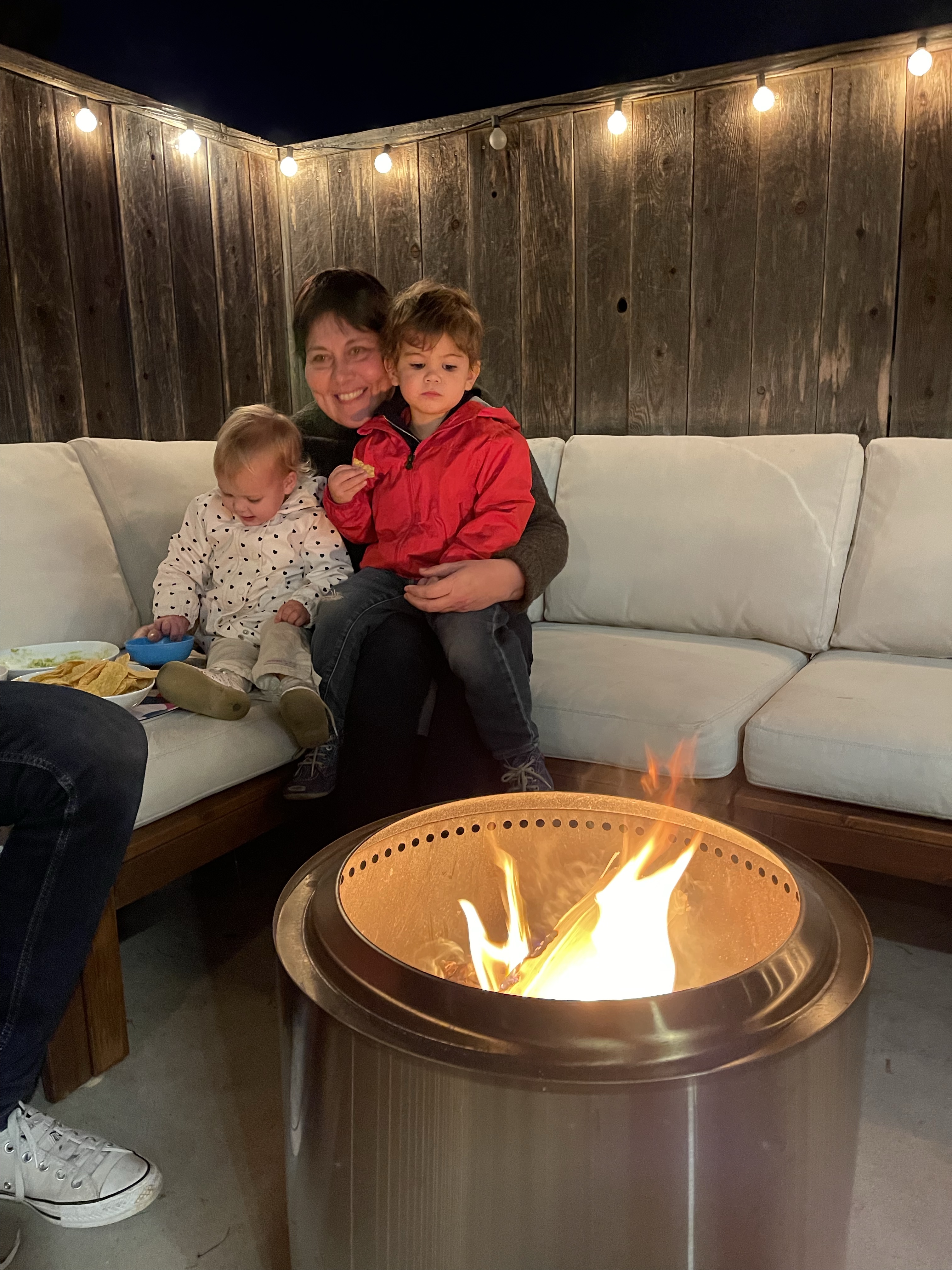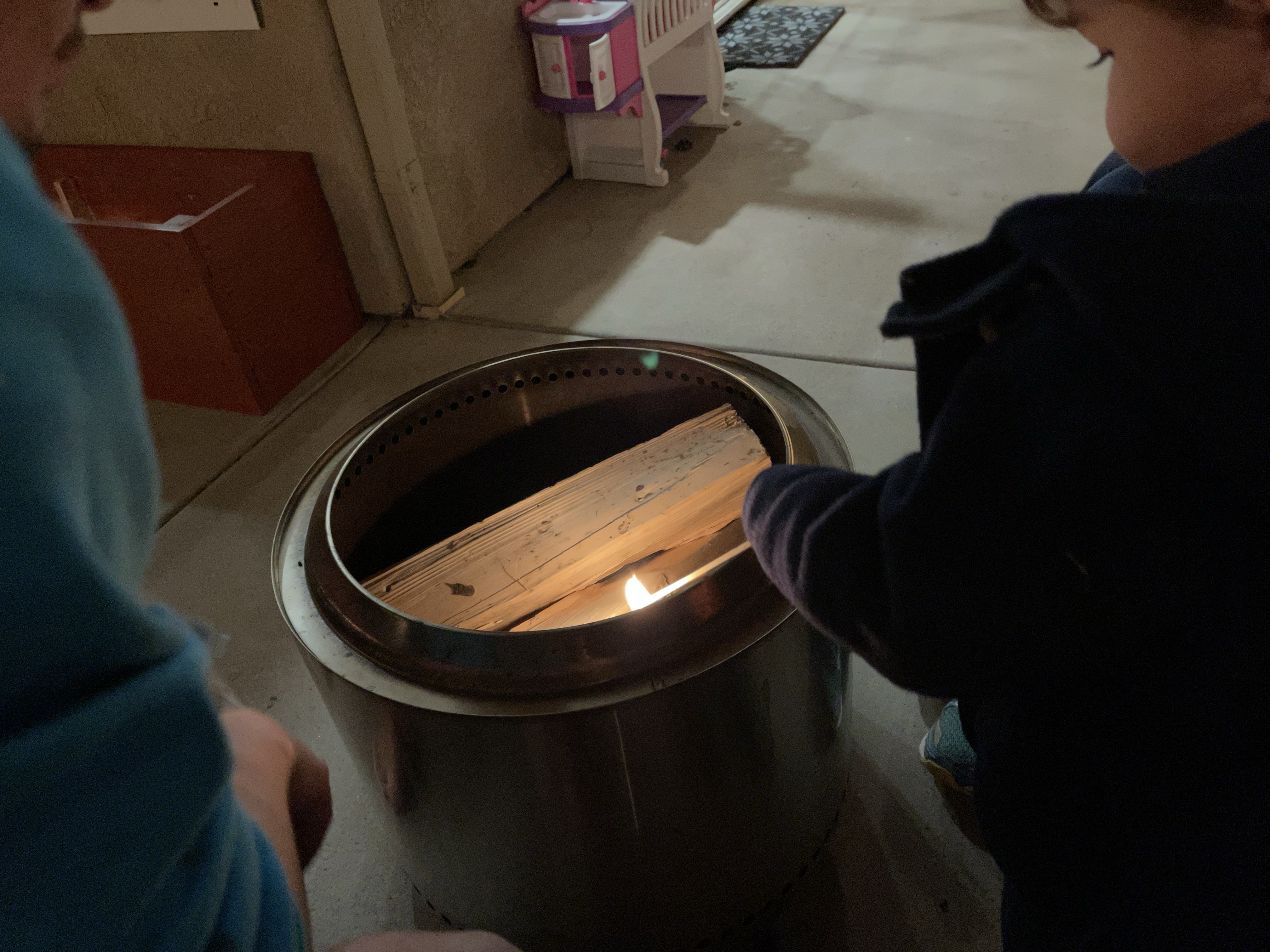 Après la sieste, nous réorganisons la playroom des enfants afin de voir ce que ça donnerait avec la cabane! Les enfants s’en donnent à cœur joie et grimpent partout! Avant de faire un fire pit (un peu en retard!)