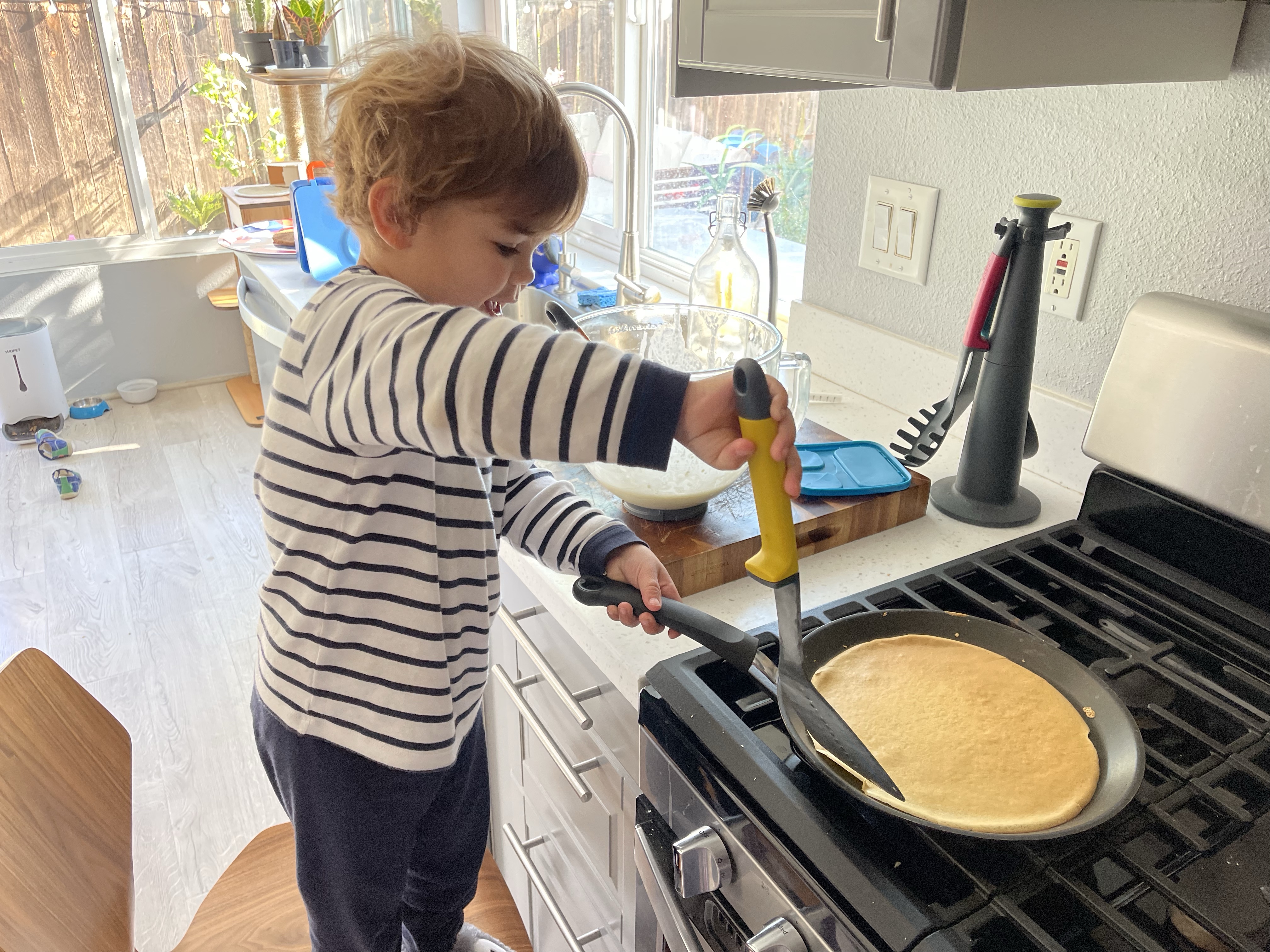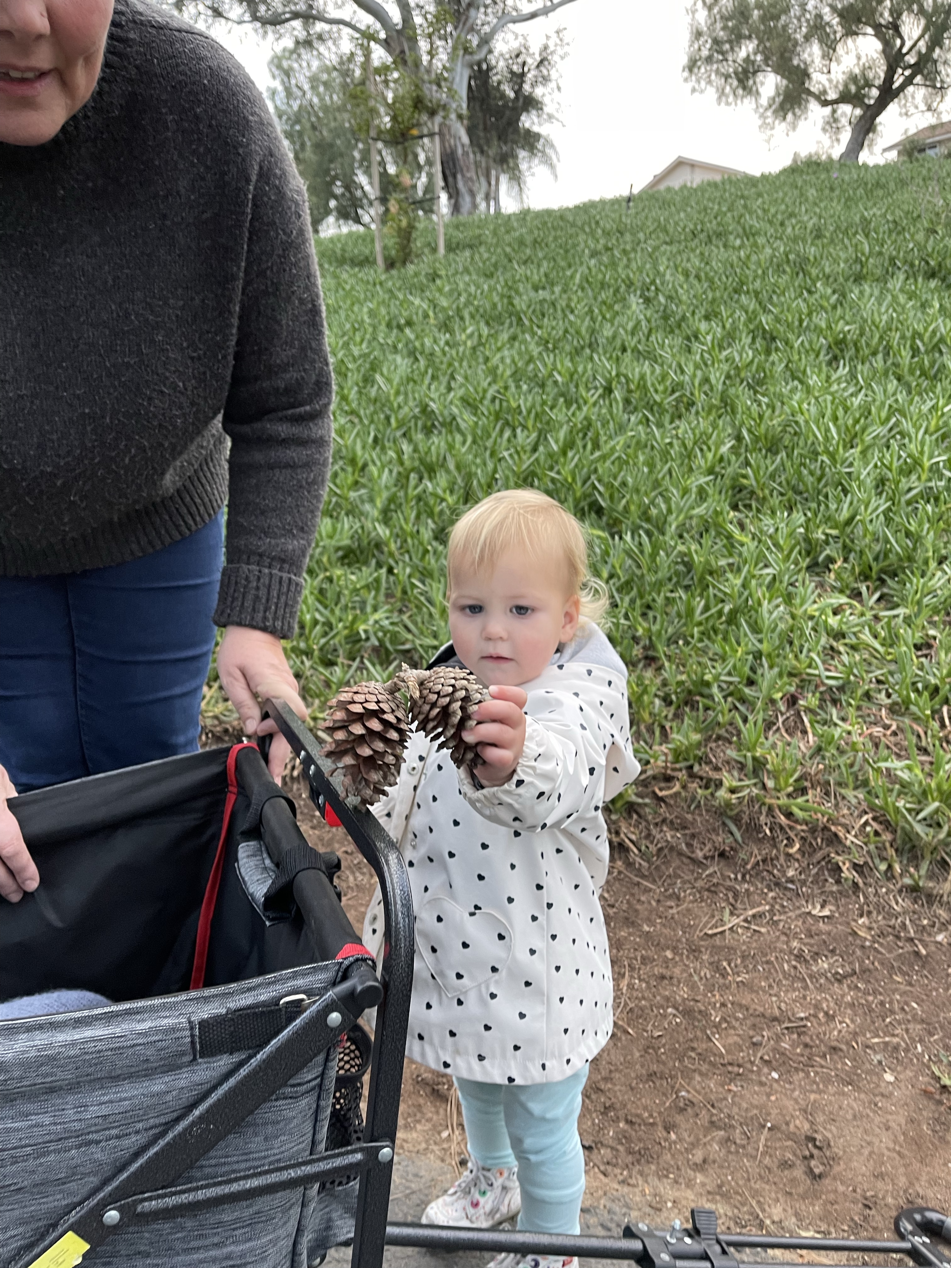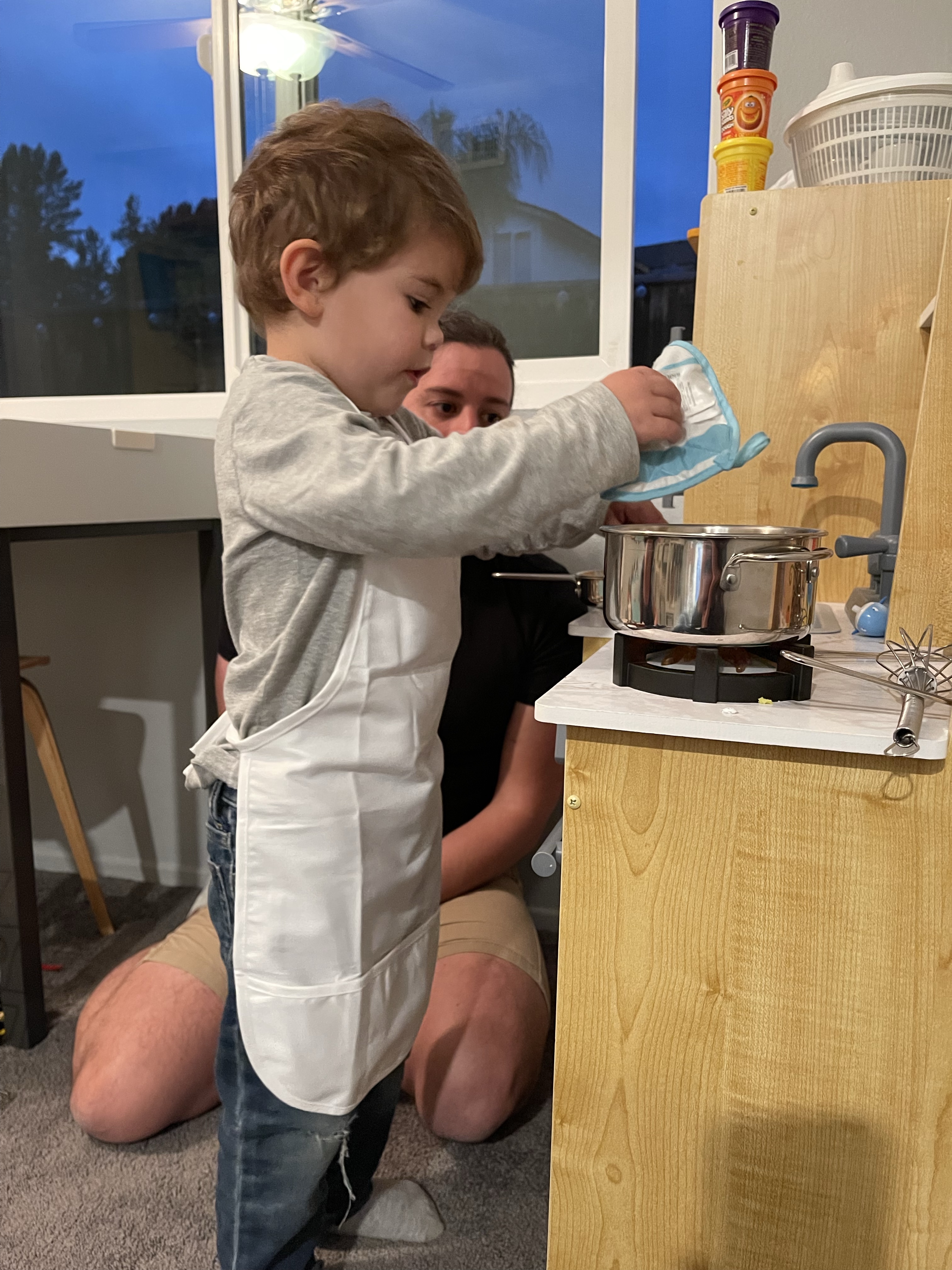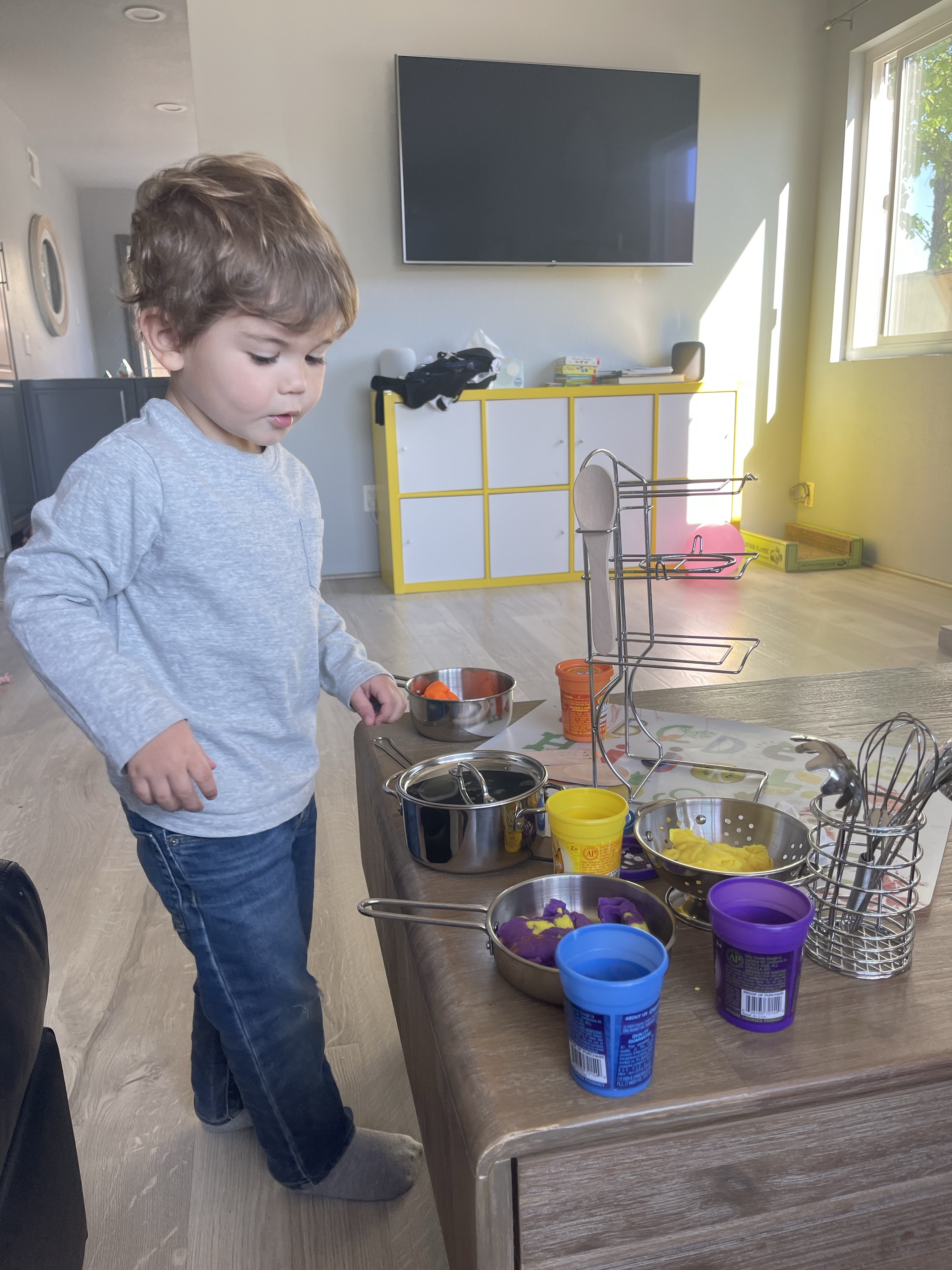 Dimanche rien de bien exceptionnel, nous finissons d’ouvrir les cadeaux le matin et nous jouons avec tous les jeux de Gabriel puis l’après-midi, Gabriel et Guillaume restent jouer à la maison pendant que nous allons nous promener et ramasser des pommes de pins sur les hiking trails entre filles. Chef Gabriel et chef Guillaume nous préparent des gnocchis en pâte à modeler avec des saucisses!