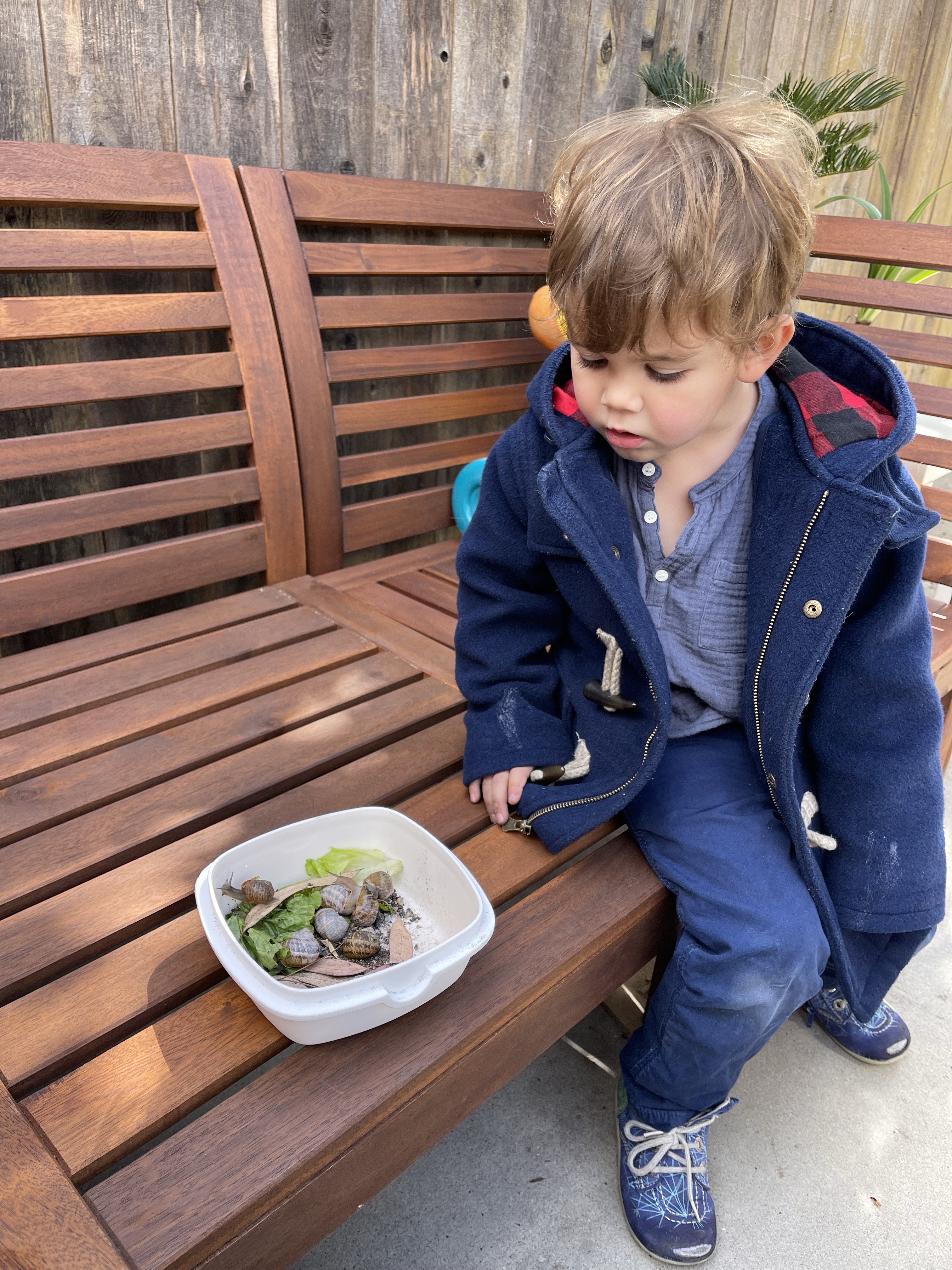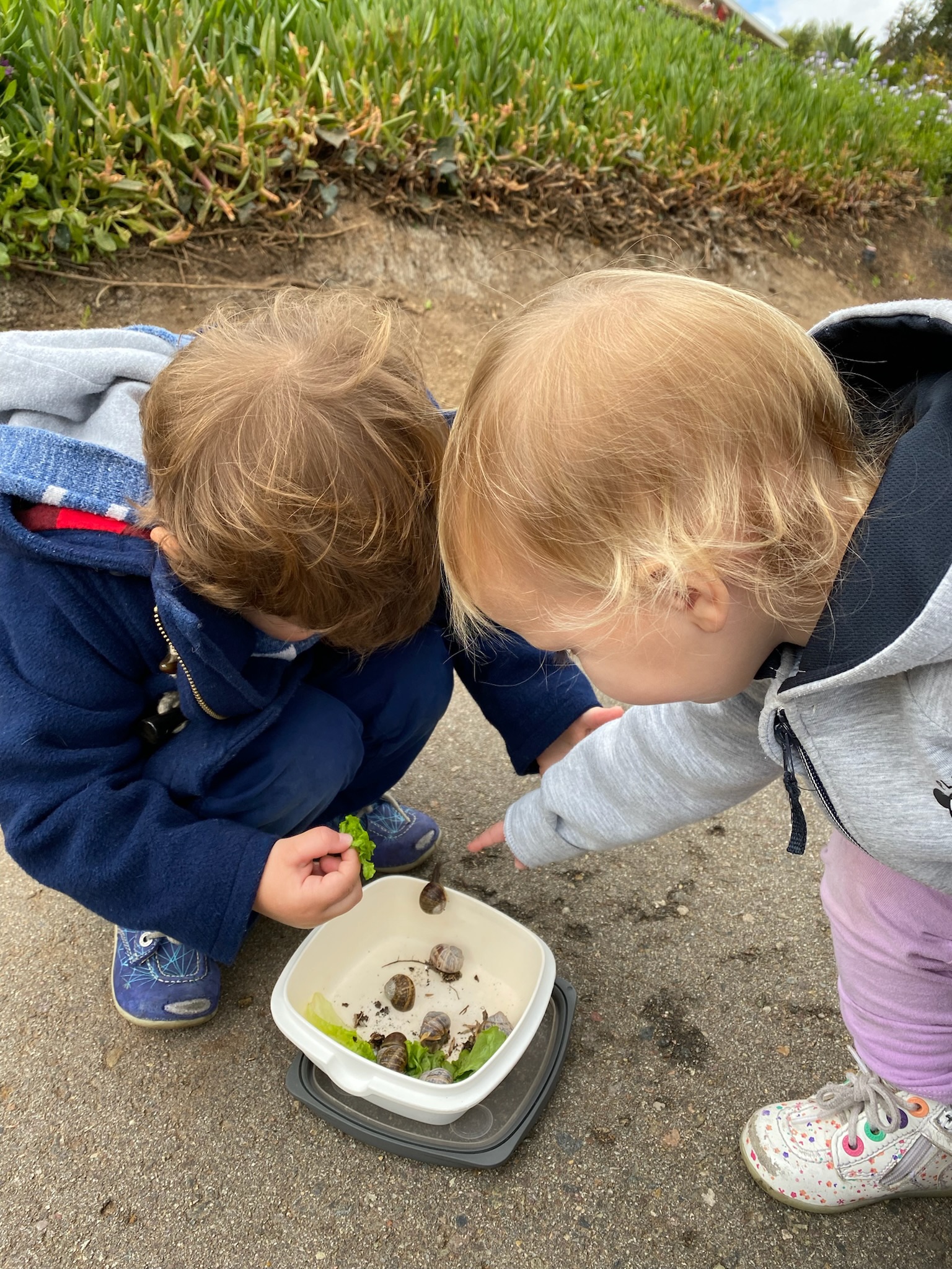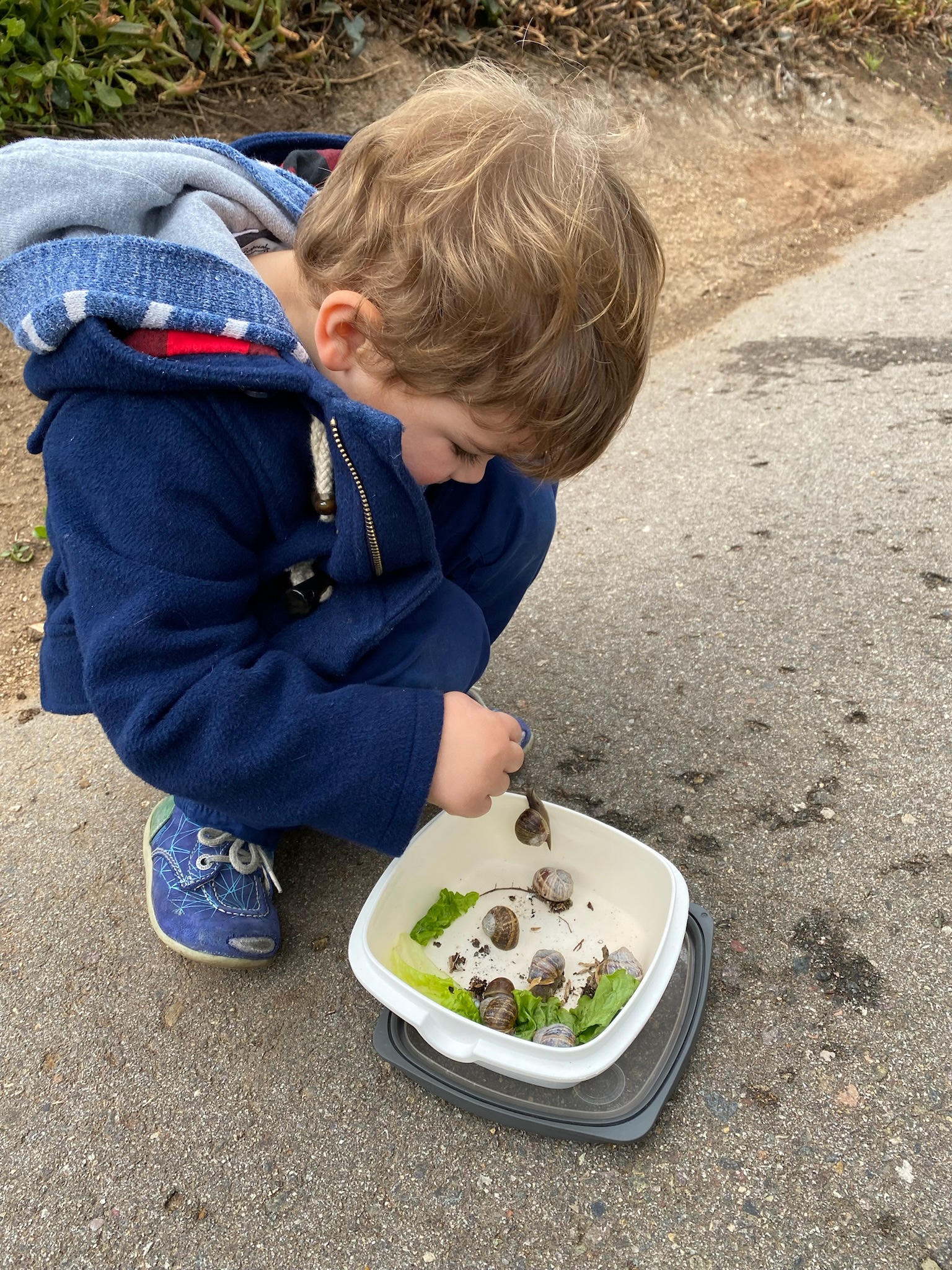 Mardi premier jour de vacances pour tous! Le matin Guillaume et moi nous rangeons et nettoyons pendant qu’Isabelle emmène les enfants chercher des escargots!