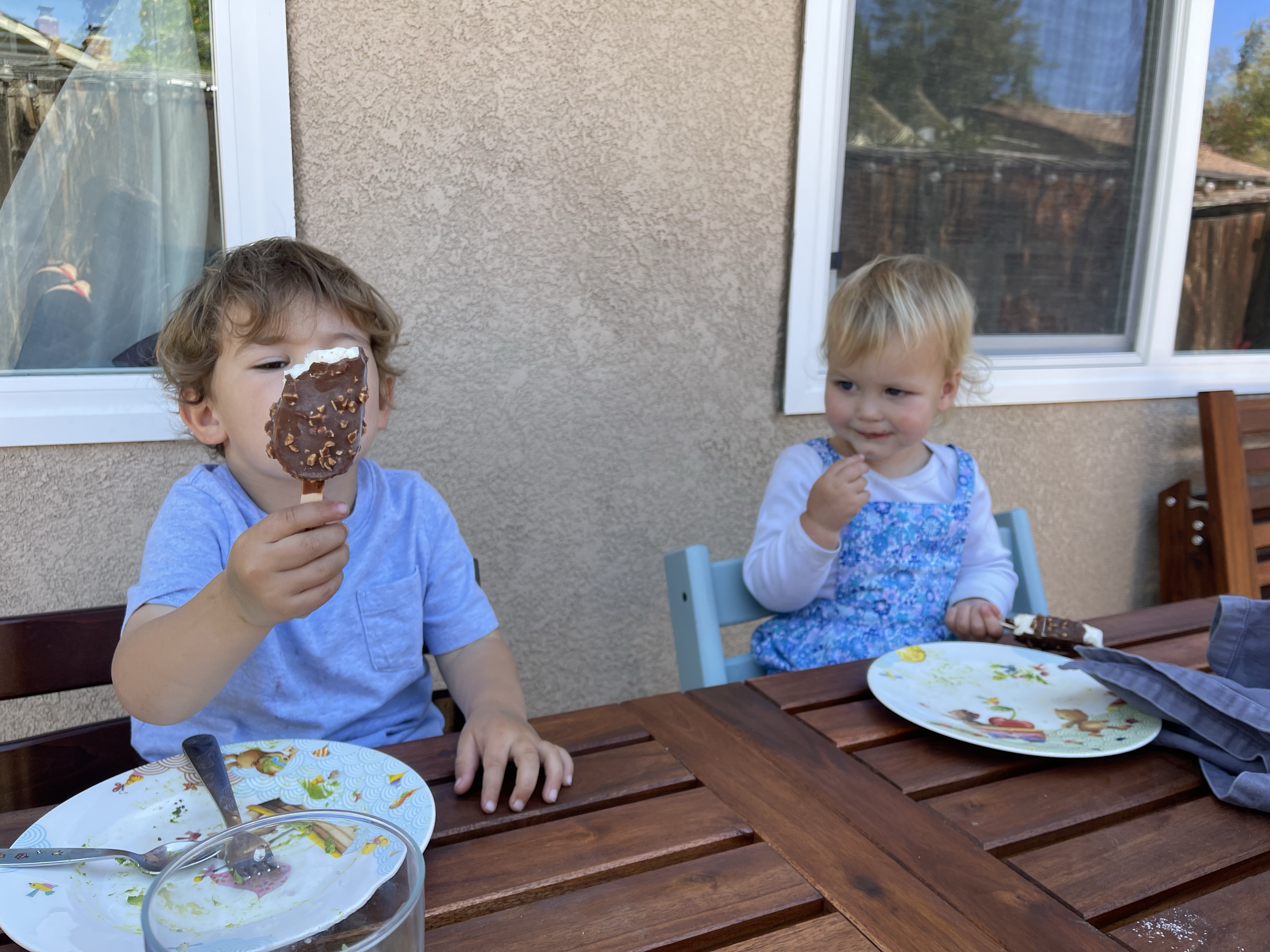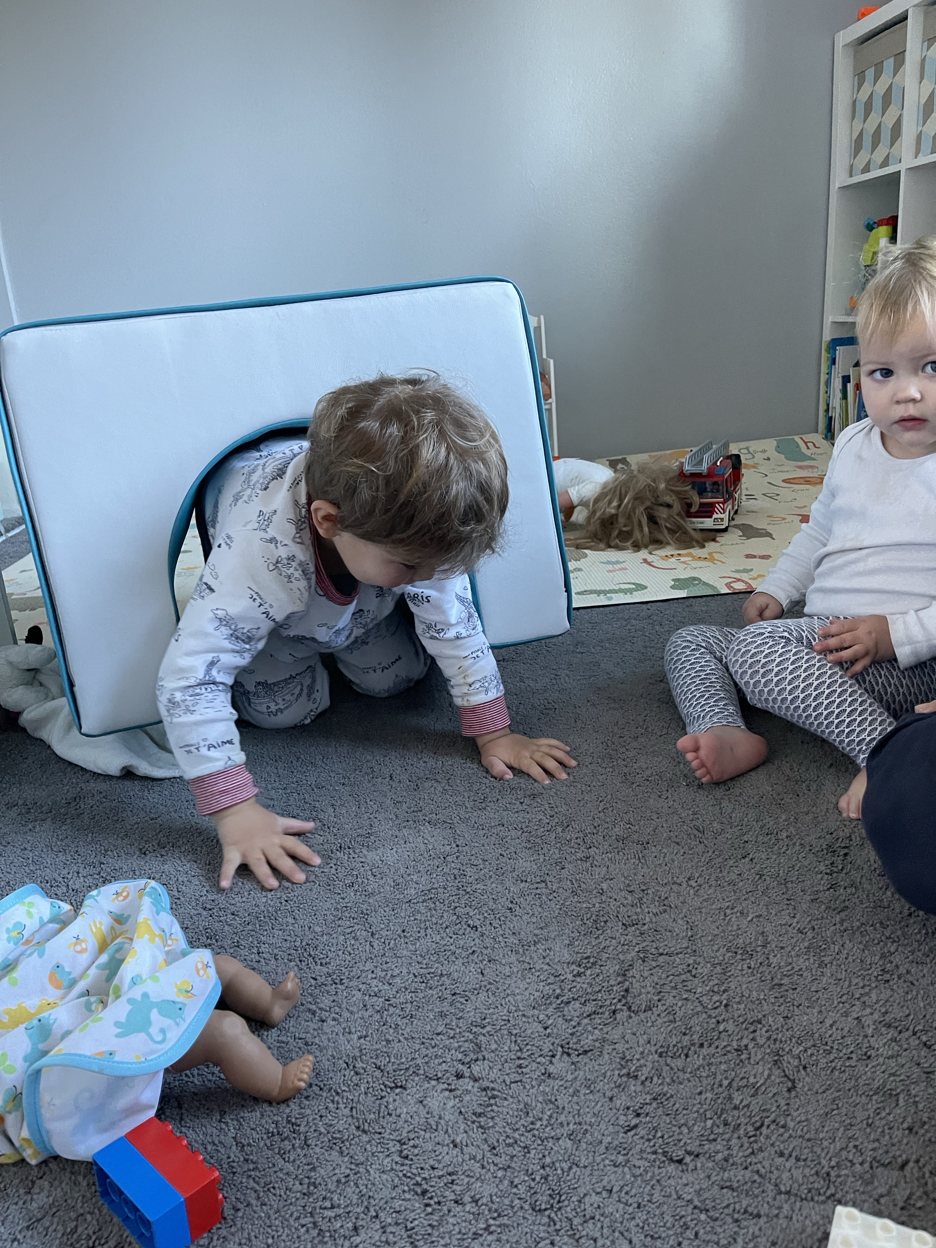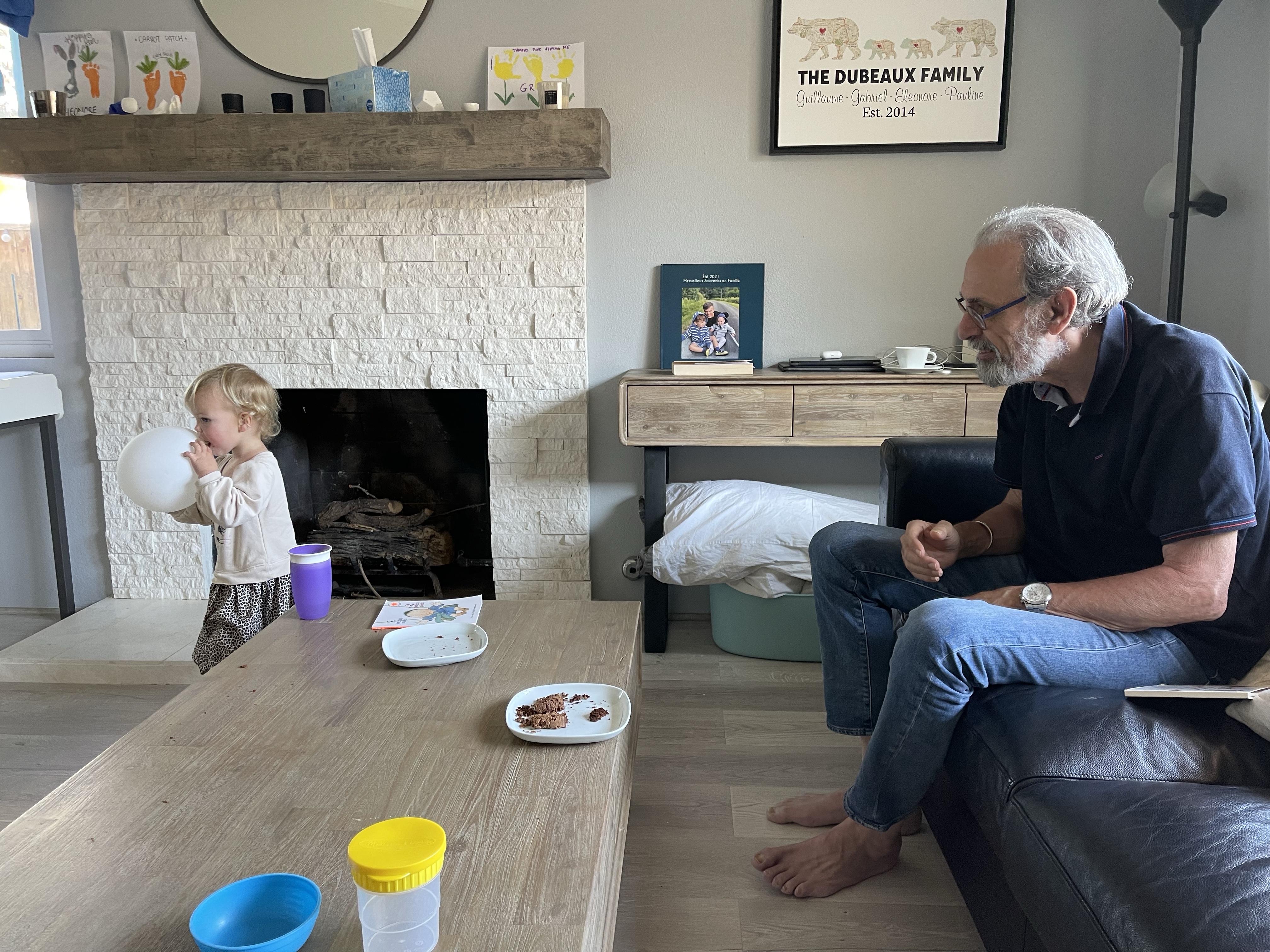 Comme à leur habitude, les enfants courent de partout (enfin Gabriel, car Eleonore est un peu éteinte depuis quelques jours et passe la plus grande partie de son temps dans les bras)