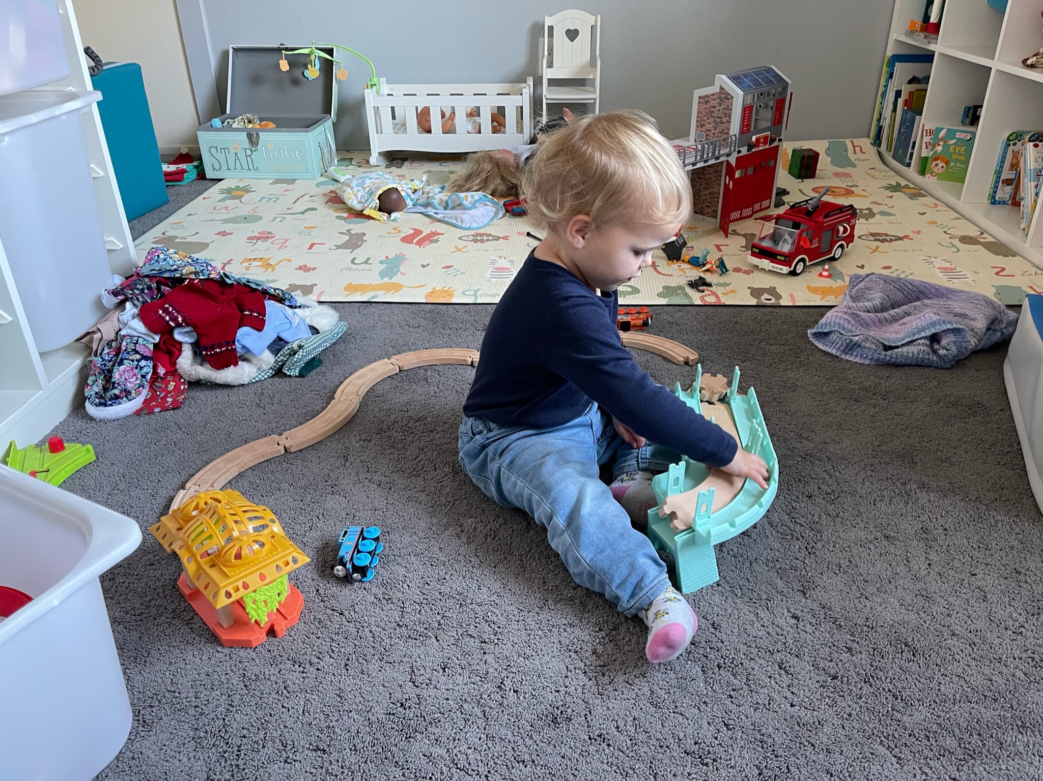 Jeudi rime avec jeu et construction des bacs! Je garde Eleonore au chaud dans la maison parce qu’elle tousse encore beaucoup!