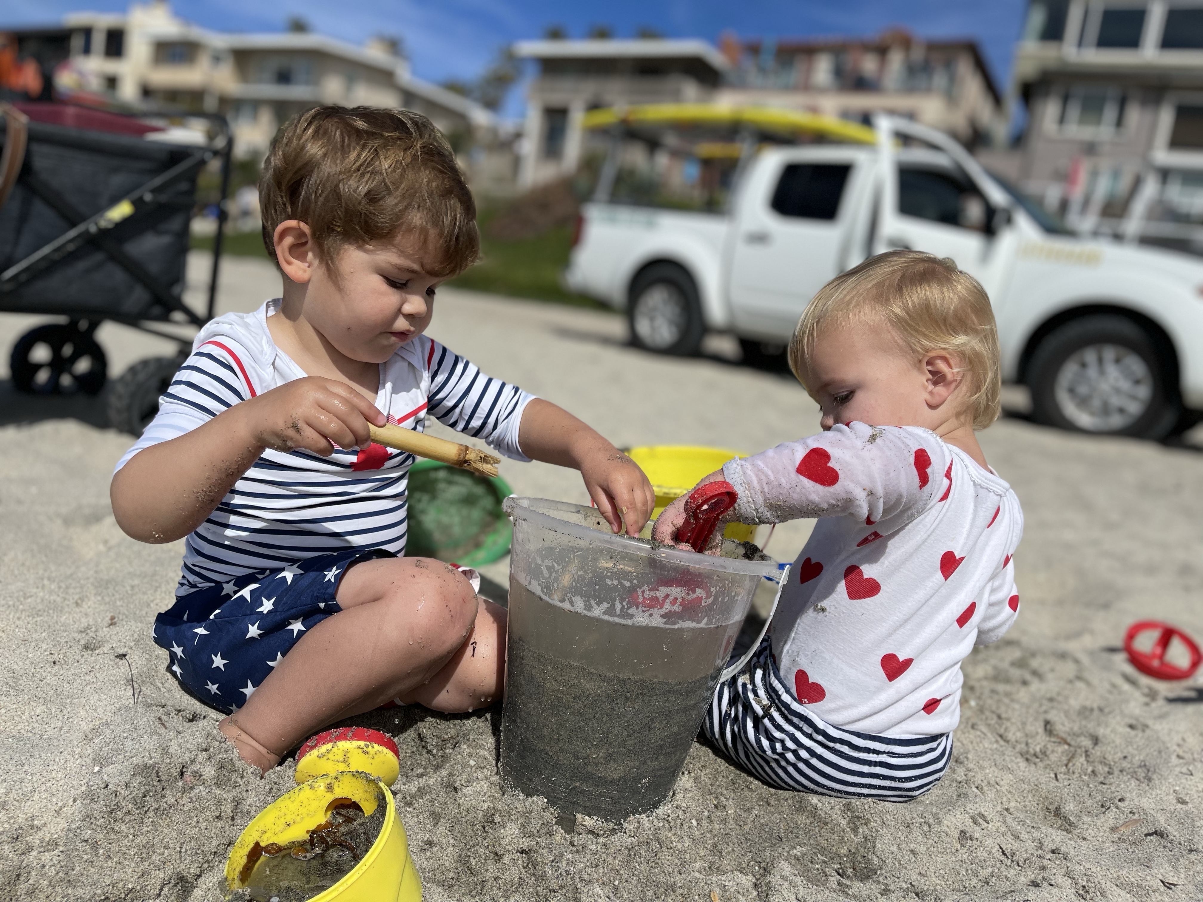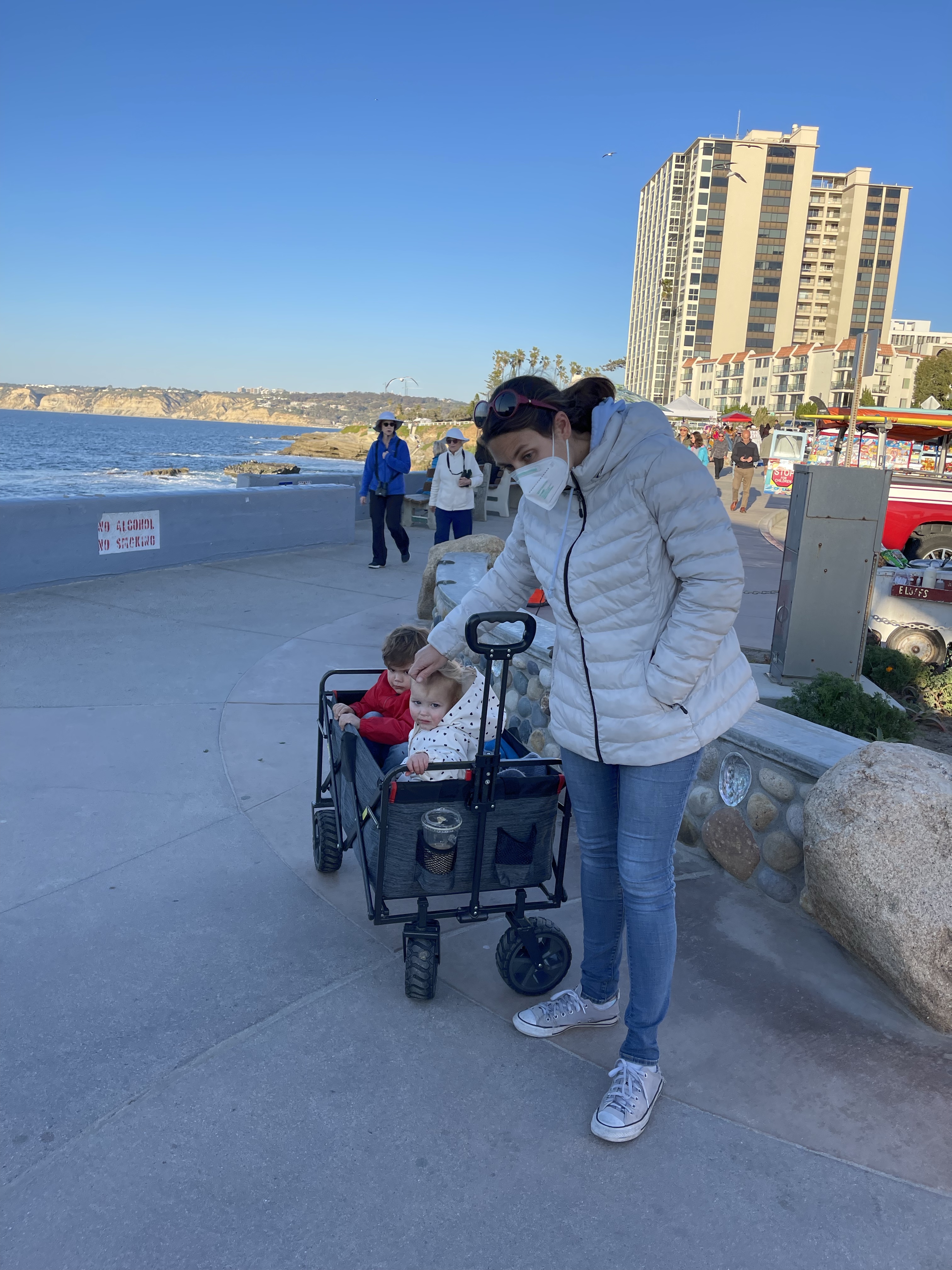 Puis petite promenade à Pacific beach avant de se tremper à Mission Beach avec papi et mamie, malgré le fait que nous n’ayons pas les maillots de bain!
