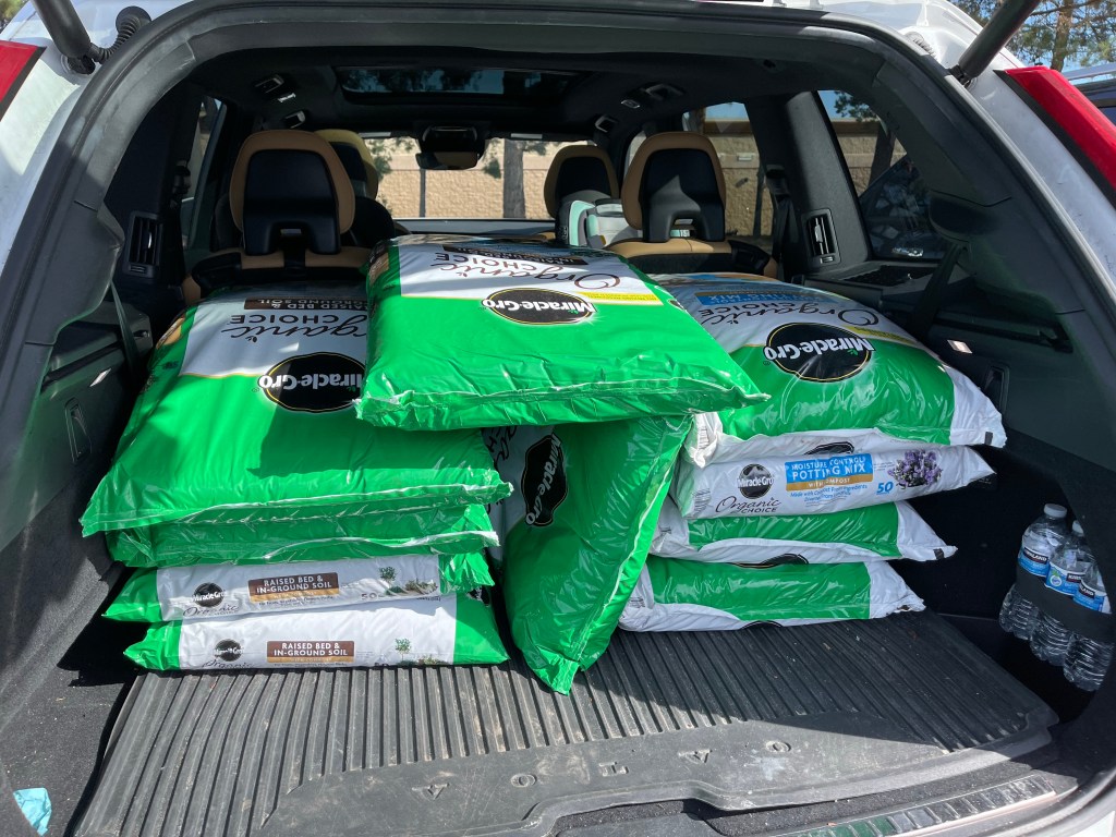L’après-midi je dévalise la terre à Costco afin de pouvoir remplir nos jardinières! (En plus des courses régulières, la voiture est pleine!)
