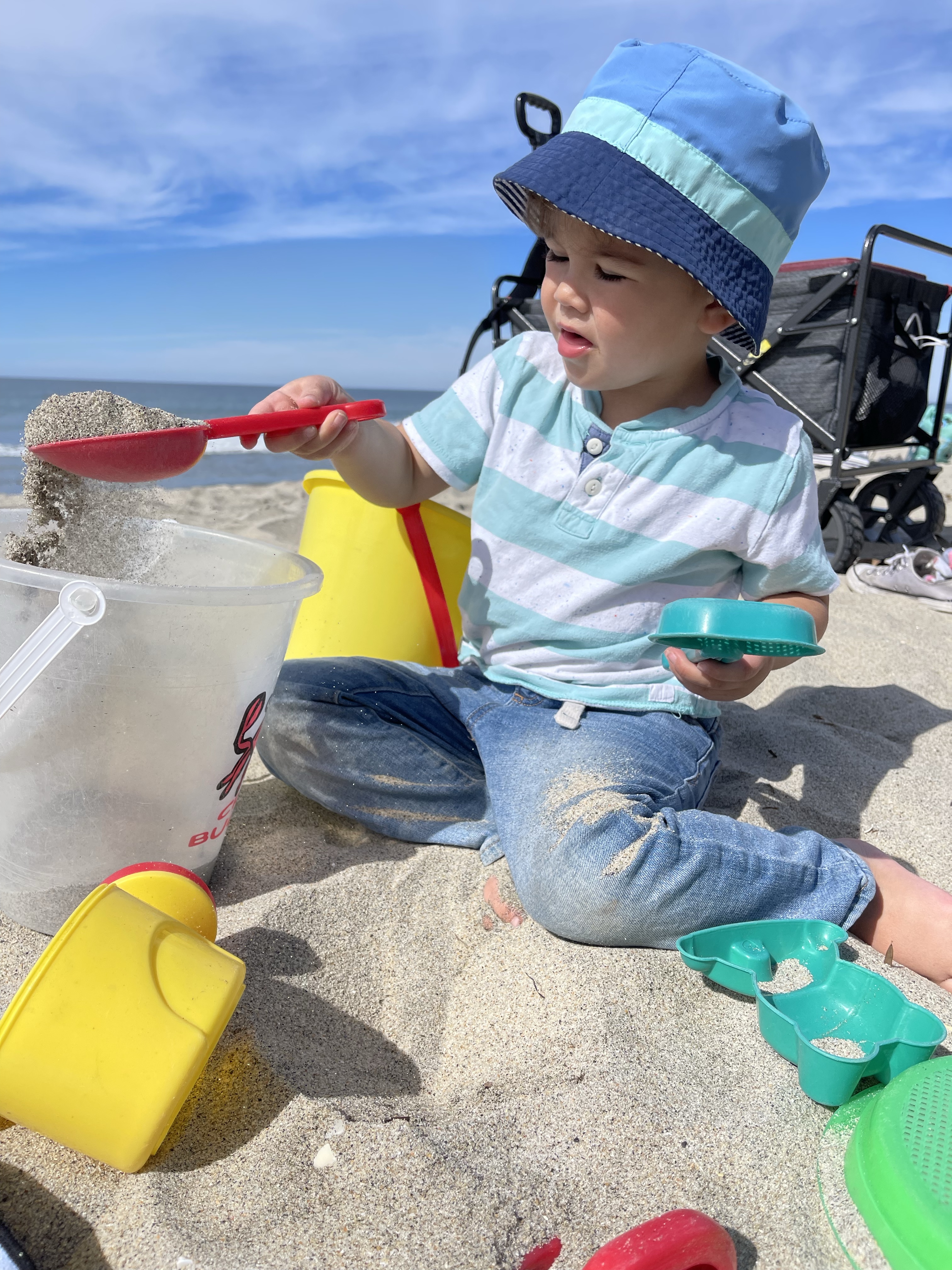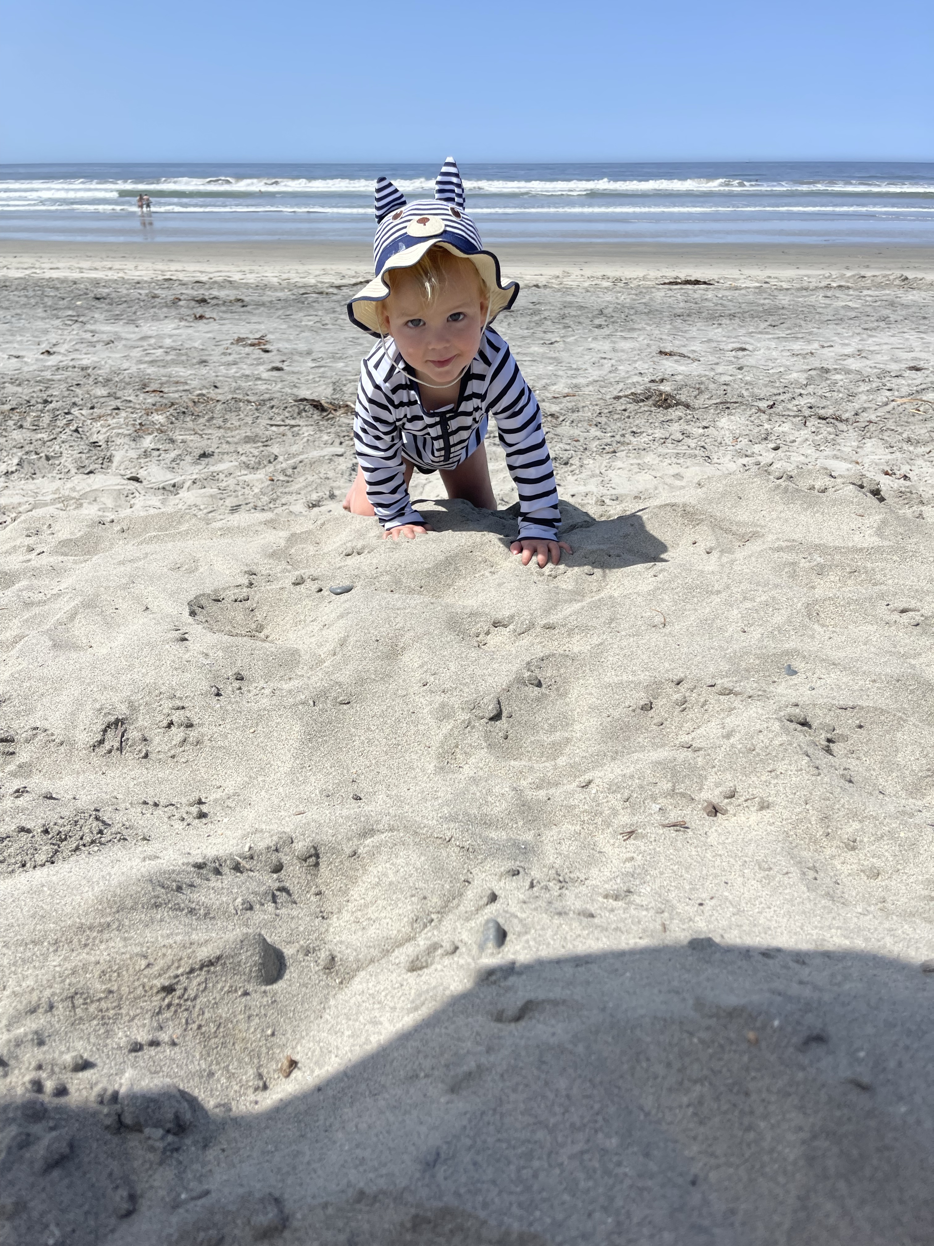 Malheureusement nous sommes obligés de couper court à cette journée sur la plage car Eleonore été fait que de manger de grosses poignées de sable… pas très bon pour la digestion! Nous rentrons donc tous énervés à la maison!