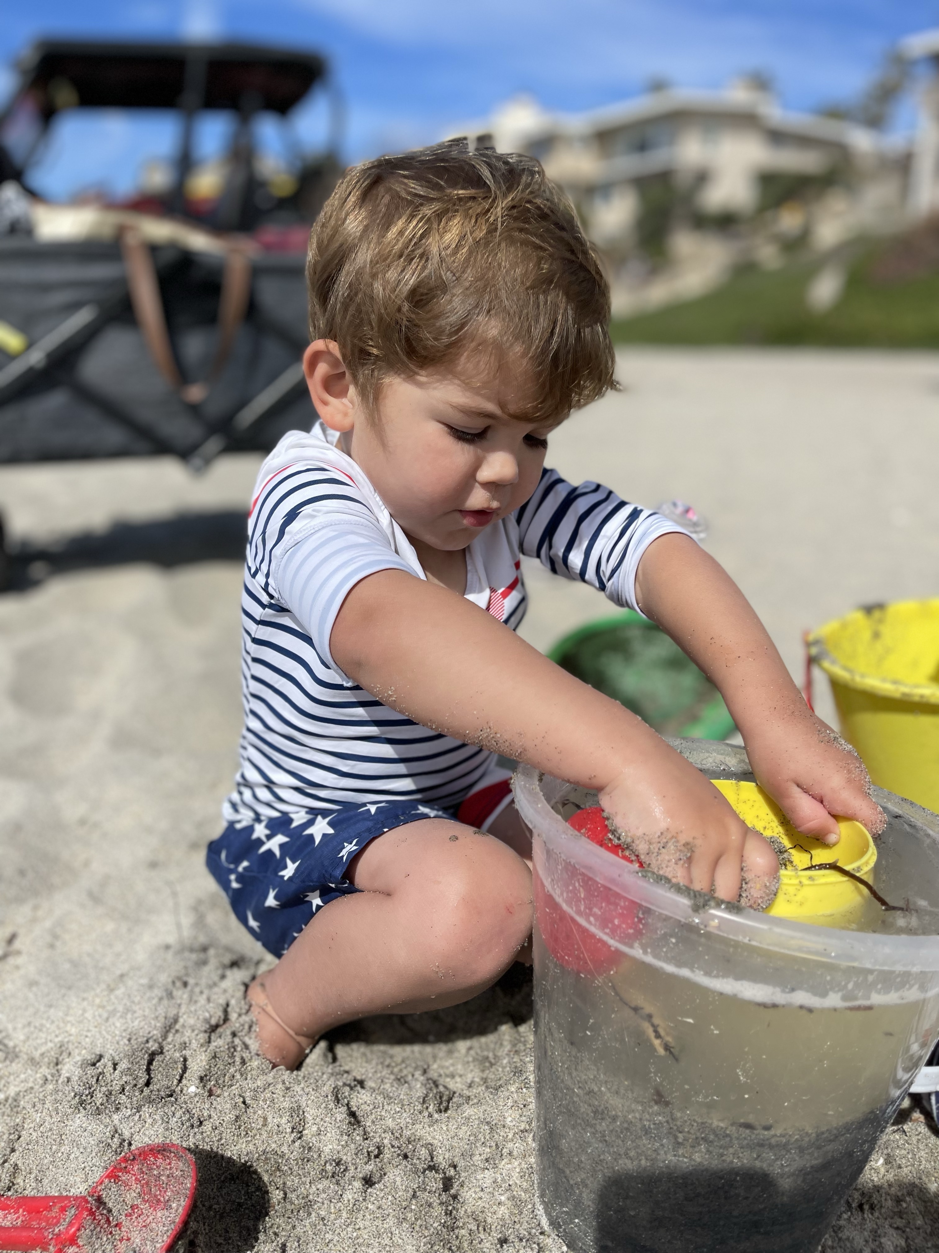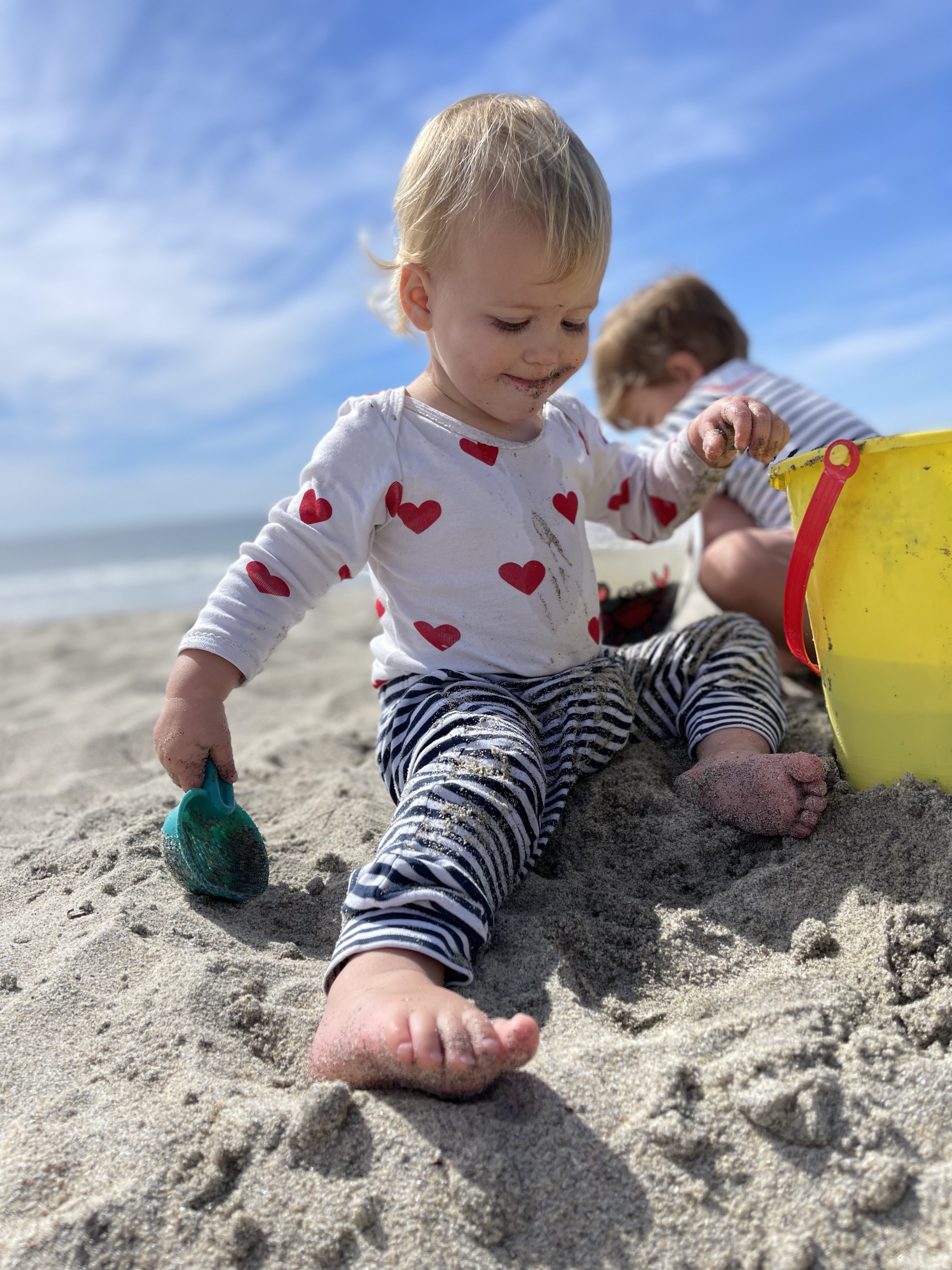 Les enfants se baignent quand même avec Margot et Anthony. Anthony, qui emmène Eleonore se laver les mains parce qu’elle avait du sable, se fait piéger facilement. Dès que la demoiselle a les mains propres, elle les remet dans le sable et le regarde avec son sourire d’ange et en disant « laver les mains… ». Il lui faut 3 tentatives avant d’apprendre sa leçon!