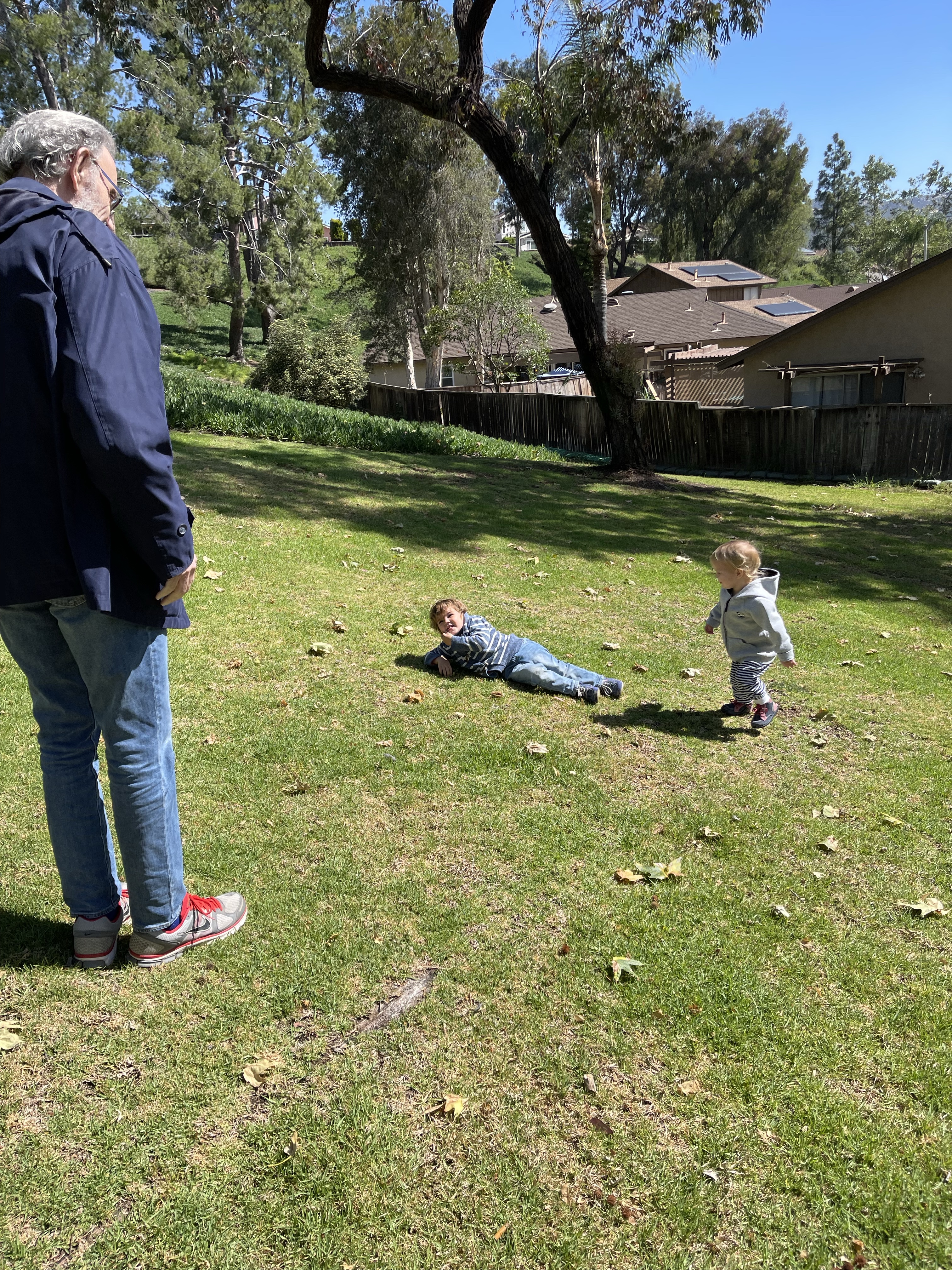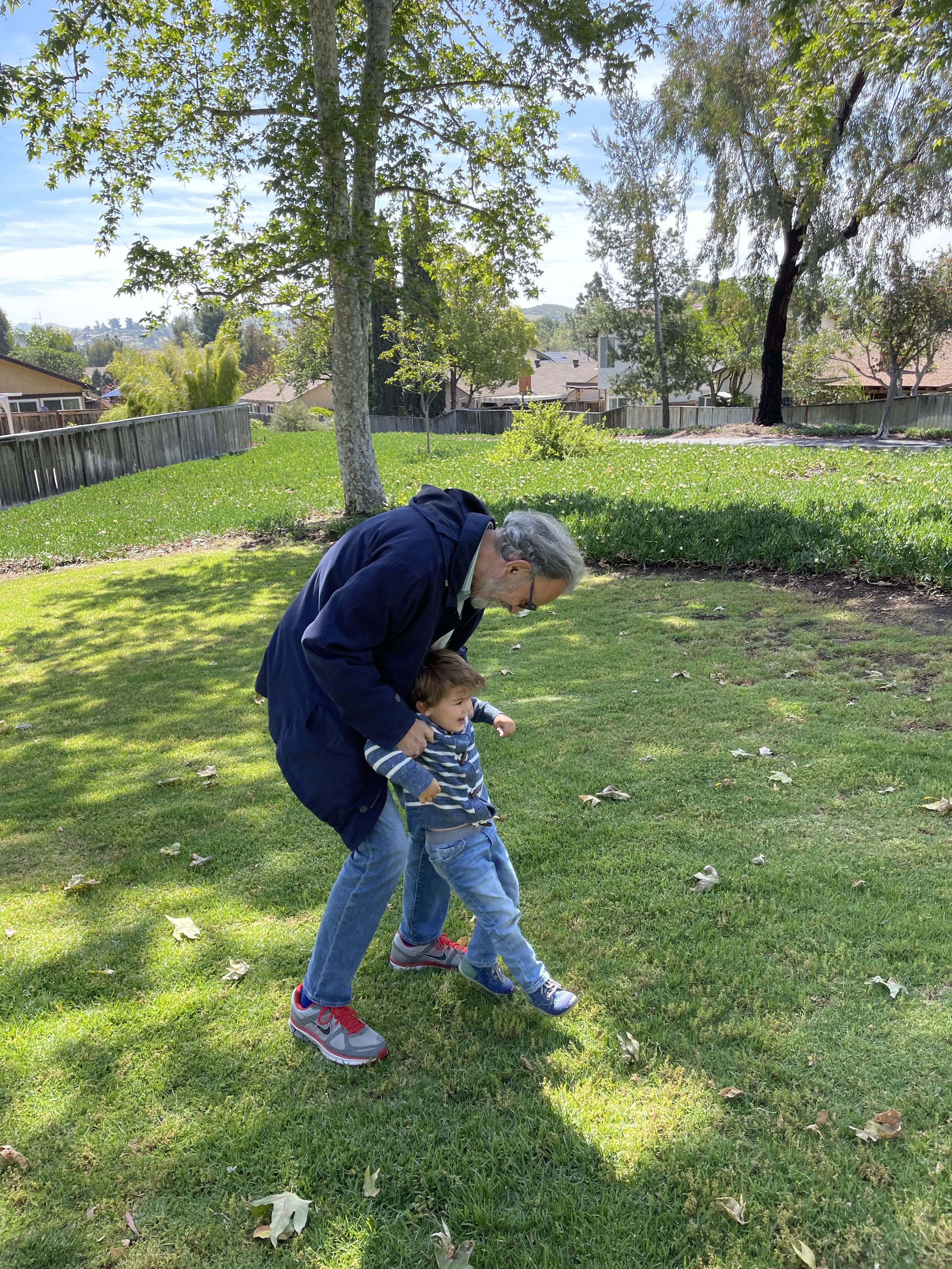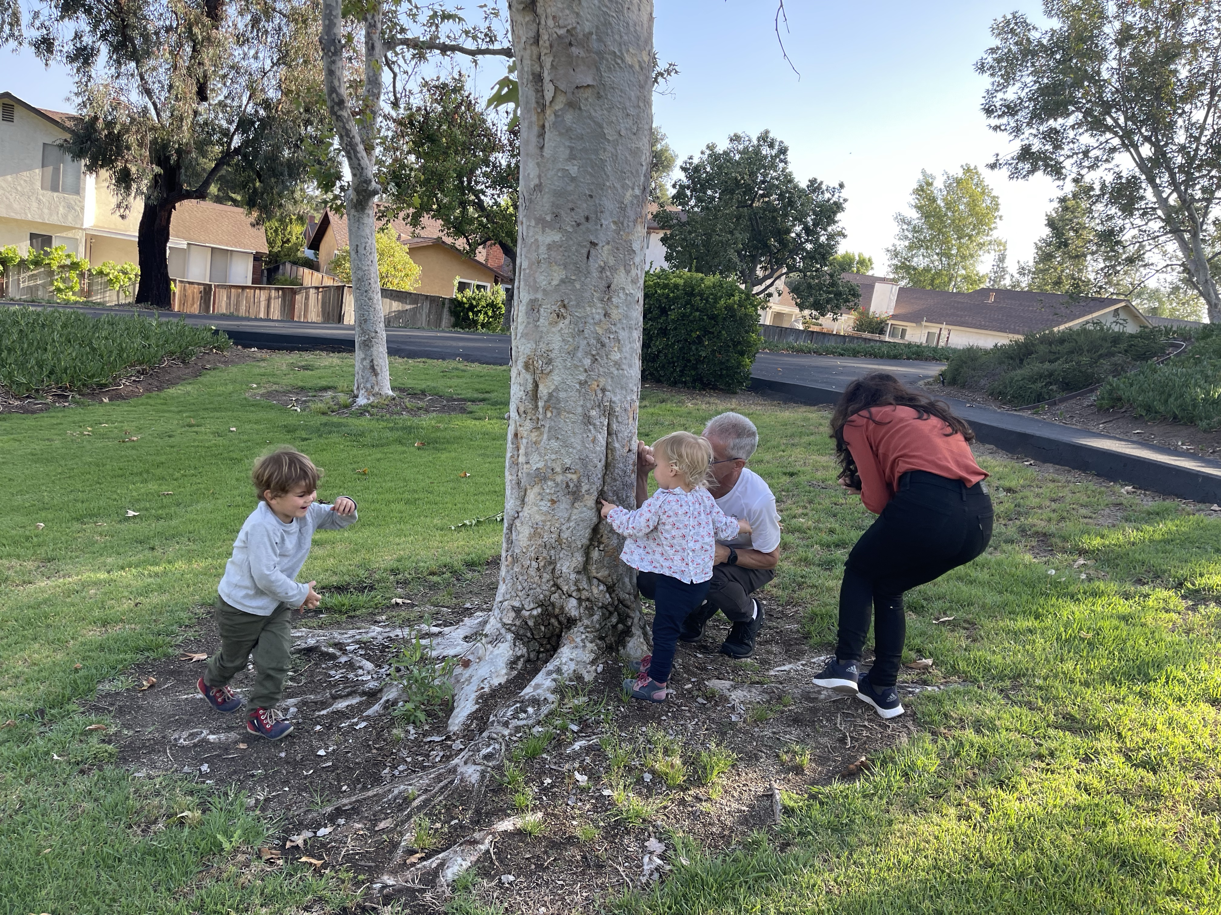Puis nous partons en expédition sur le hiking trails! Gabriel fait courir papi! « Attrape moi papi »