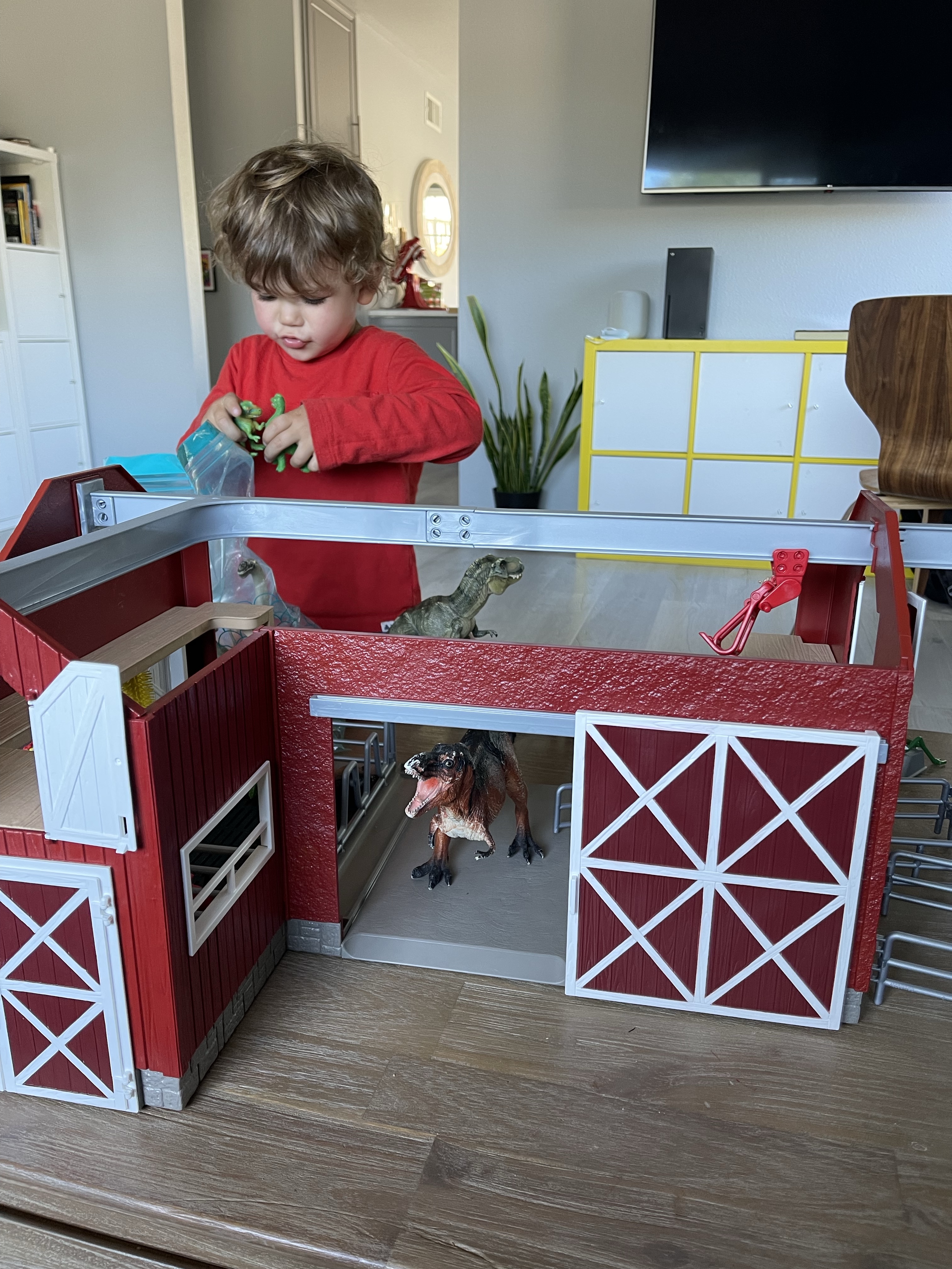 Puis l’après-midi les dinosaures envahissent la ferme et les enfants sont gâtés par papi et mamie Liang par procuration!