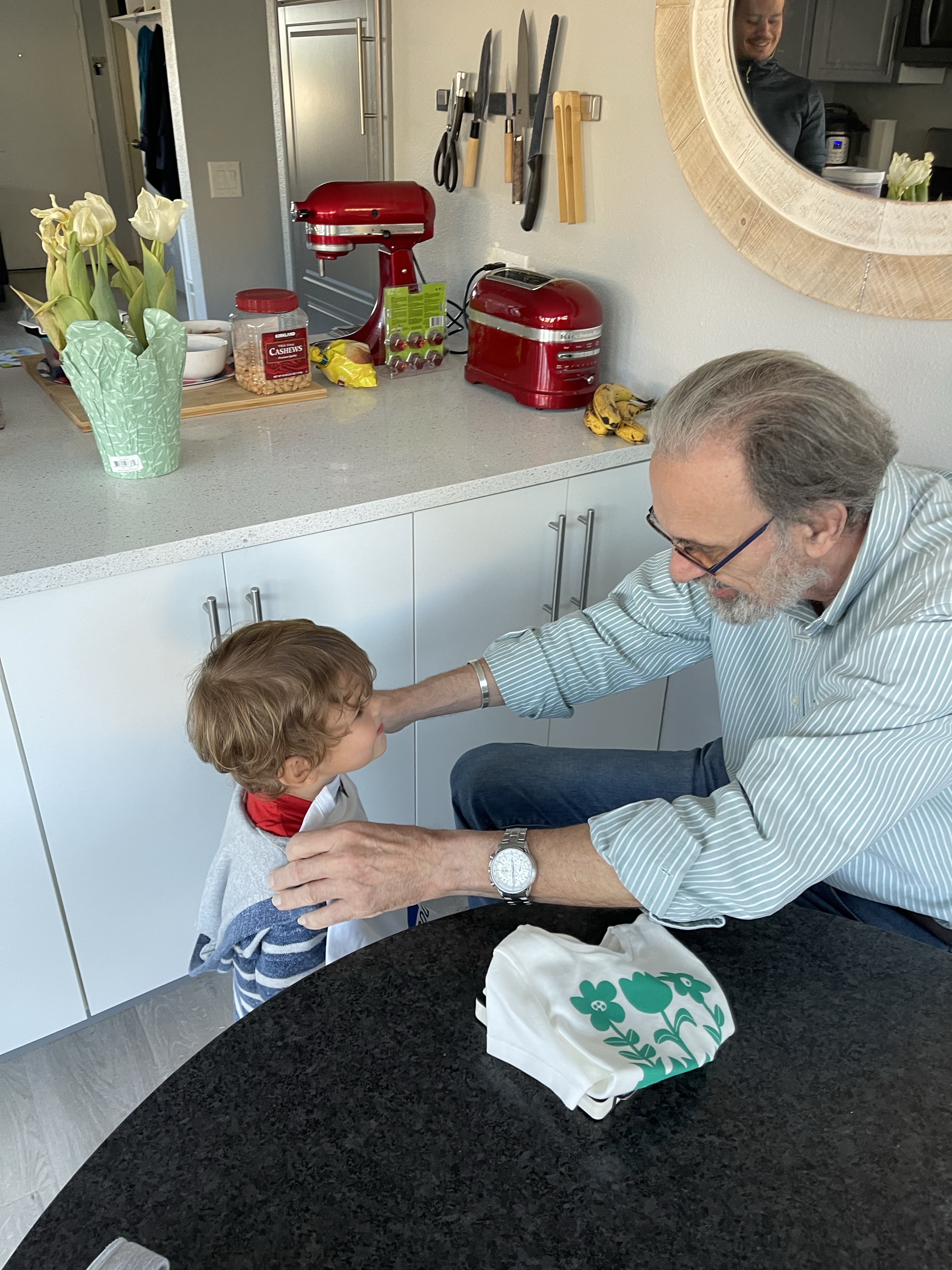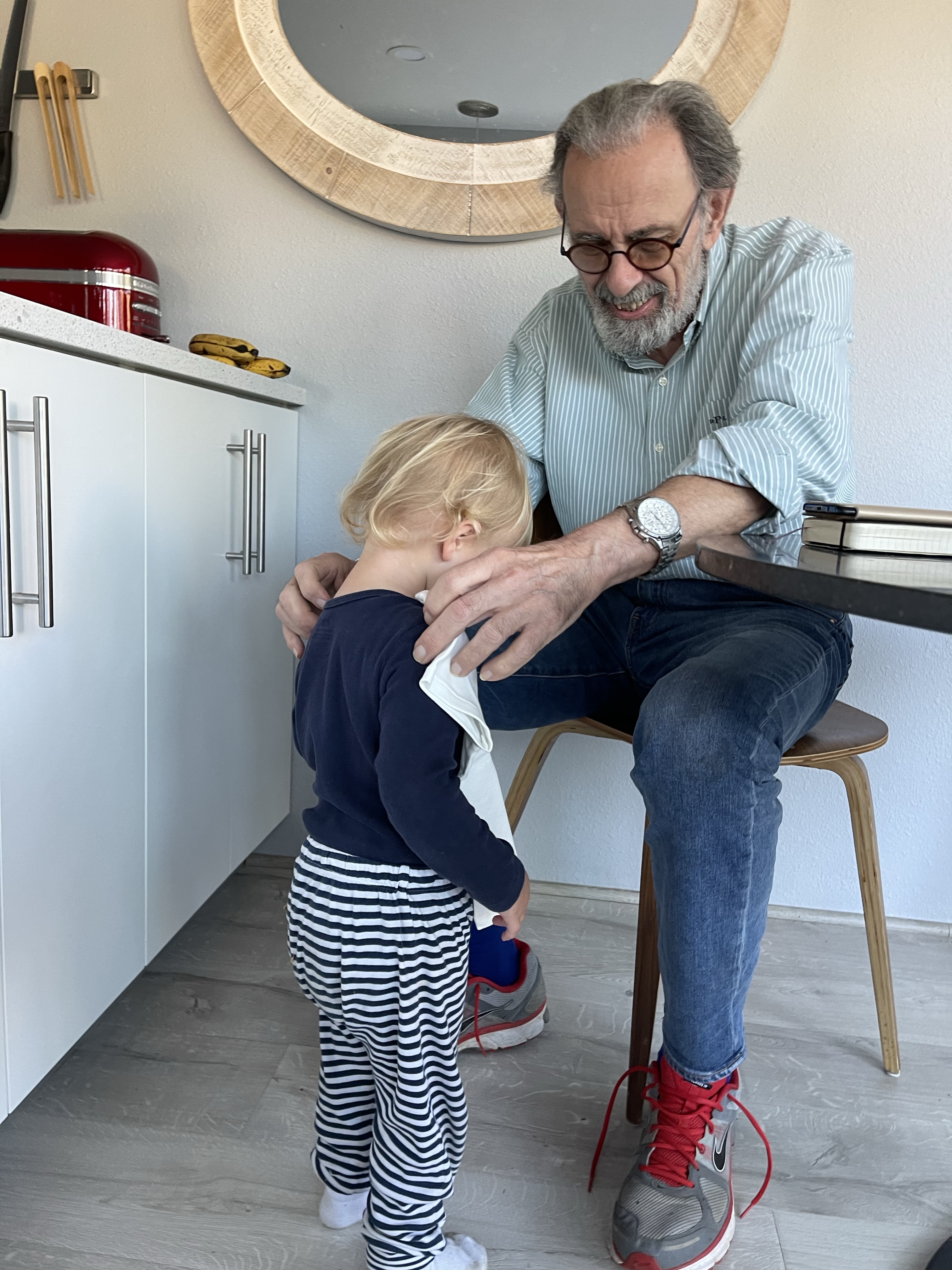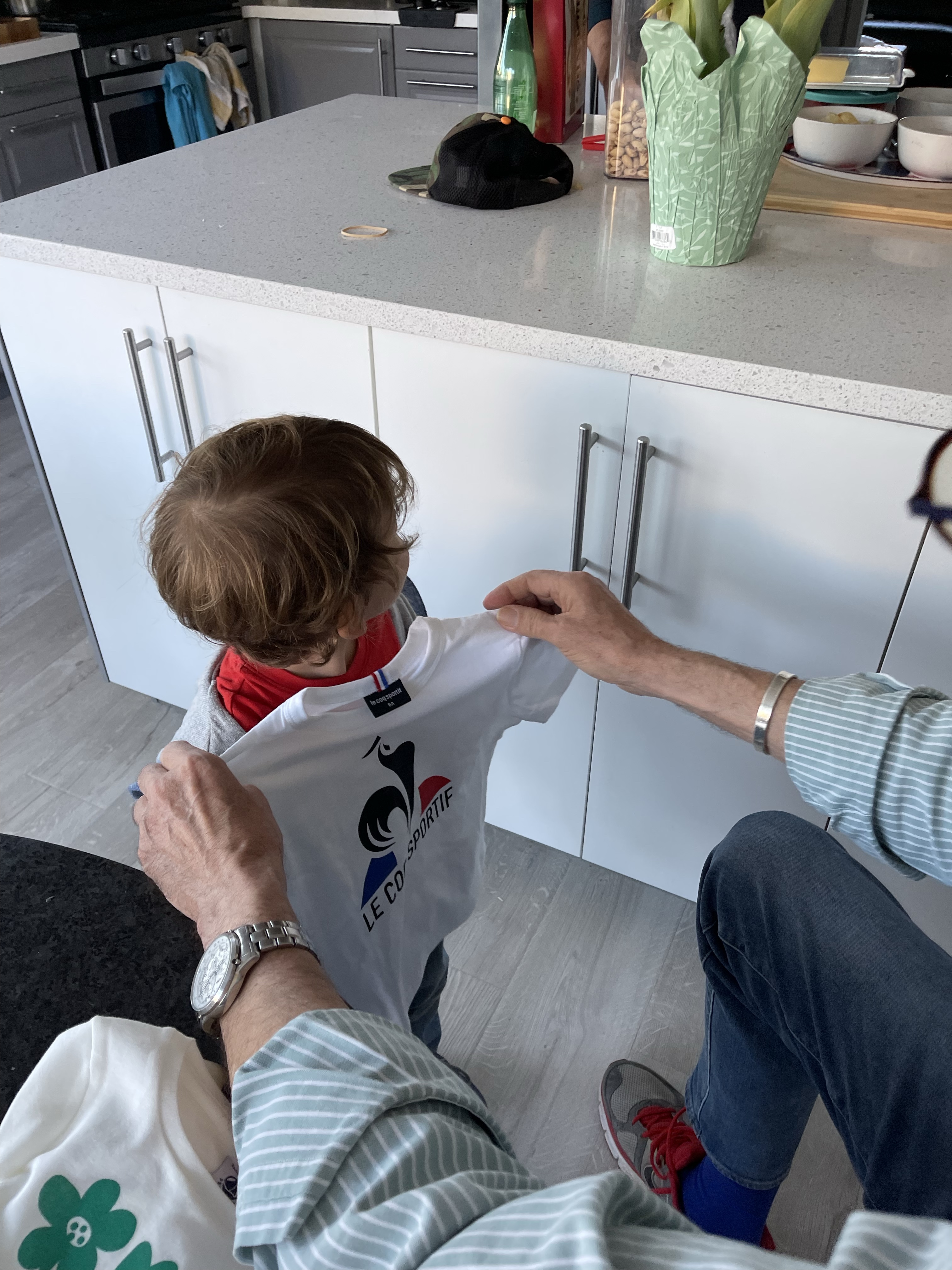 Petite anecdote? Bien évidemment Gabriel nous a emmené à la boutique Le Creuset. Papi est dans tous ses états de voir Gabriel toucher à tout. Moi confiante je le laisse faire. Jusqu’à ce que j’entende un gling gling cassé. Je regarde Gabriel l’air outrée jusqu’à ce que papi avoue penaud que c’était lui qui avait fait tomber le couvercle du pot de miel… bien évidemment nous sommes sortis l’air de rien de la boutique! Bêtise papi!