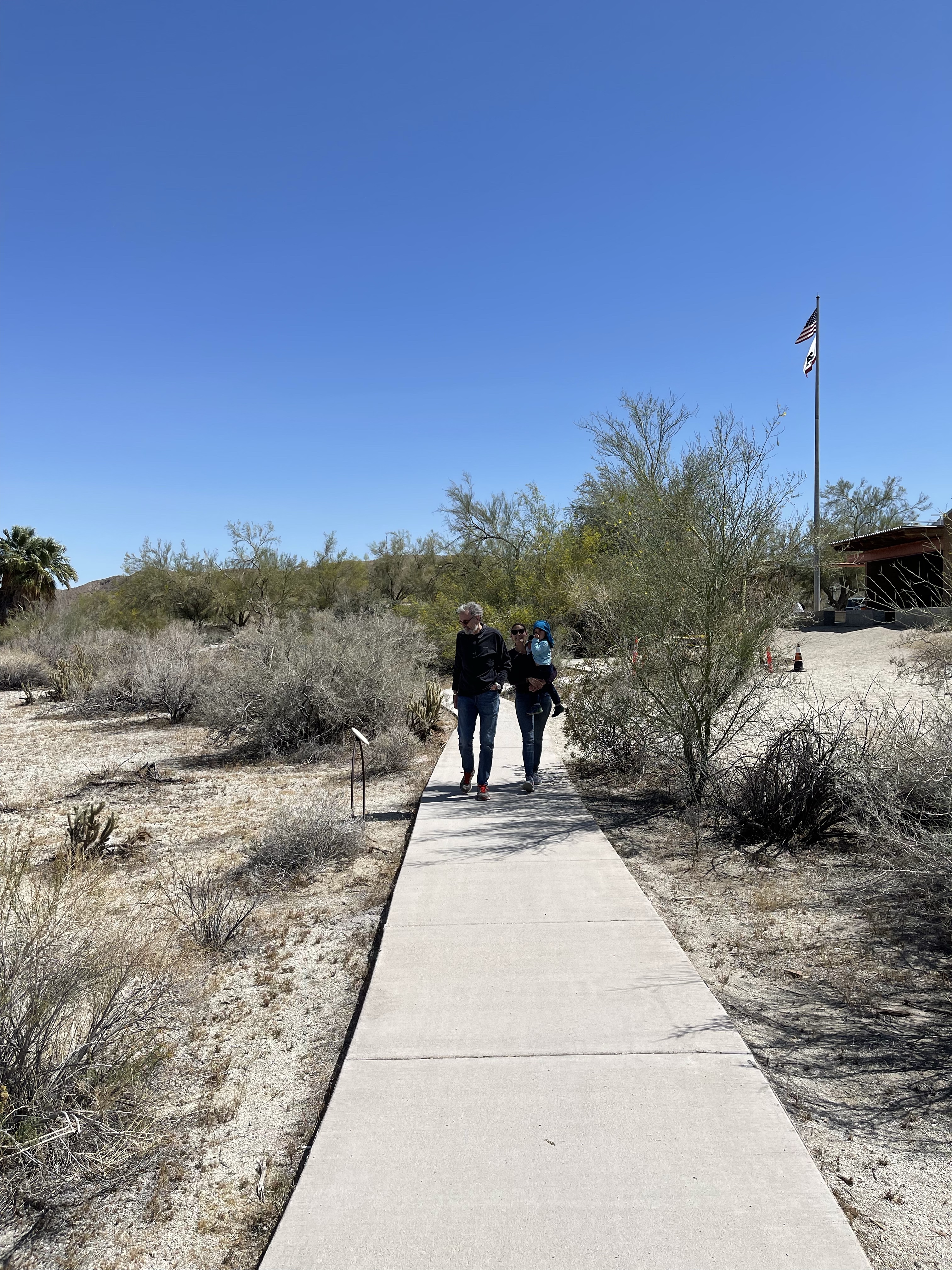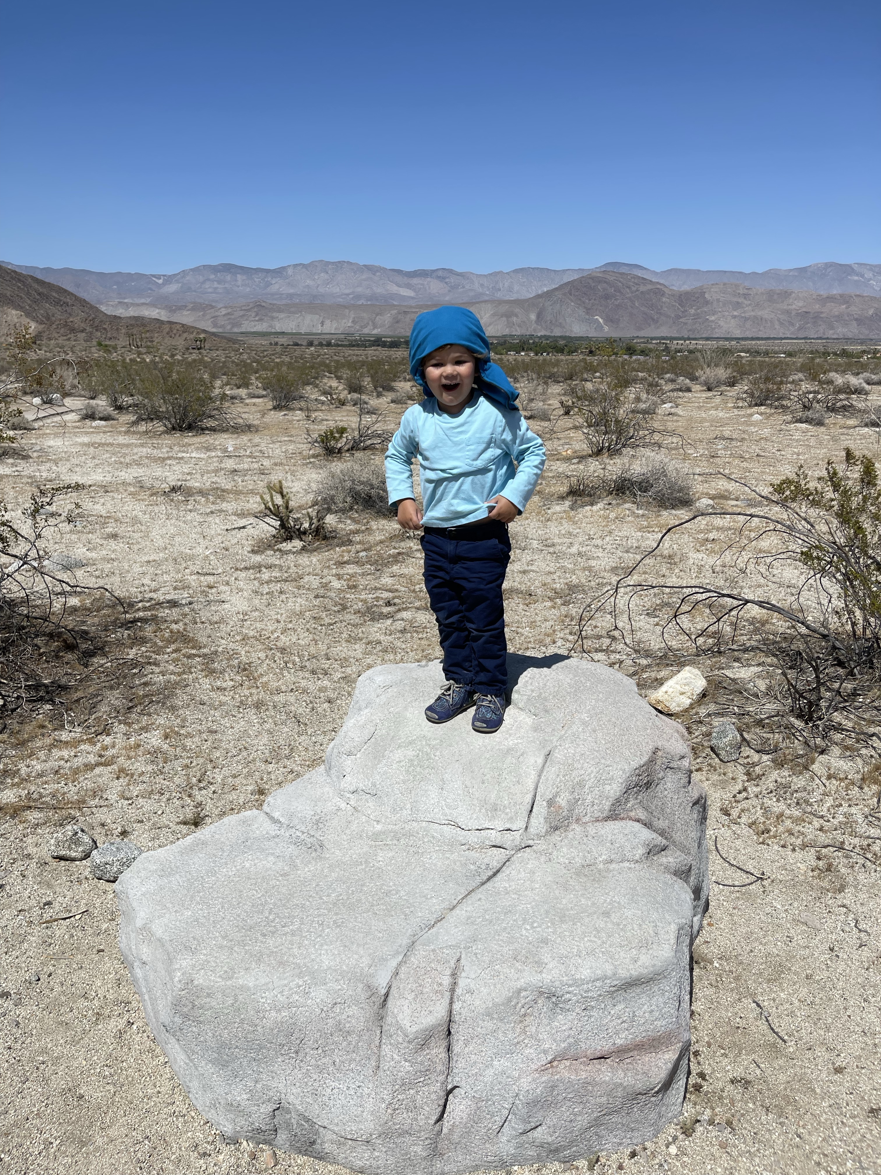 Autant il faisait très froid à Julian autant, contre toute attente, il fait très chaud dans le désert! Nous nous étions tous habillés chaudement ce matin et à l’arrivé au parking de notre randonnée nous sommes saisis par la chaleur! 🥵🥵🥵