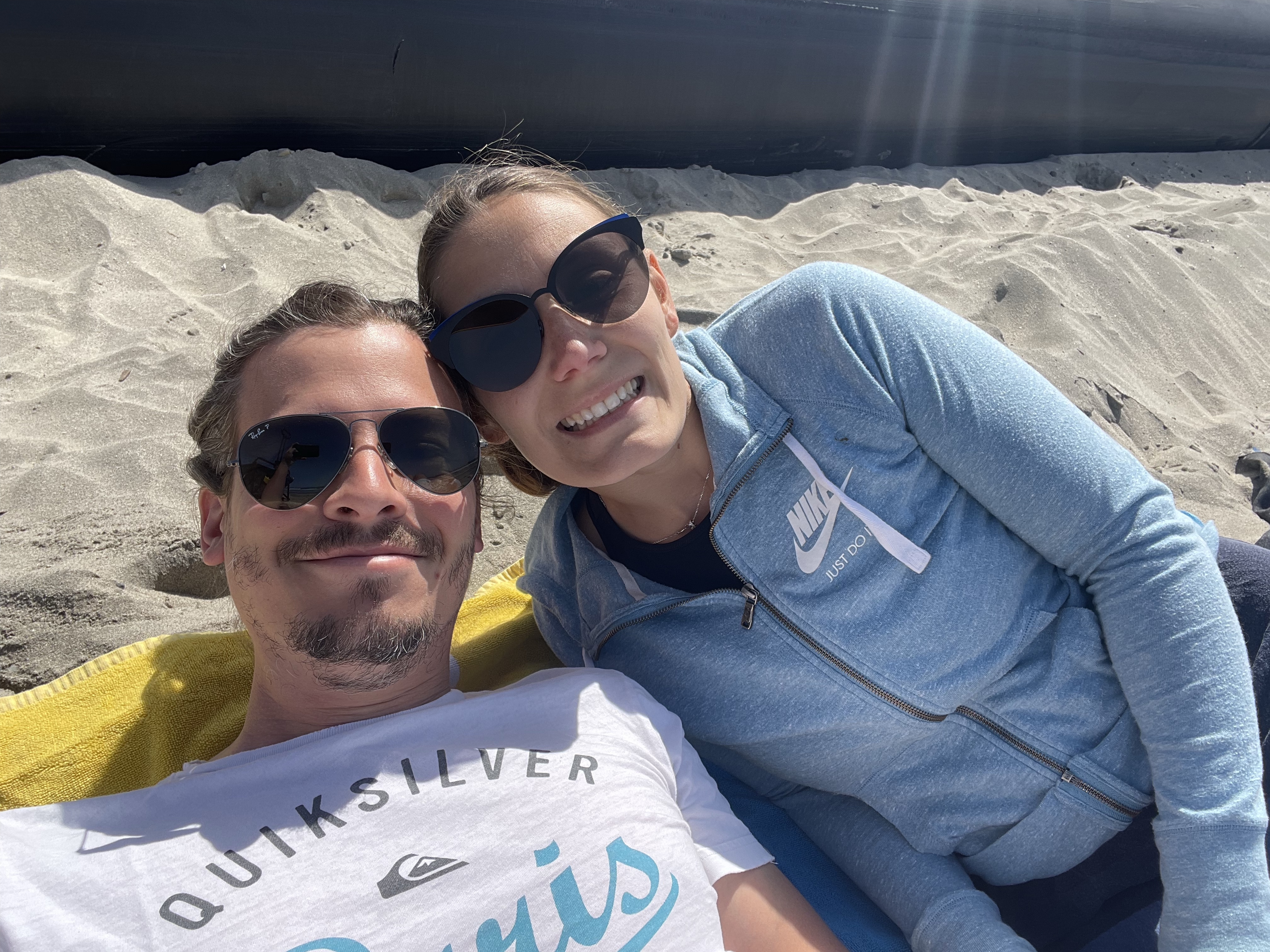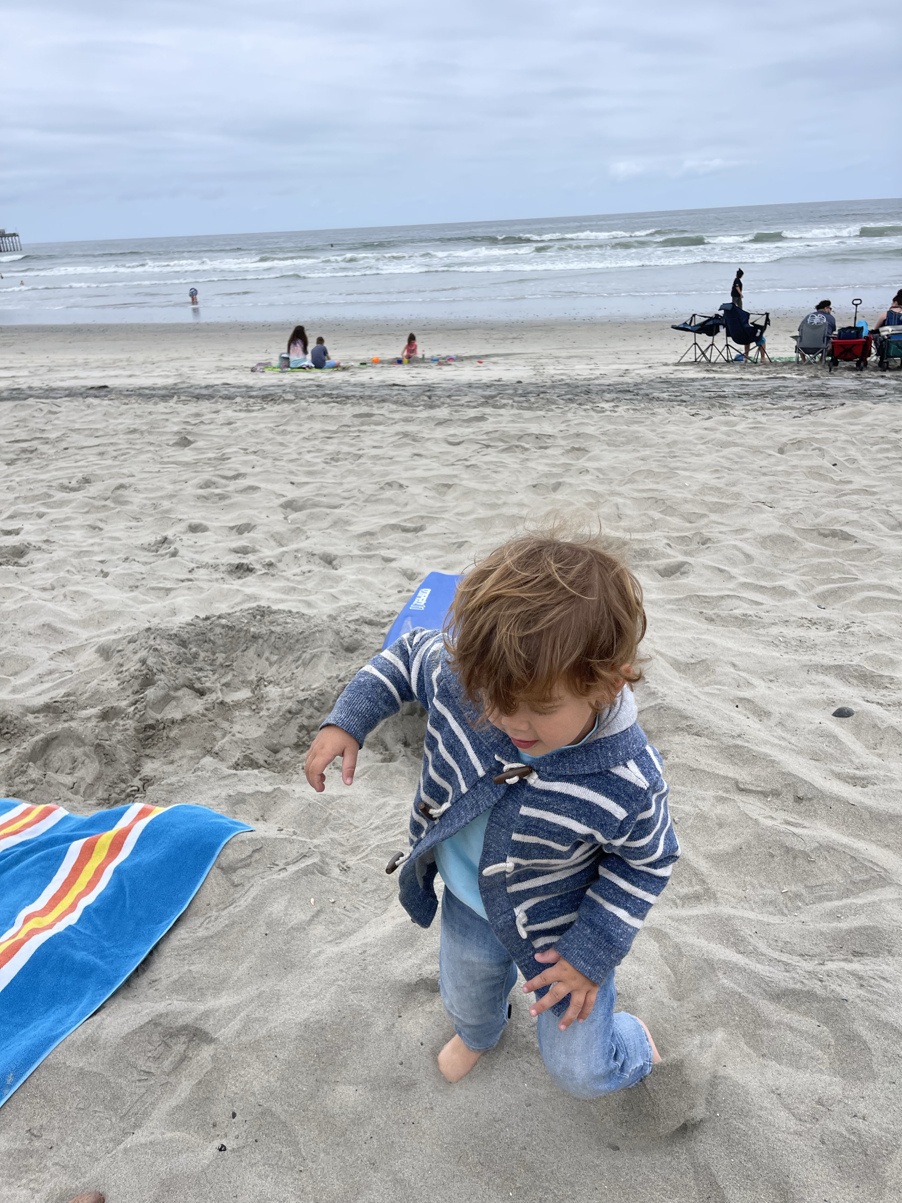 Le samedi nous allons à la plage avec eux! Anthony est très déçu du temps, pas de surf possible! Il fait moche et froid! 😭😭😭