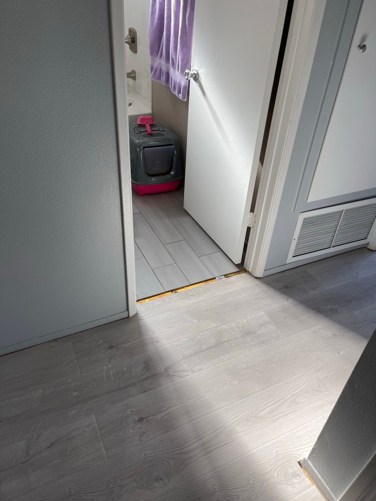 En fin d’après-midi, Guillaume rectifie et termine le couloir! Le parqueteur est de retour!