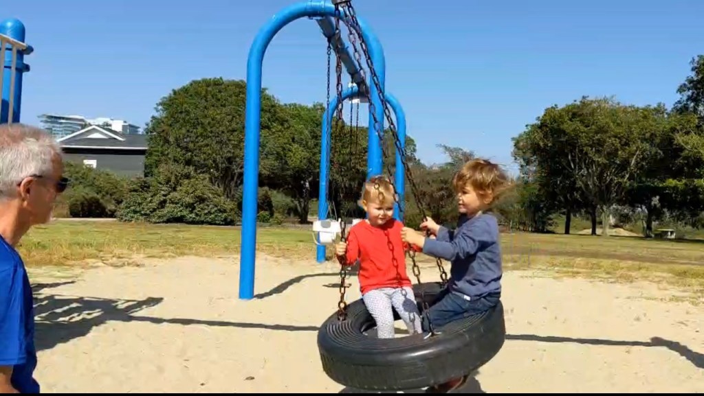 Mercredi, enfin du changement! Papi et mamie viennent chercher les enfants à l’école pour aller au parc! Ils sont excités comme des puces!
