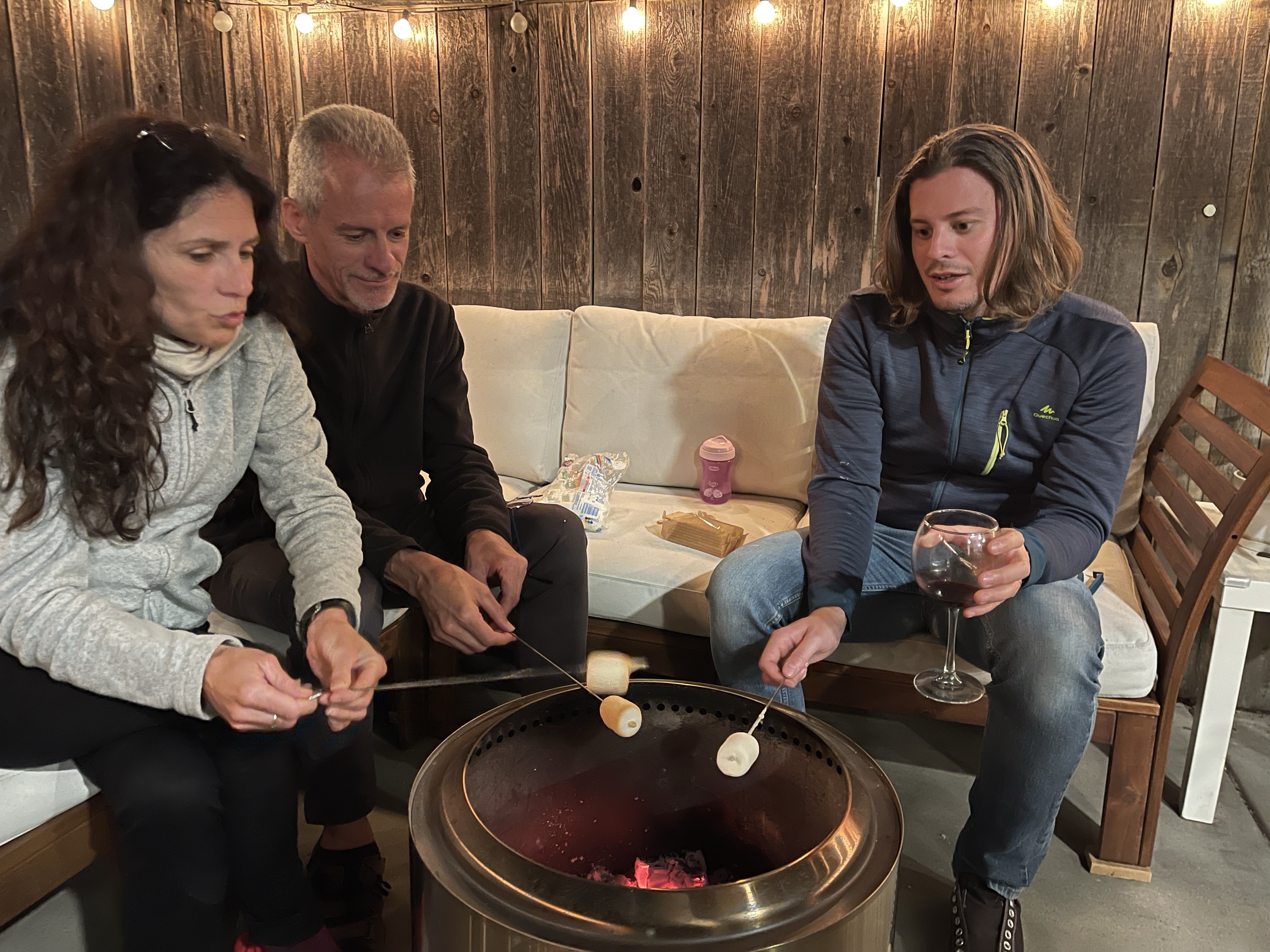 Le soir venu place au traditionnel fire pit! Mais petite innovation une fois les enfants couchés, nous grillons des chamallow et faisons des smores (sandwich avec ses biscuits, du chamallow grillé et du chocolat).