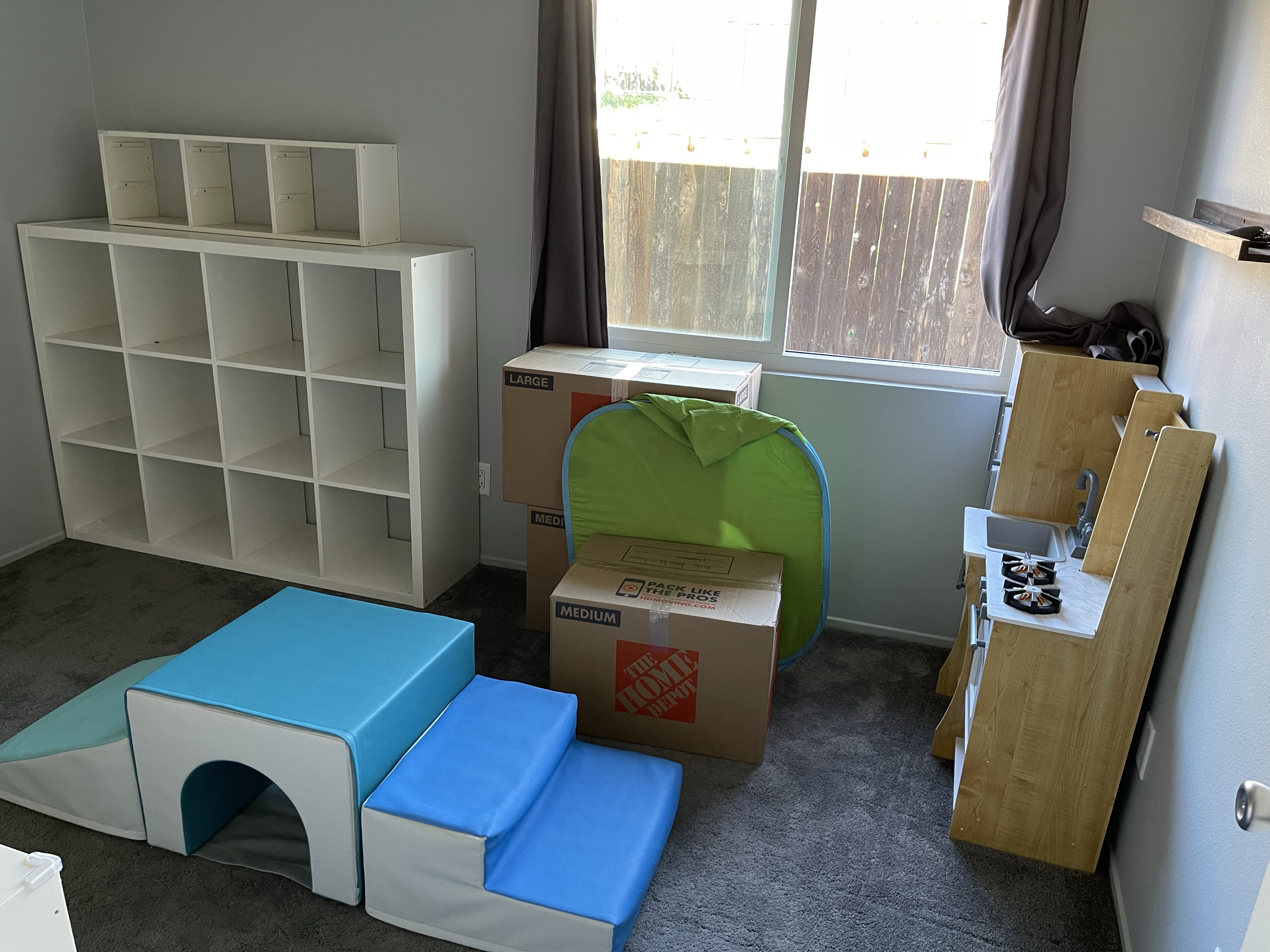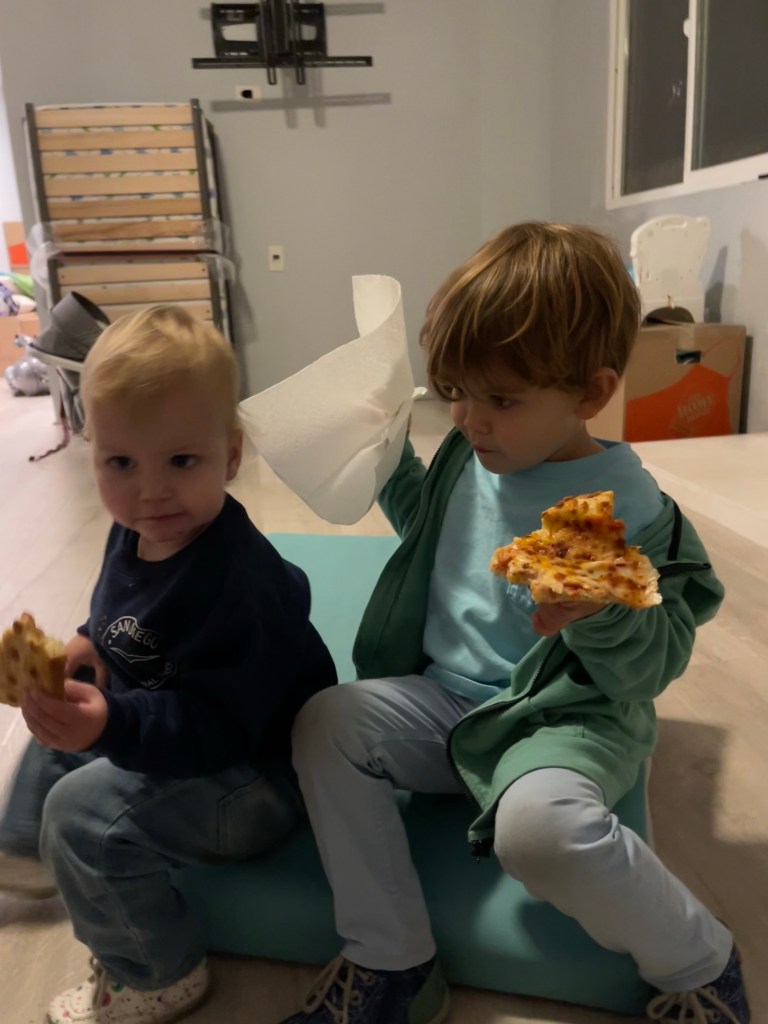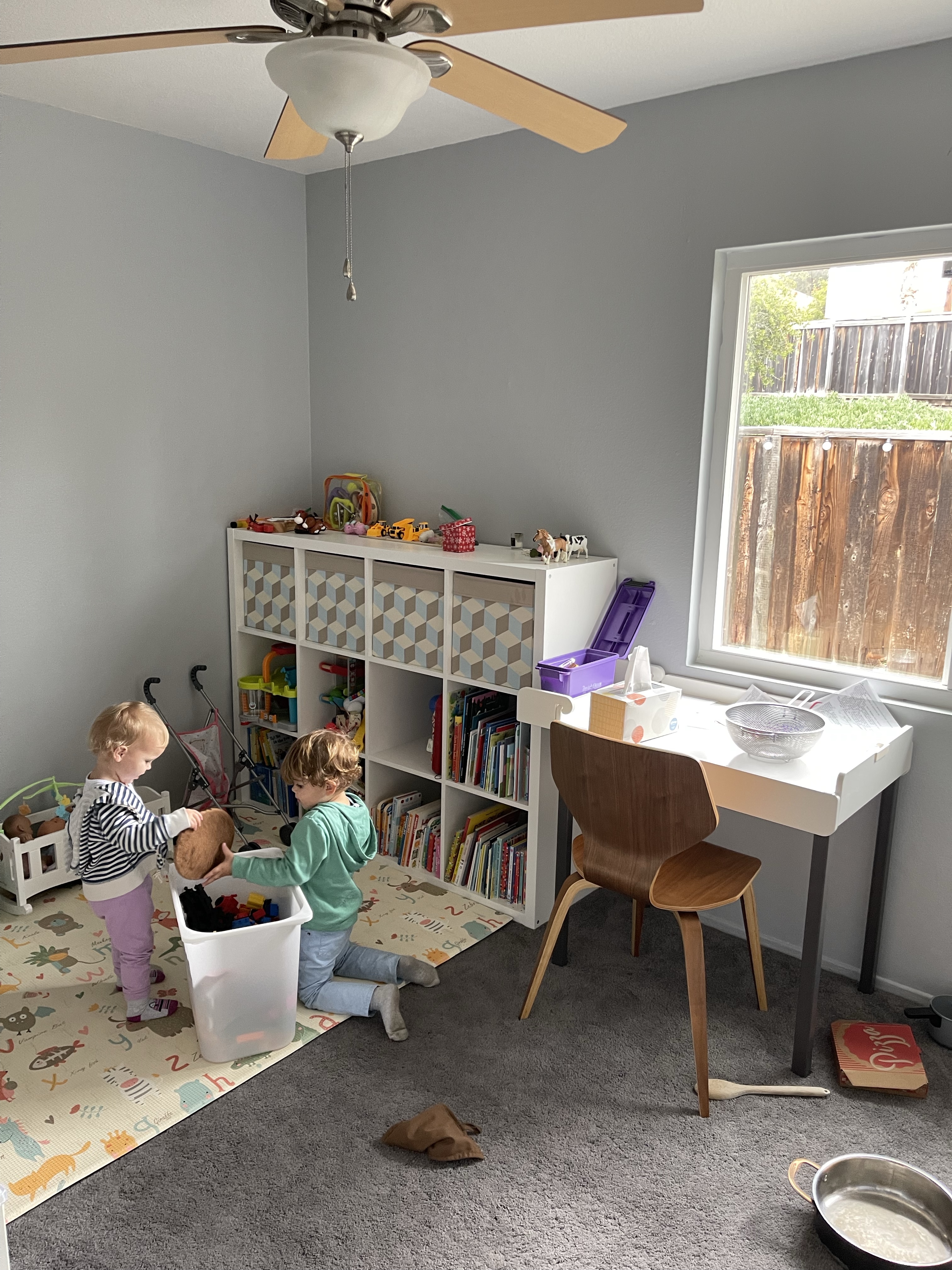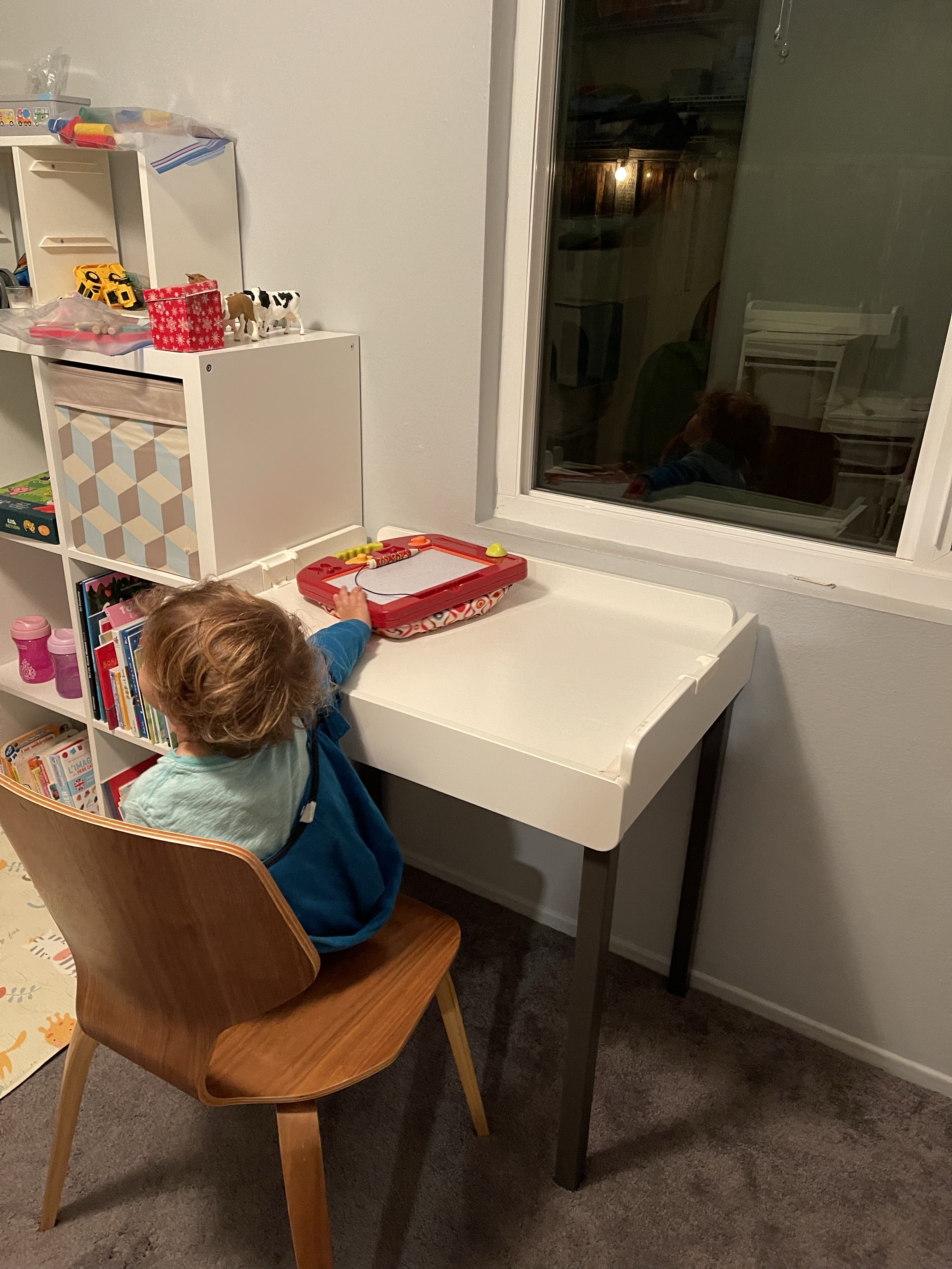 Le dimanche ressemble au samedi, rangement, nettoyage! Mais la maison prend forme. Nous avons même pris le temps de monter le bureau de Gabriel (la table à langer se transformait en bureau) et de l’installer dans sa salle de jeu pour son plus grand bonheur! Nous avons également reçu et monté en partie le salon de jardin!