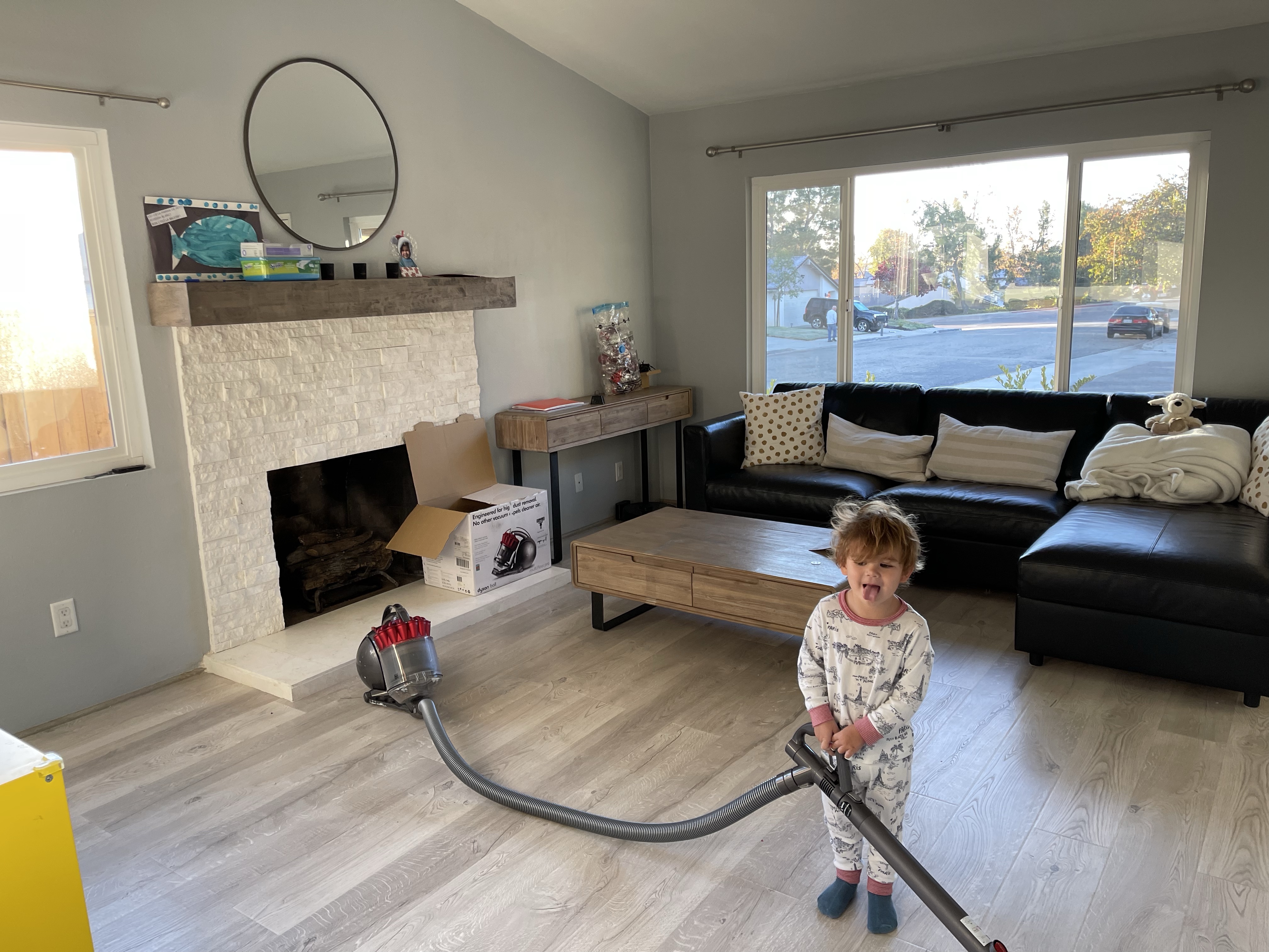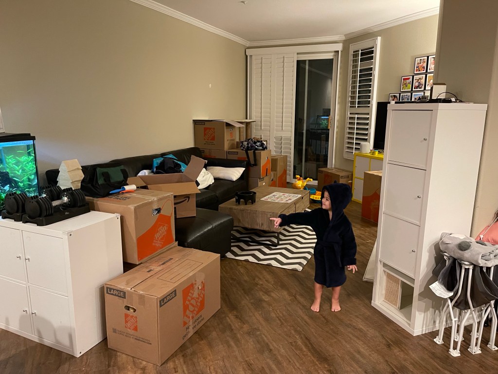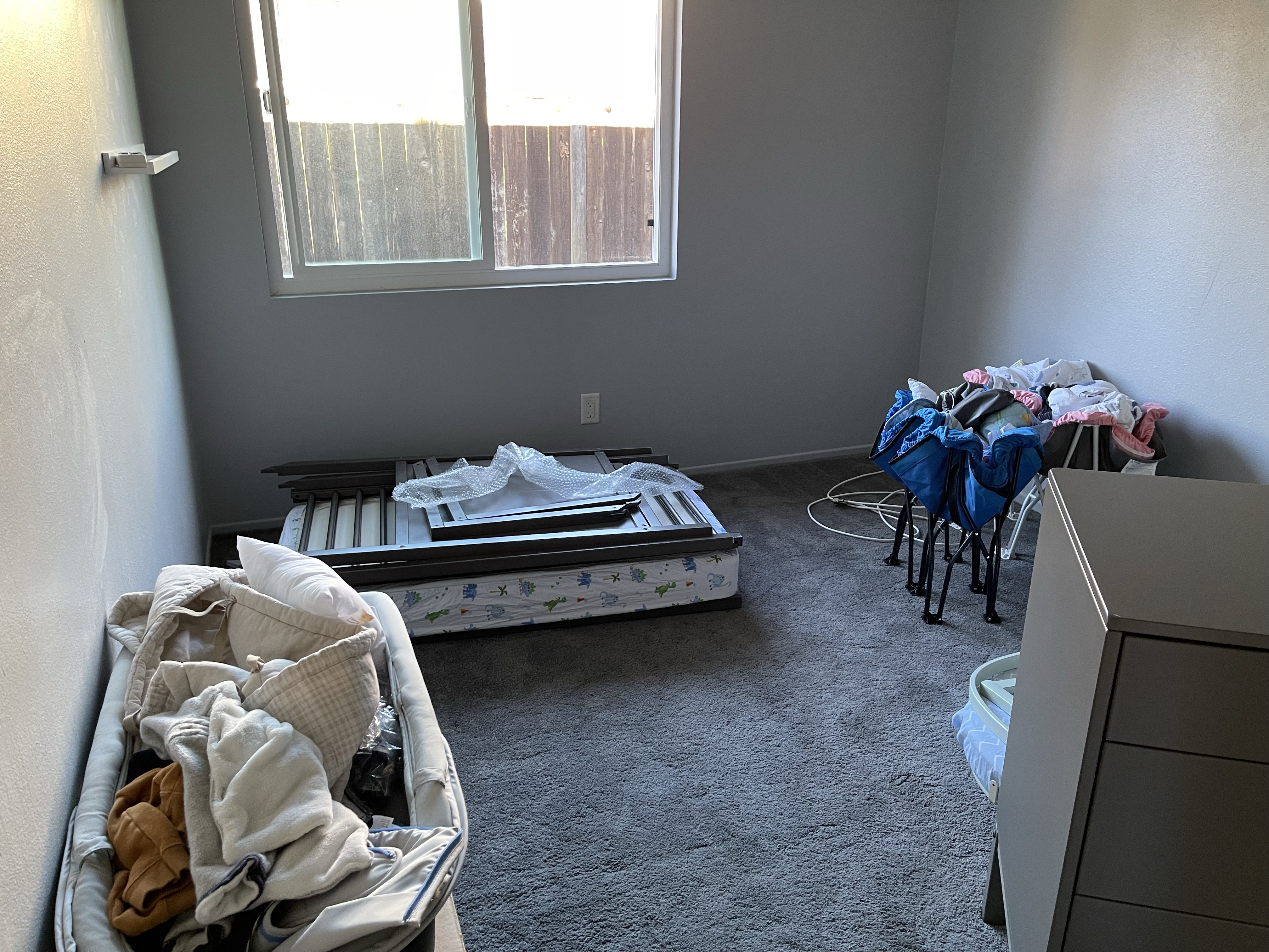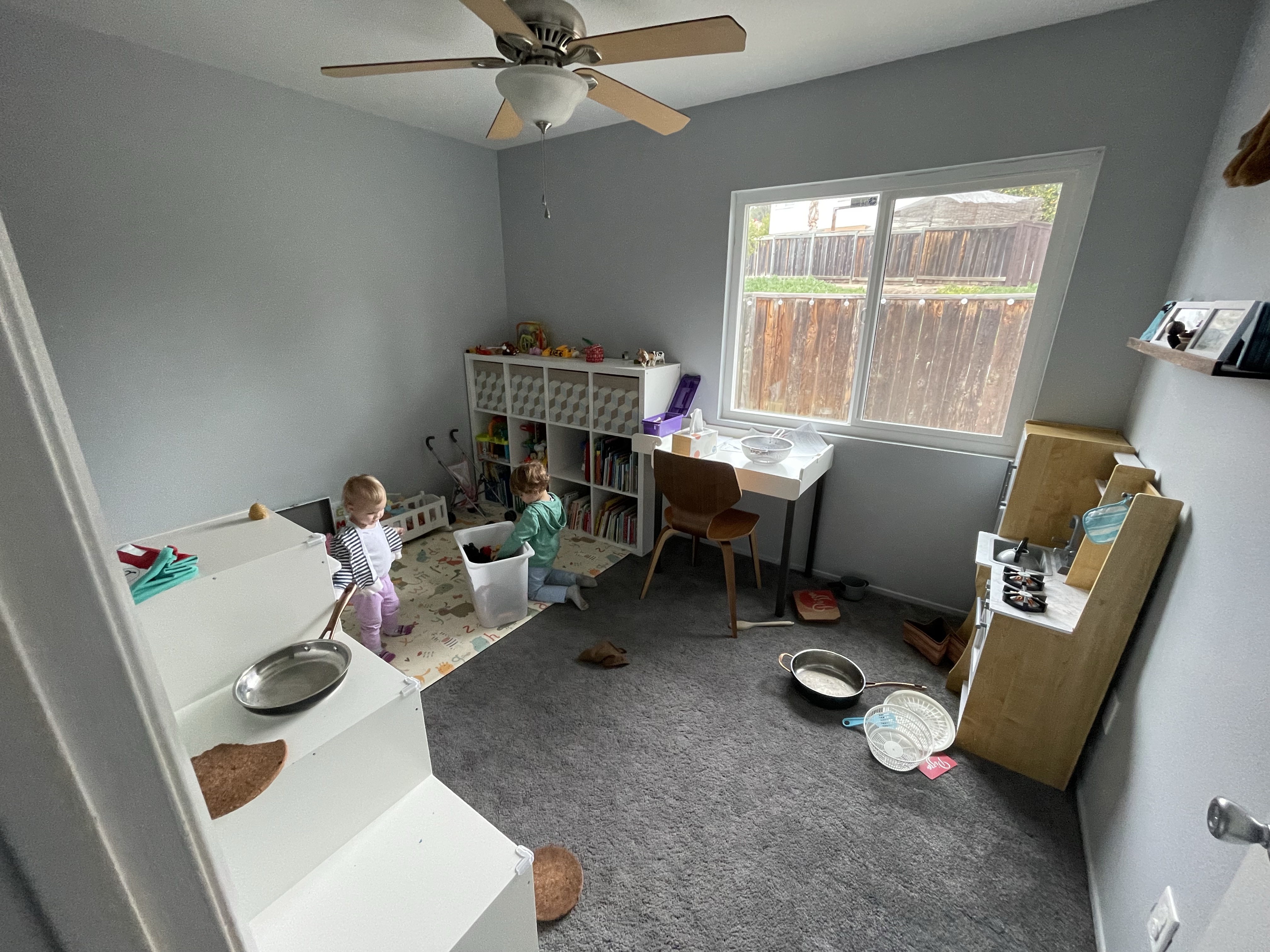 Le dimanche ressemble au samedi, rangement, nettoyage! Mais la maison prend forme. Nous avons même pris le temps de monter le bureau de Gabriel (la table à langer se transformait en bureau) et de l’installer dans sa salle de jeu pour son plus grand bonheur! Nous avons également reçu et monté en partie le salon de jardin!