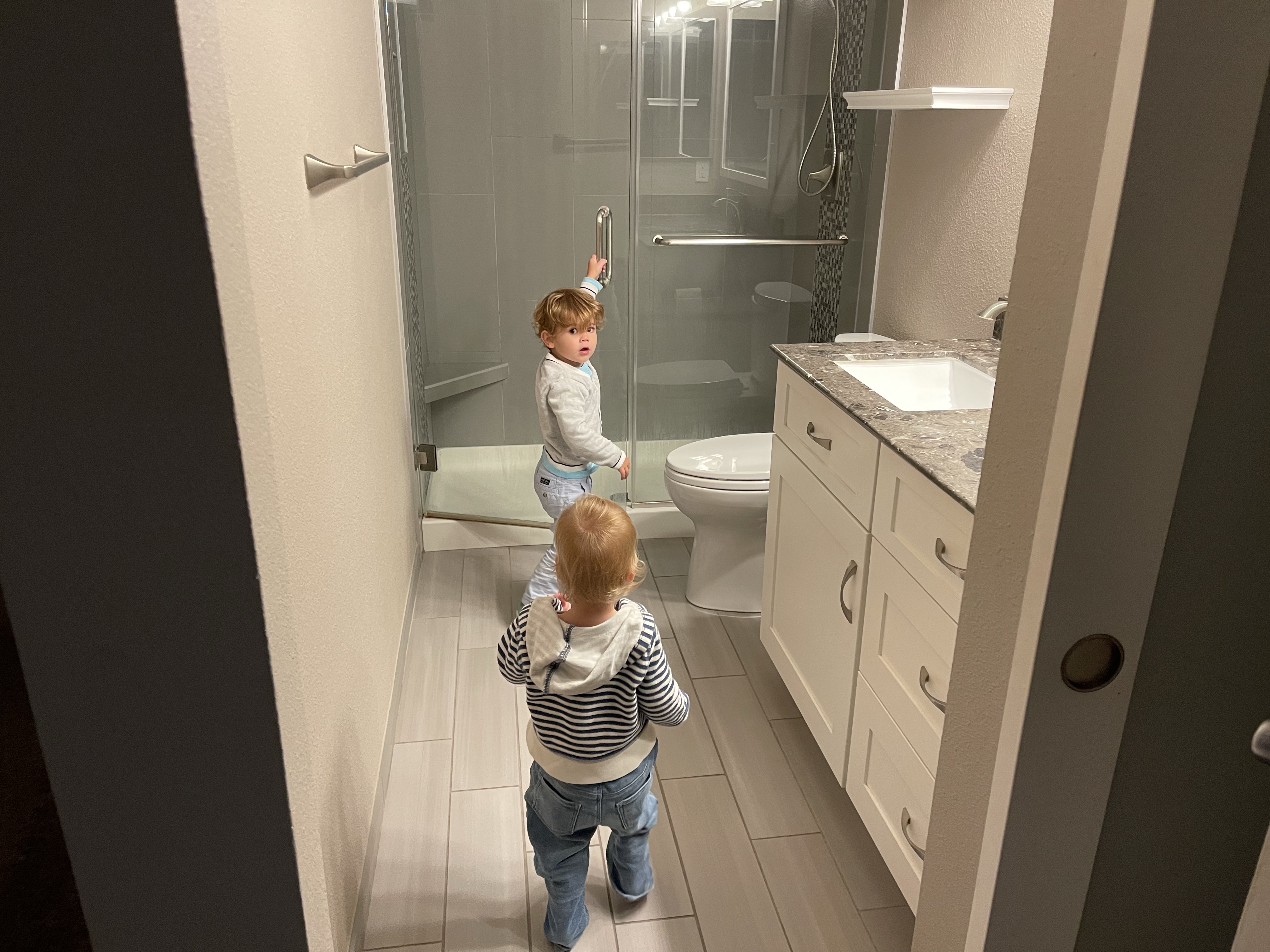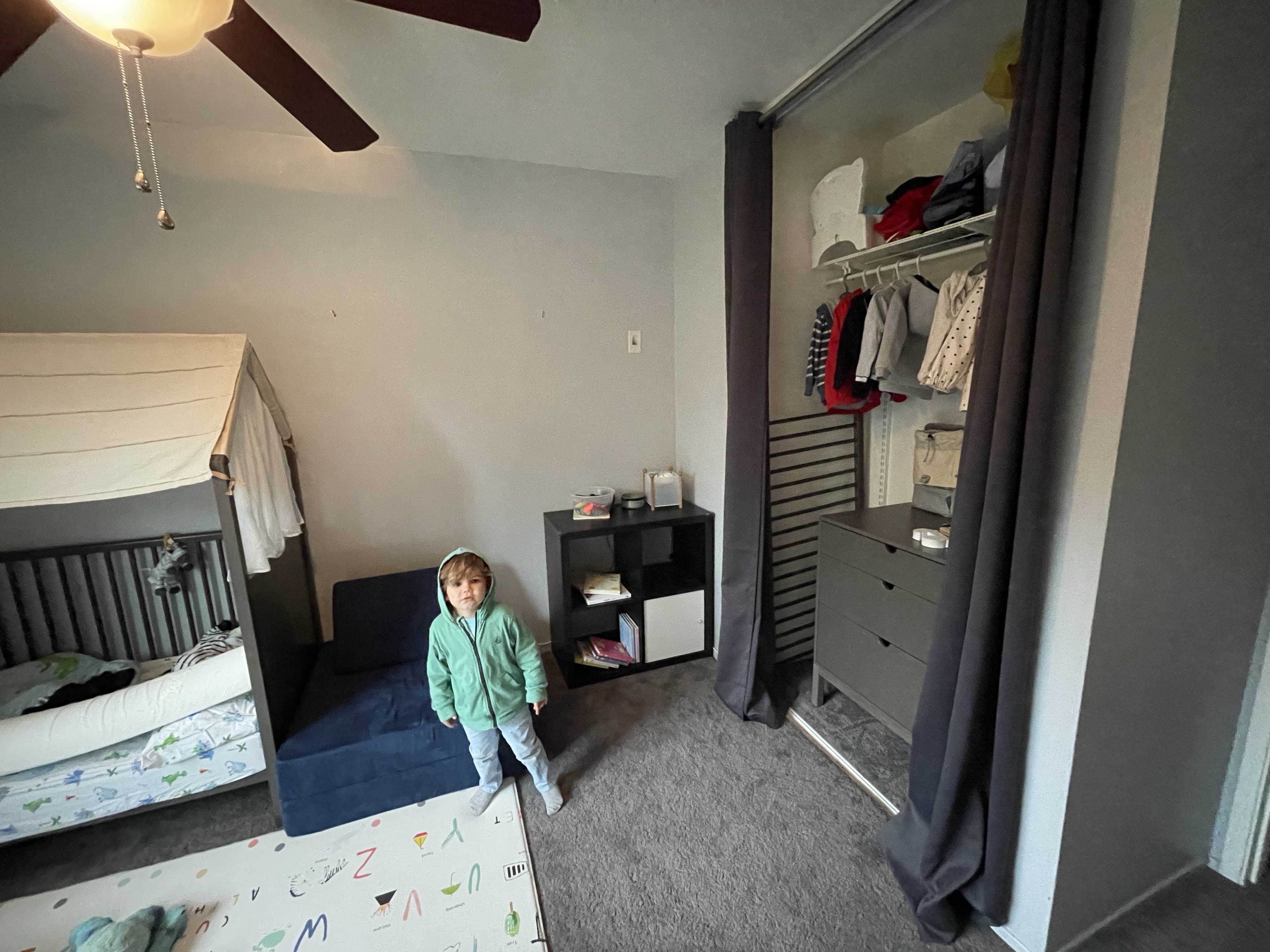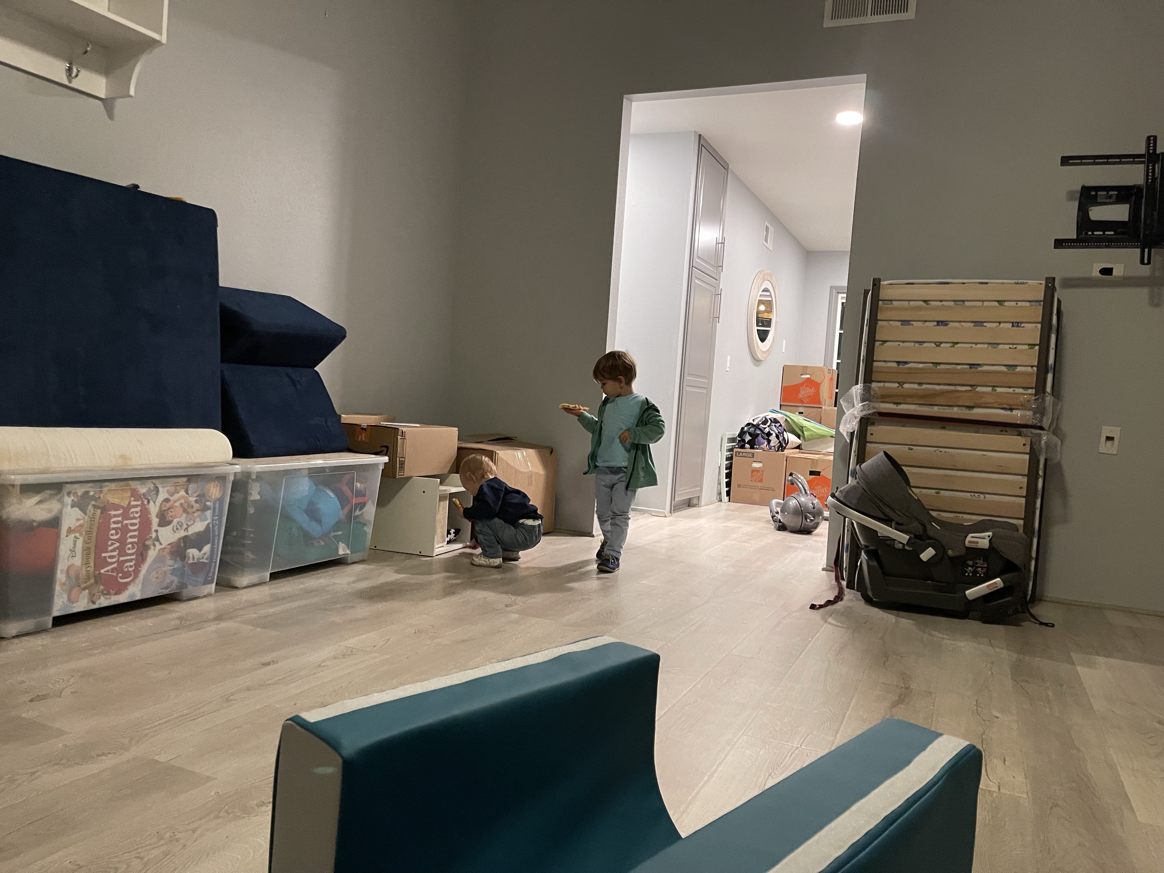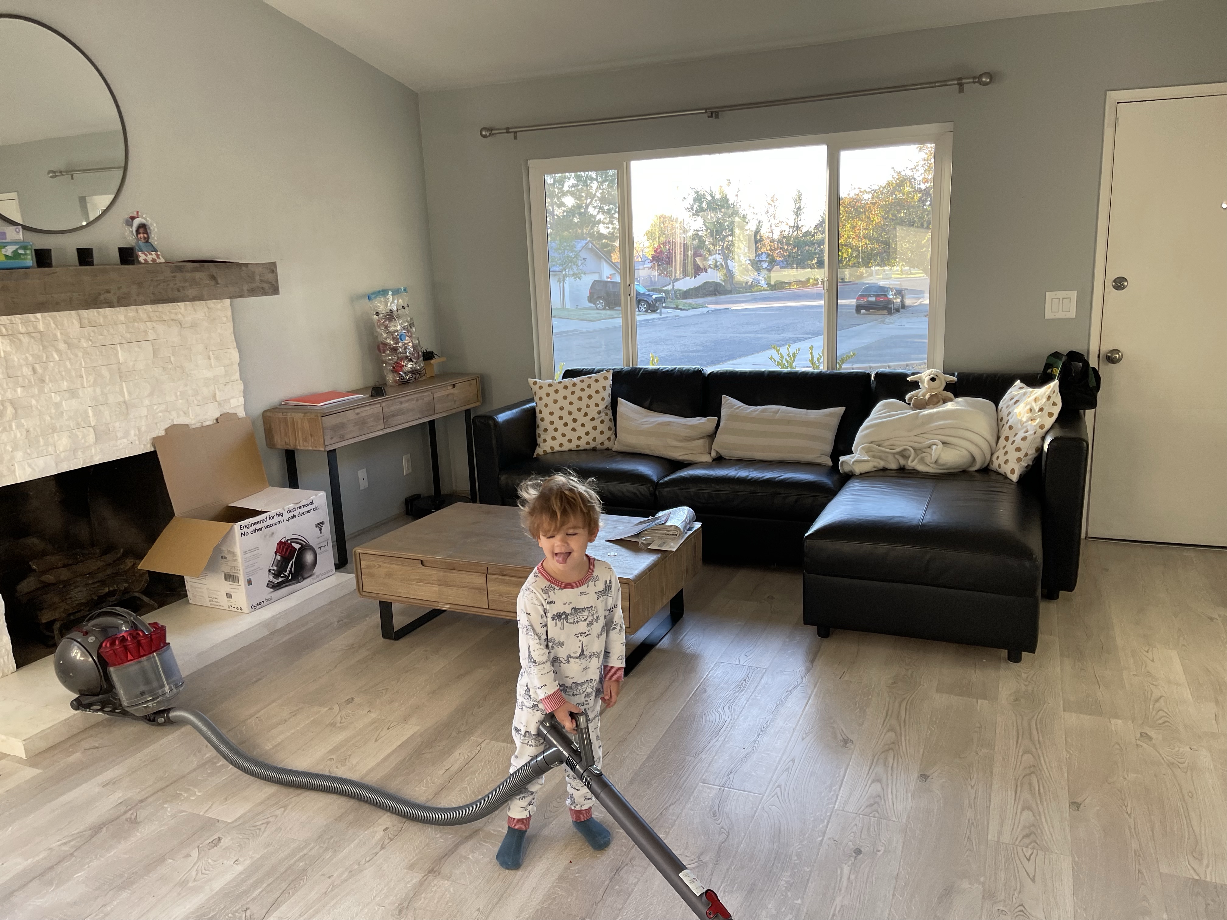Le dimanche ressemble au samedi, rangement, nettoyage! Mais la maison prend forme. Nous avons même pris le temps de monter le bureau de Gabriel (la table à langer se transformait en bureau) et de l’installer dans sa salle de jeu pour son plus grand bonheur! Nous avons également reçu et monté en partie le salon de jardin!