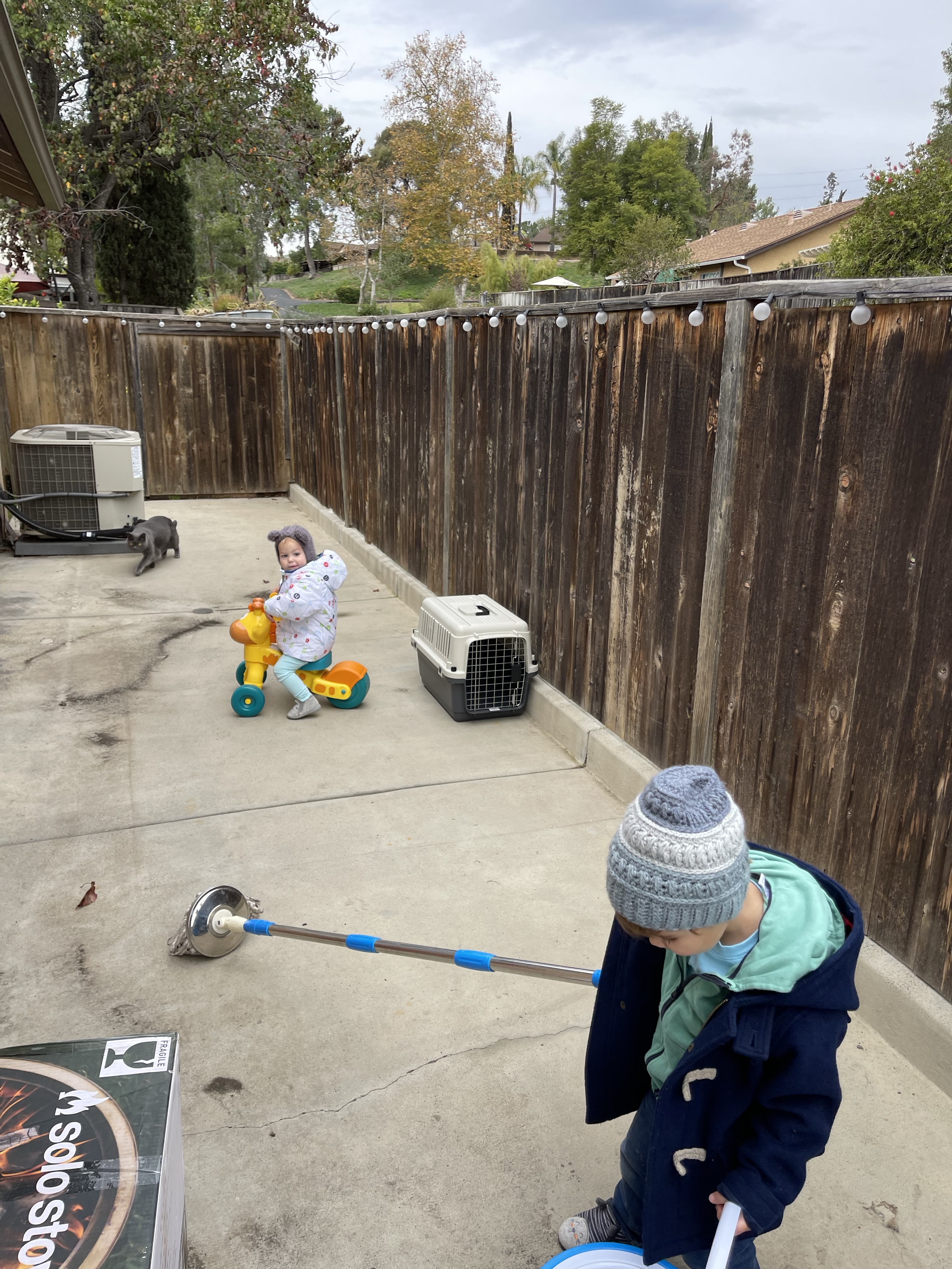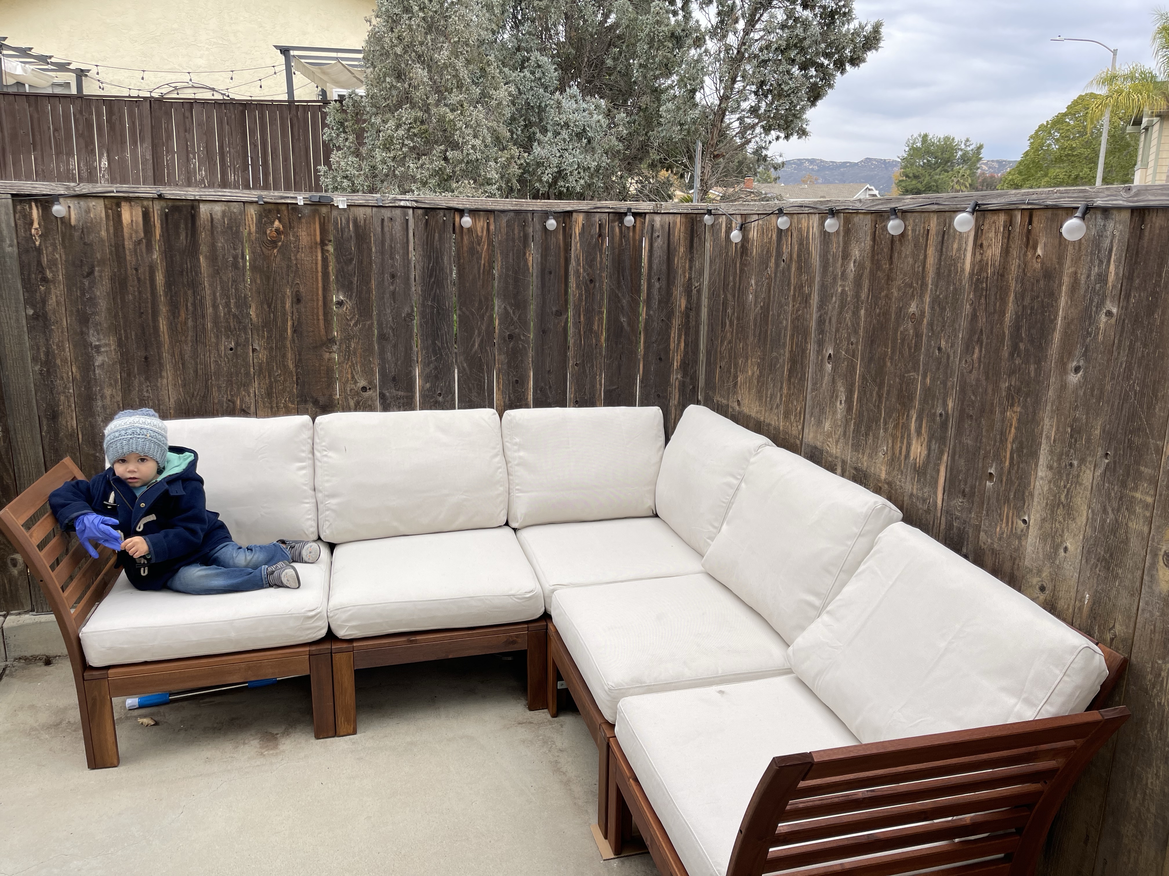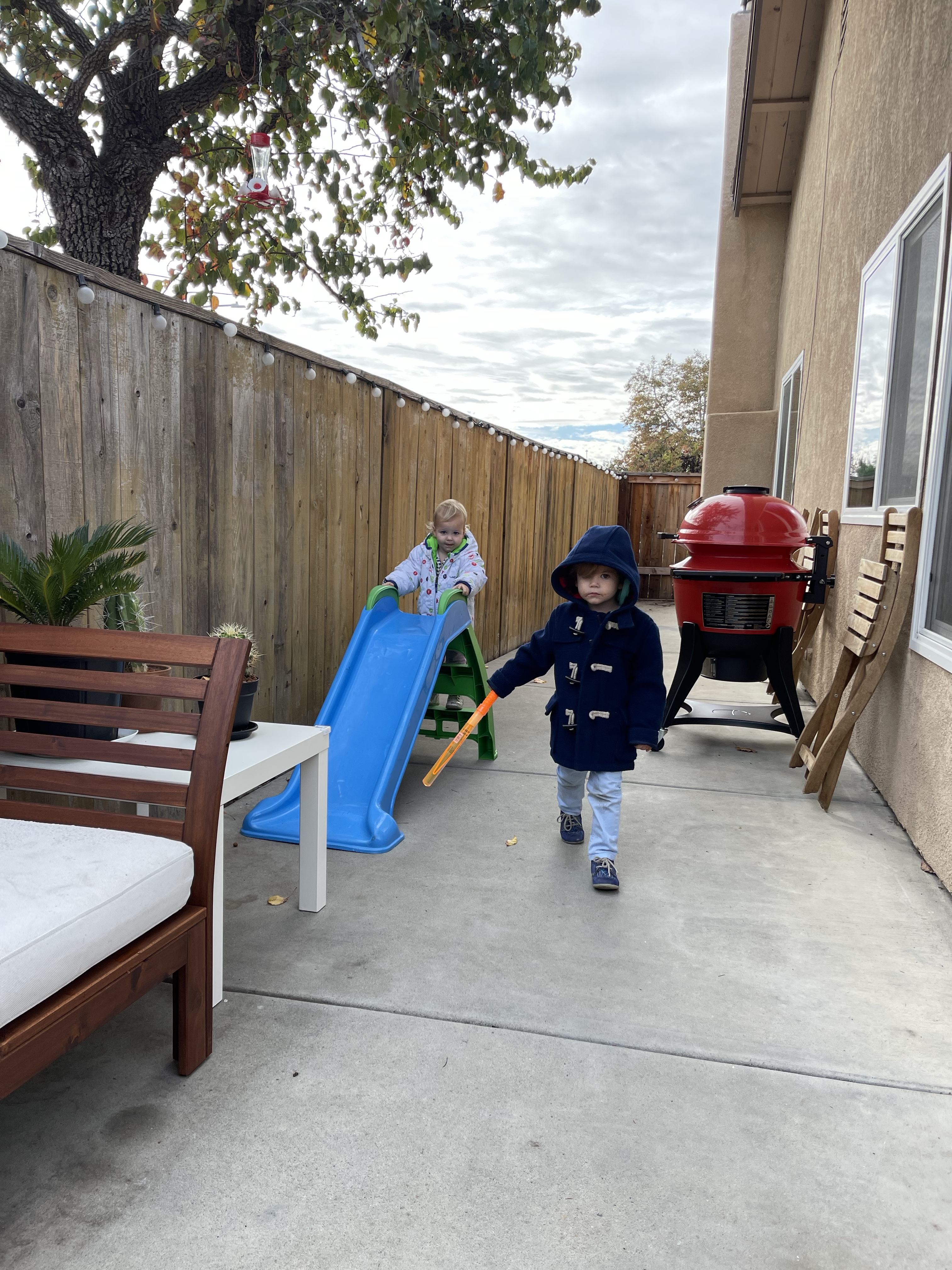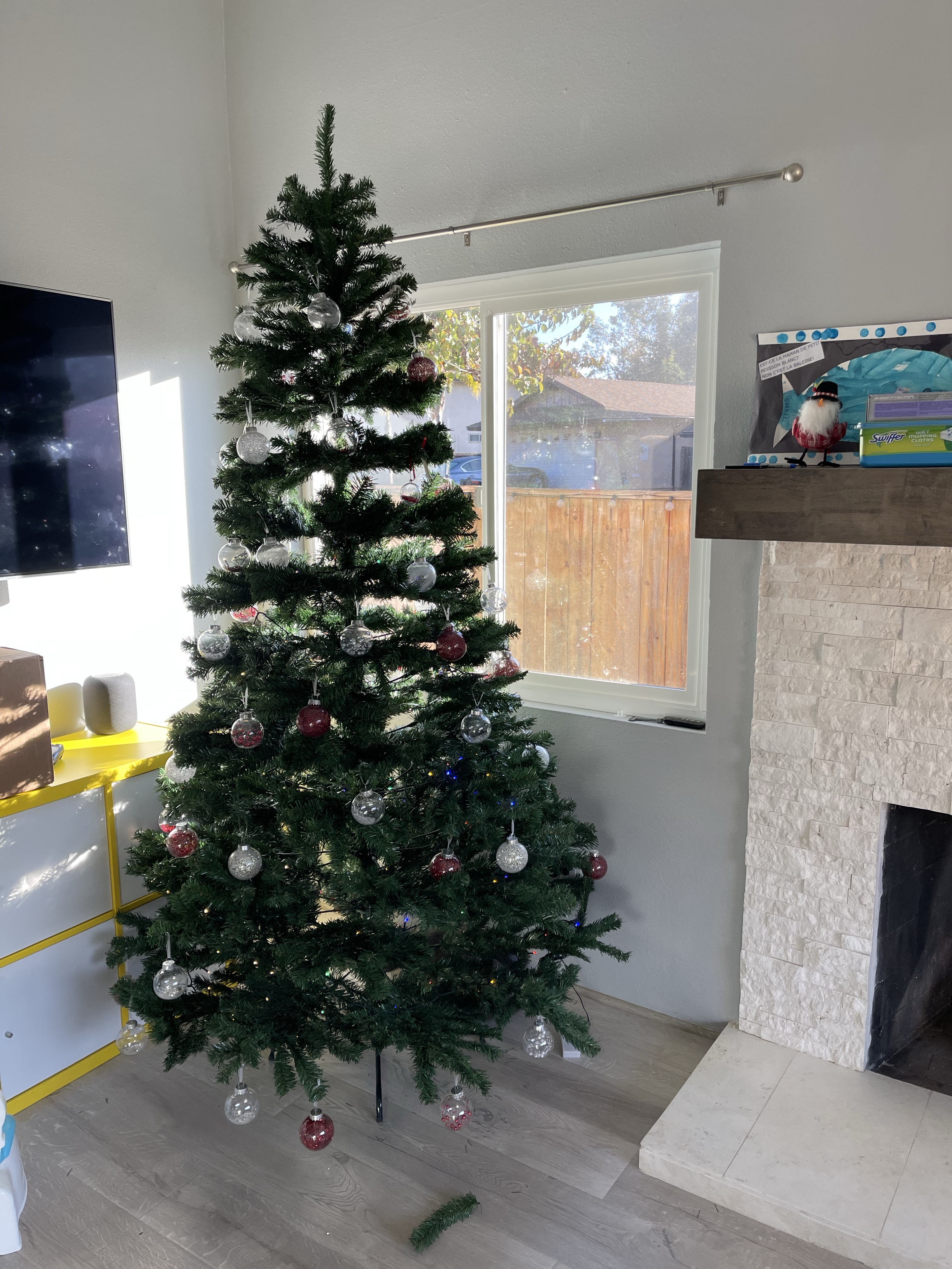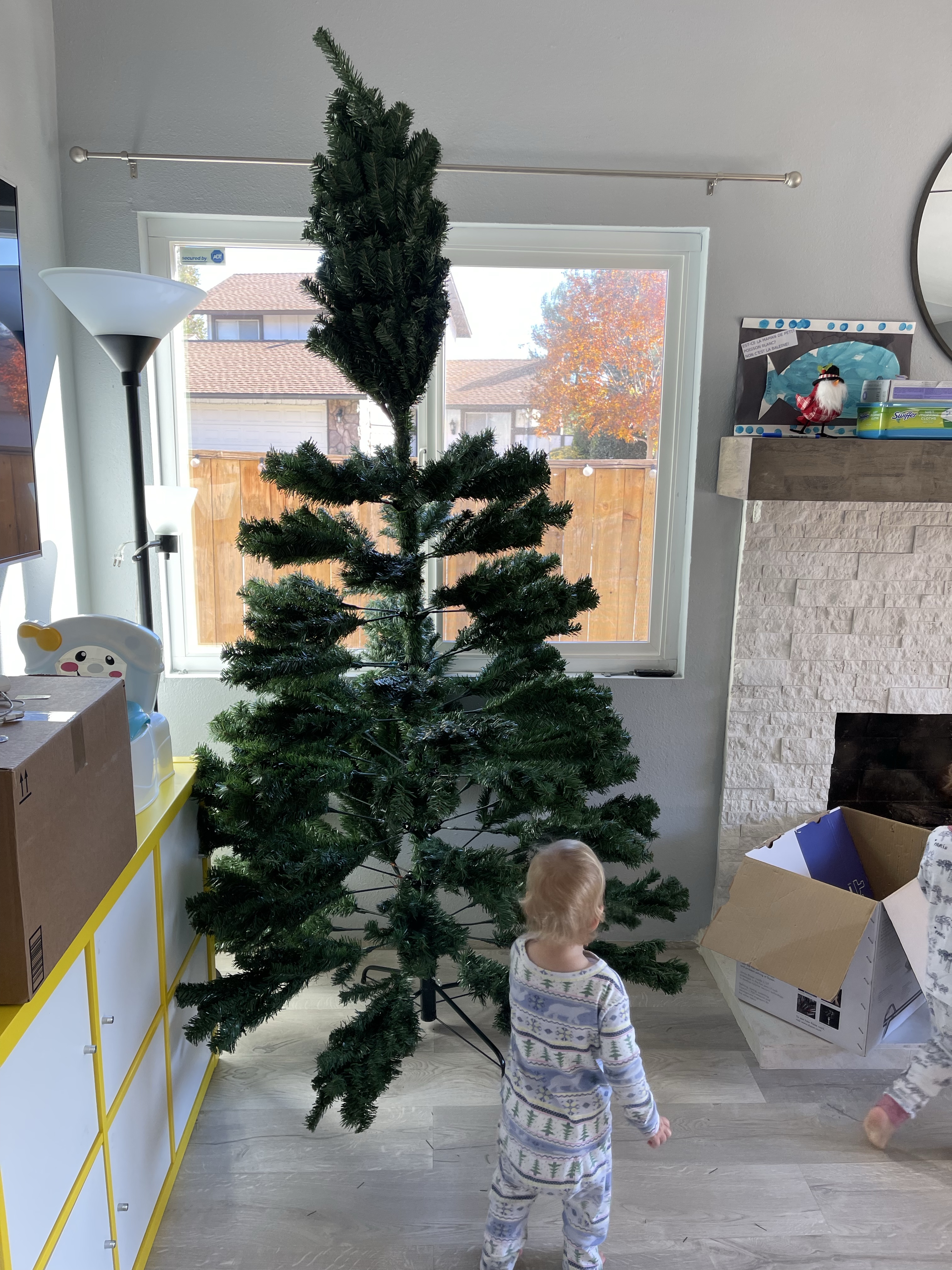 Le lundi, encore un petit coup de nettoyage dans le salon grâce à Gabriel et la mise en place du sapin (à 4 jours de noël il était temps!) Guillaume finit également de construire le salon de jardin!