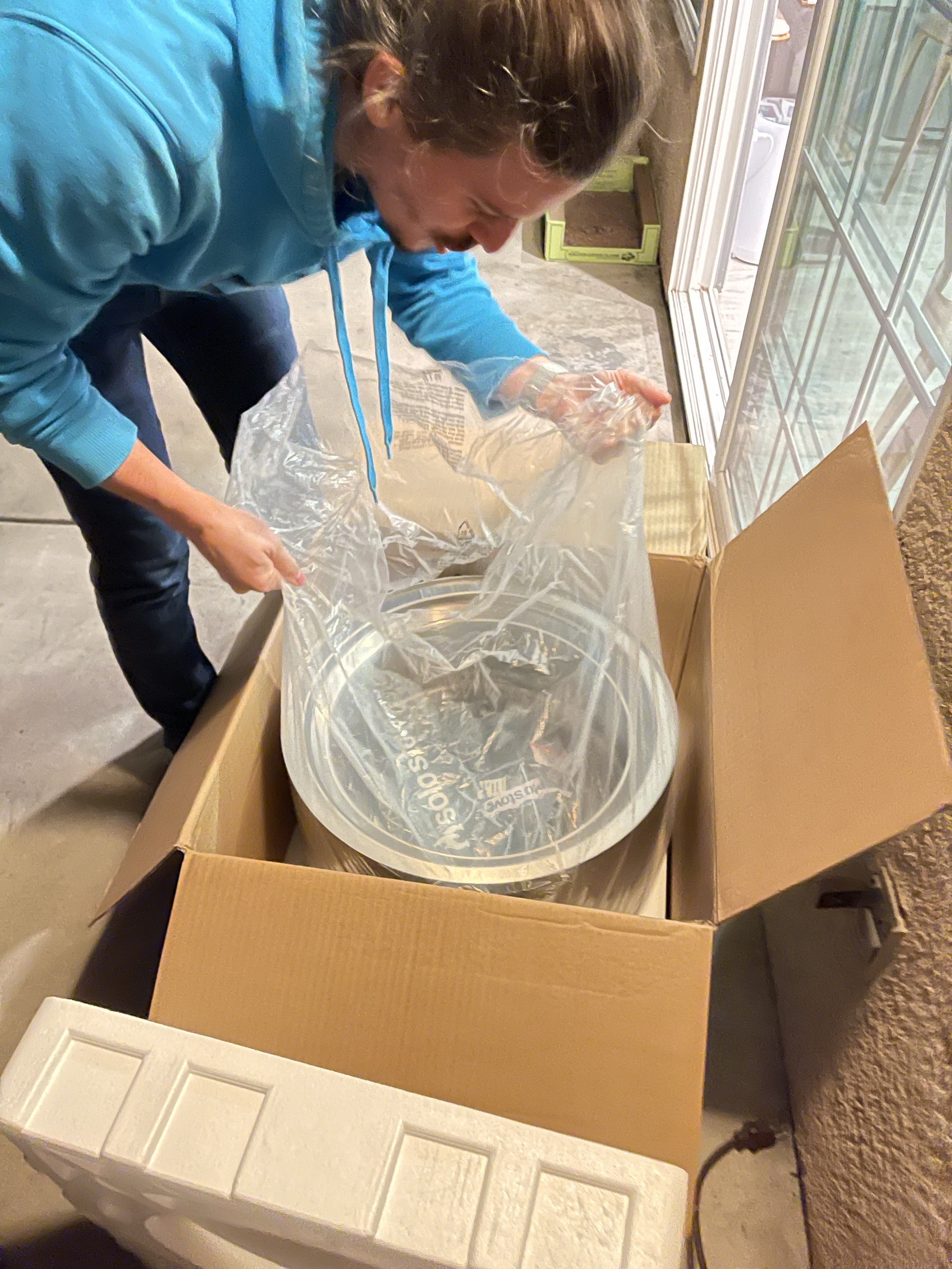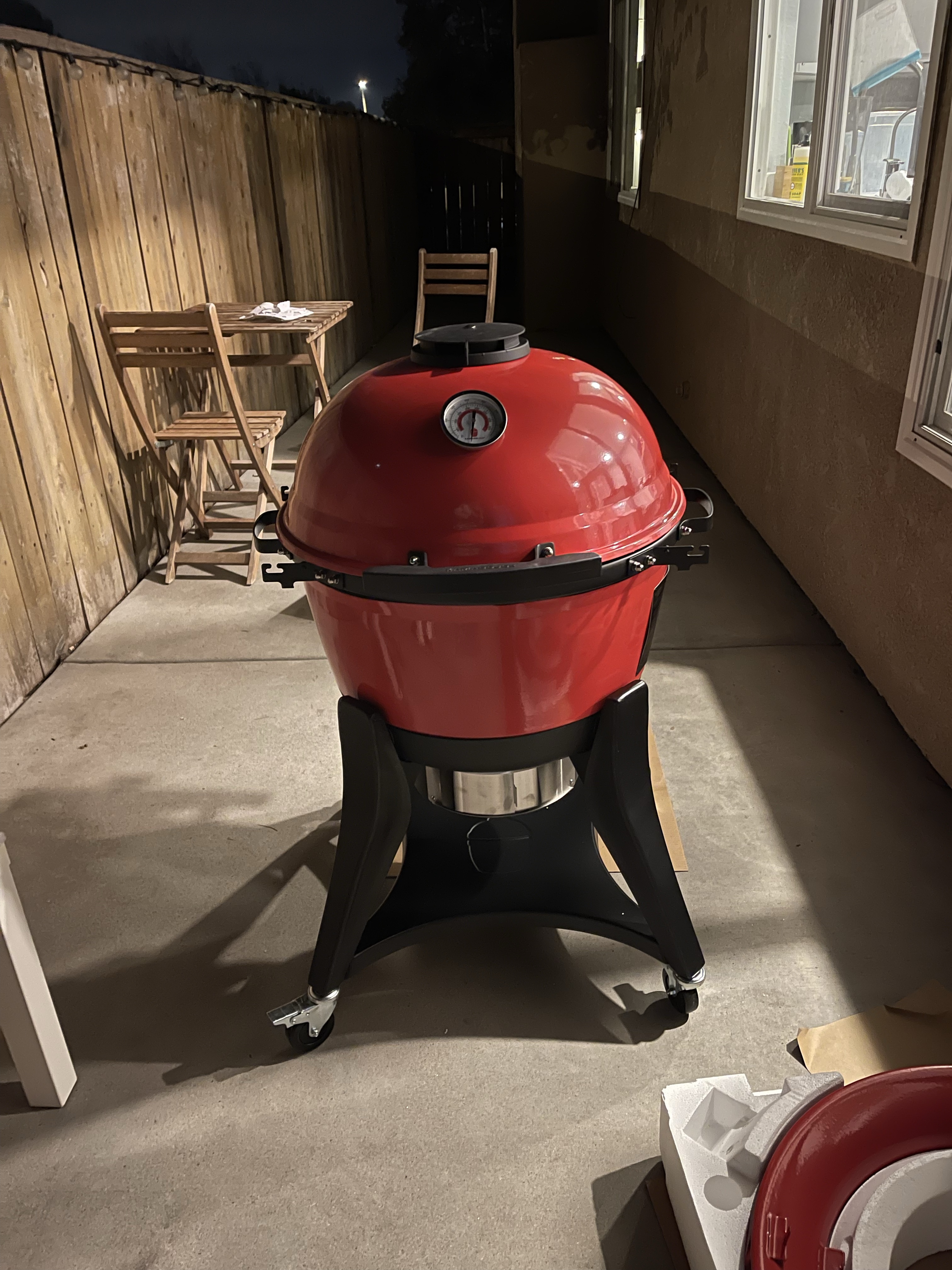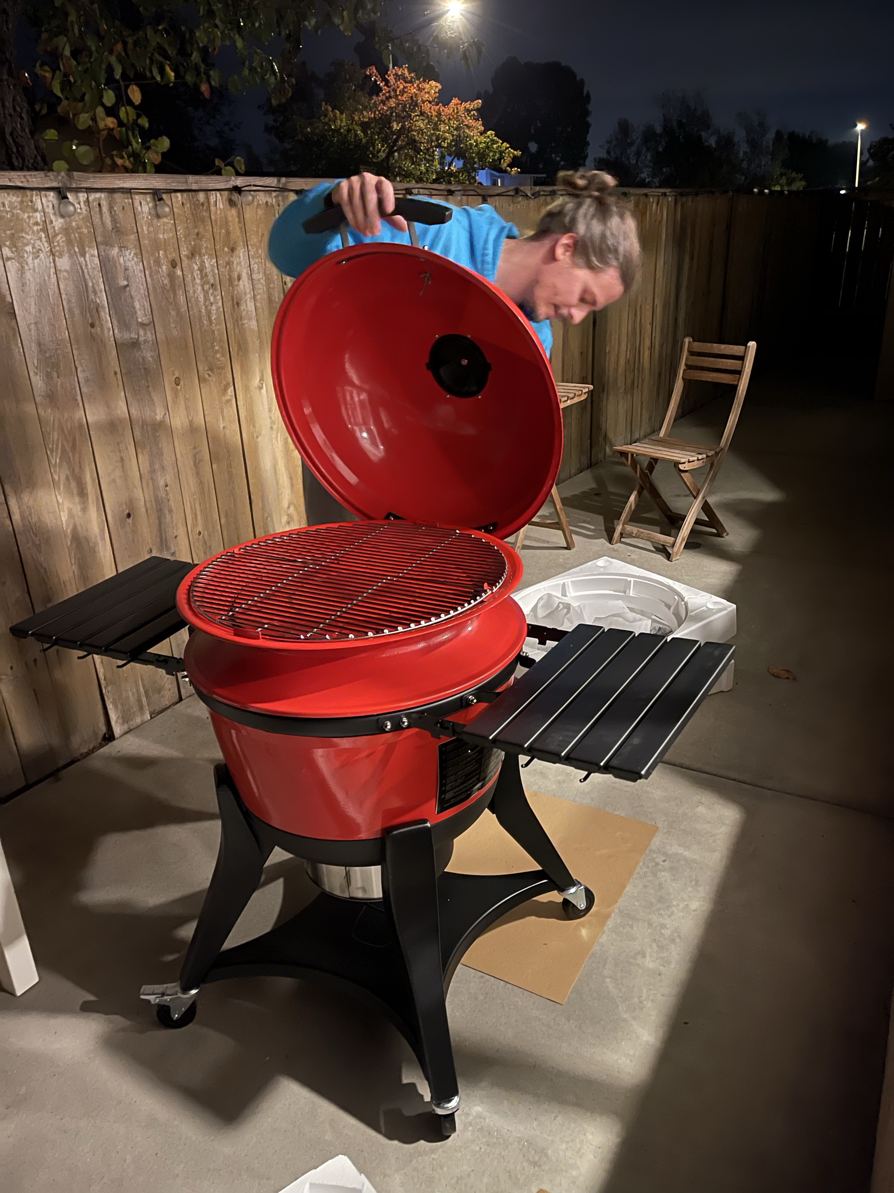 Nous avons également reçu le barbecue et commençons à le monter (nous le finirons tard dans la nuit dans un froid glacial!)