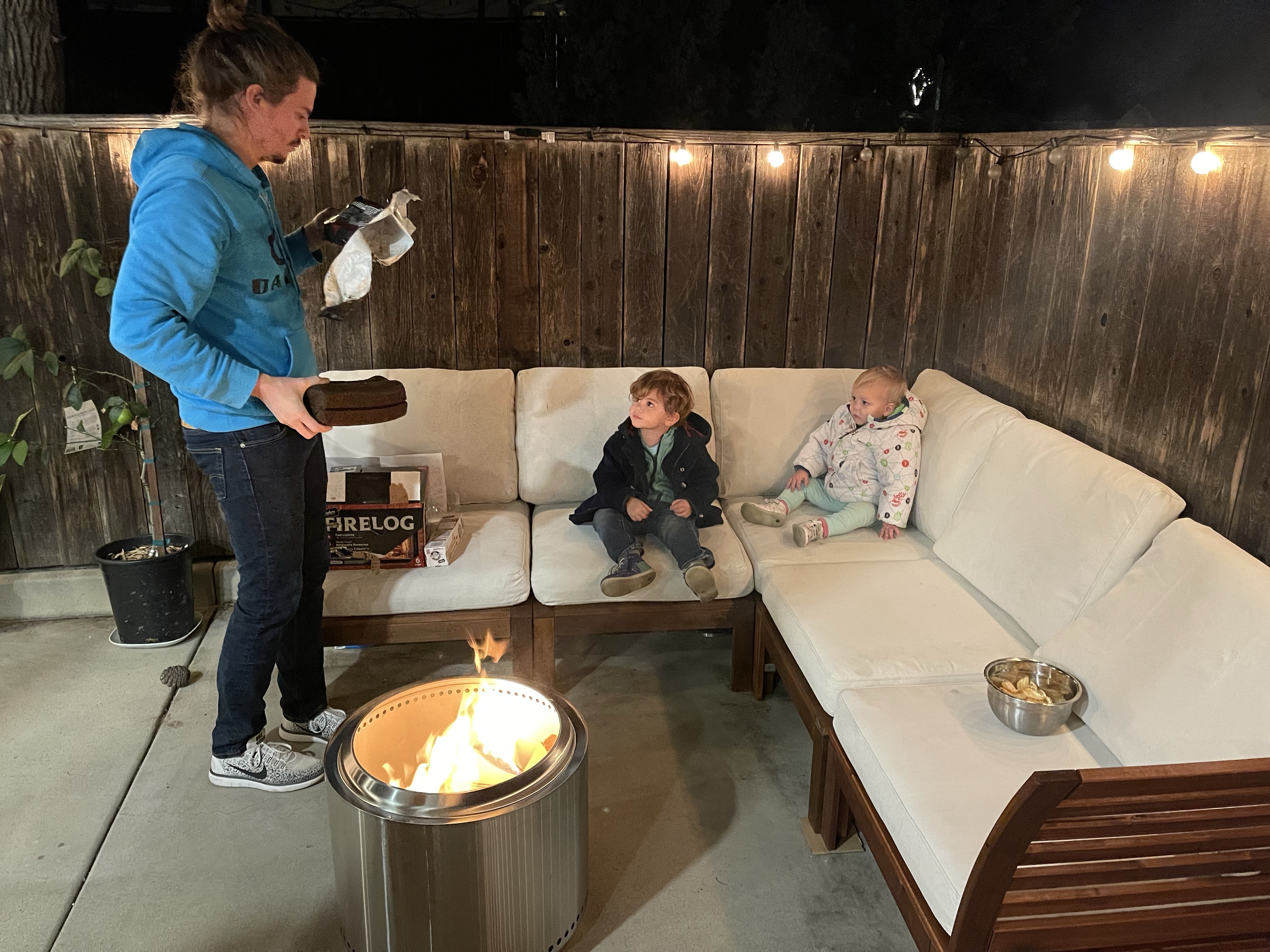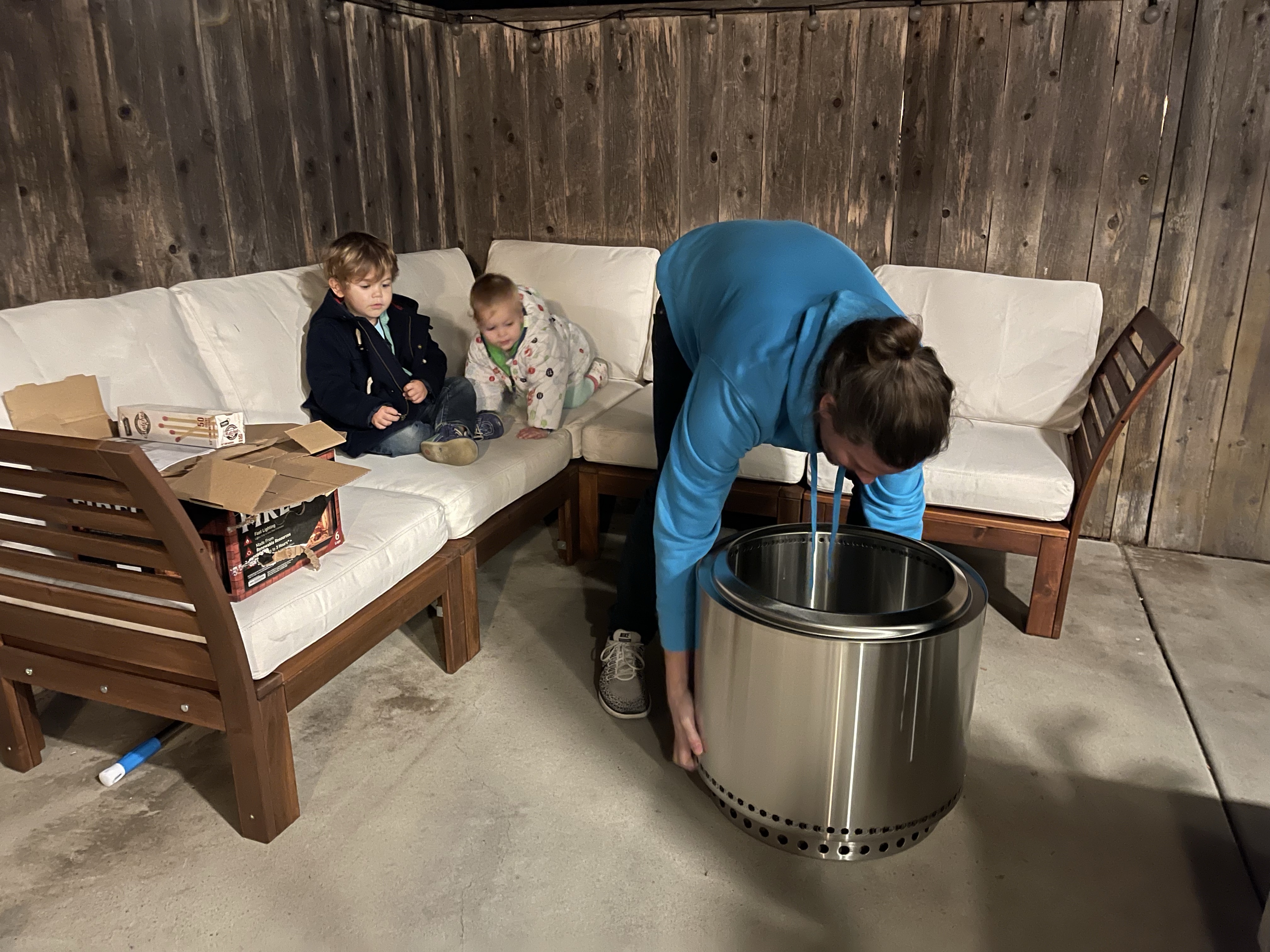 Le soir nous décidons d’essayer mon fire pit!!!! Quelle excitation pour les enfants!!!